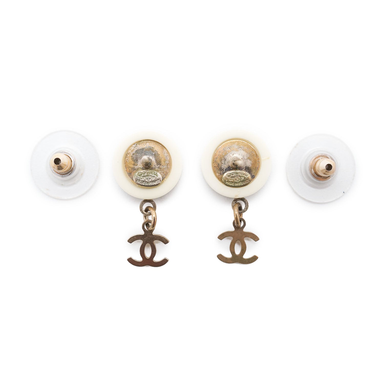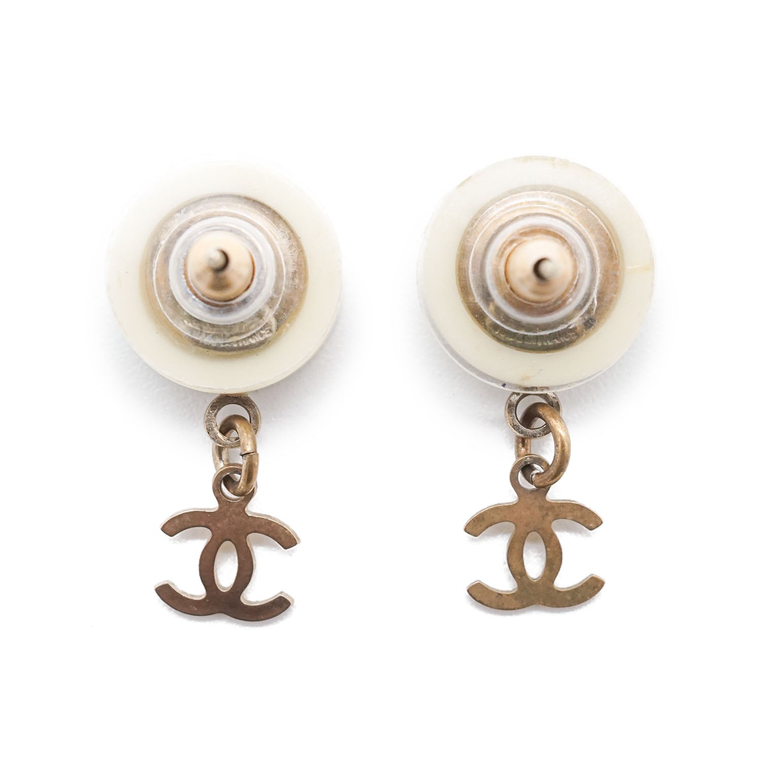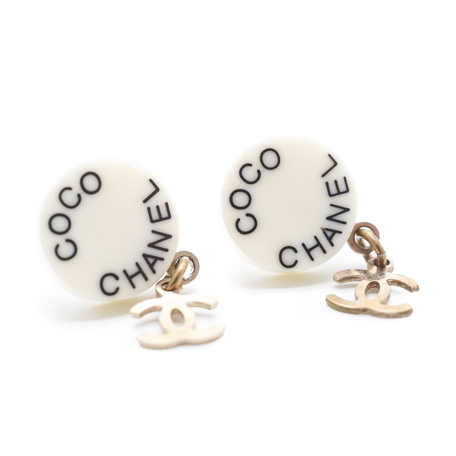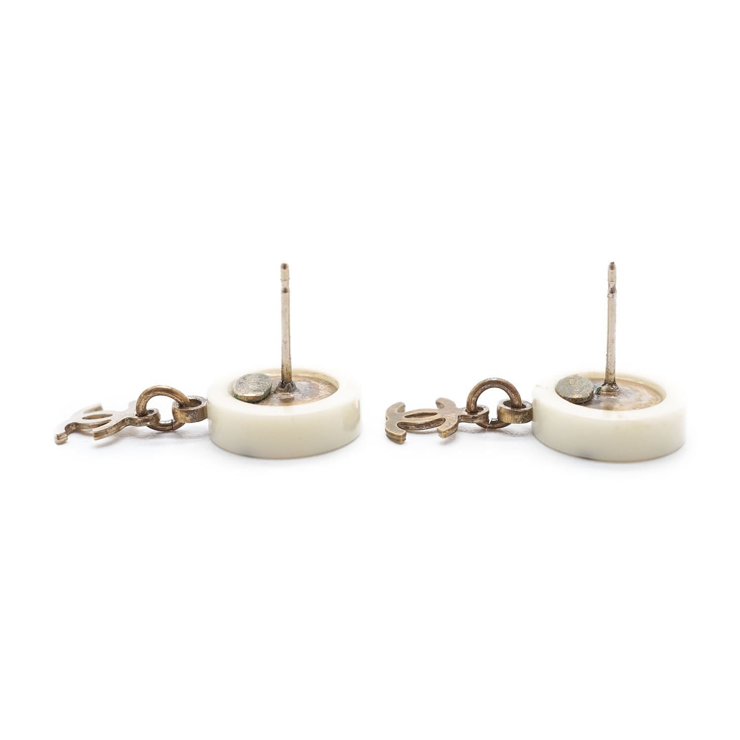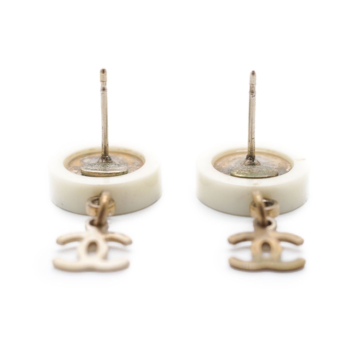 Coco Chanel Round Drop Earrings GP White Brass, Resin
