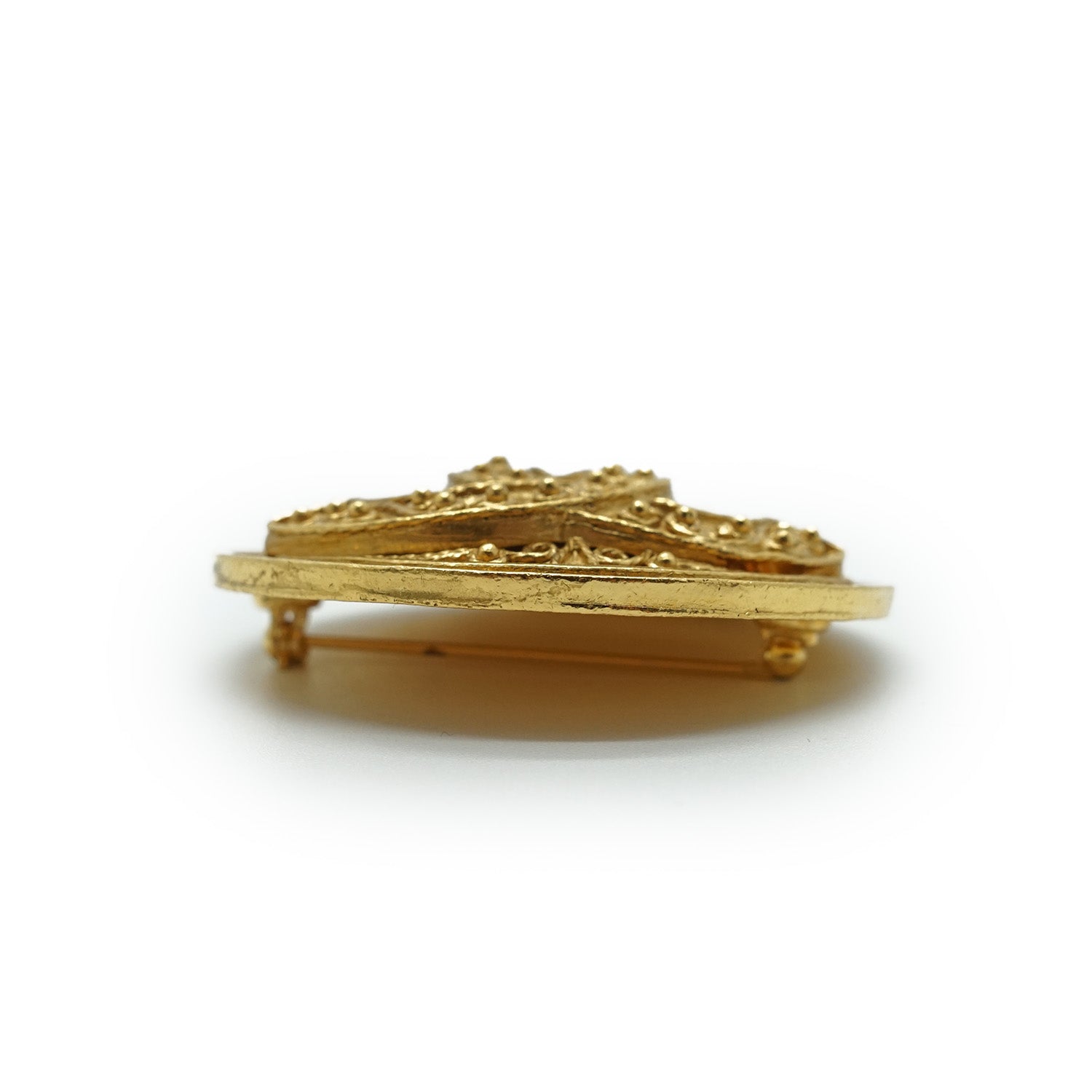 Coco Mark Filigree Medallion Brooch GP Gold Brass