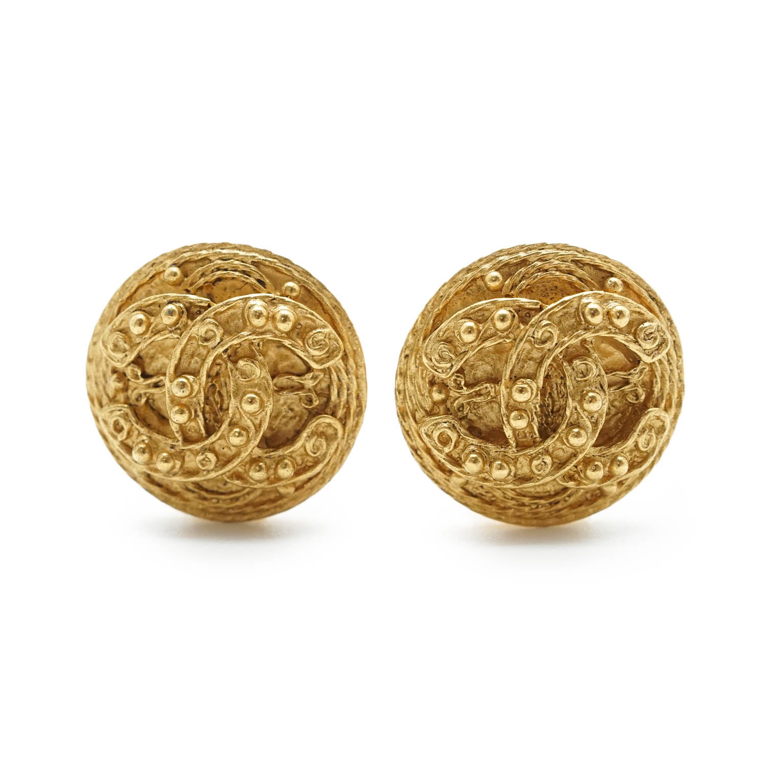 Coco Mark Filigree Round Clip Earrings GP