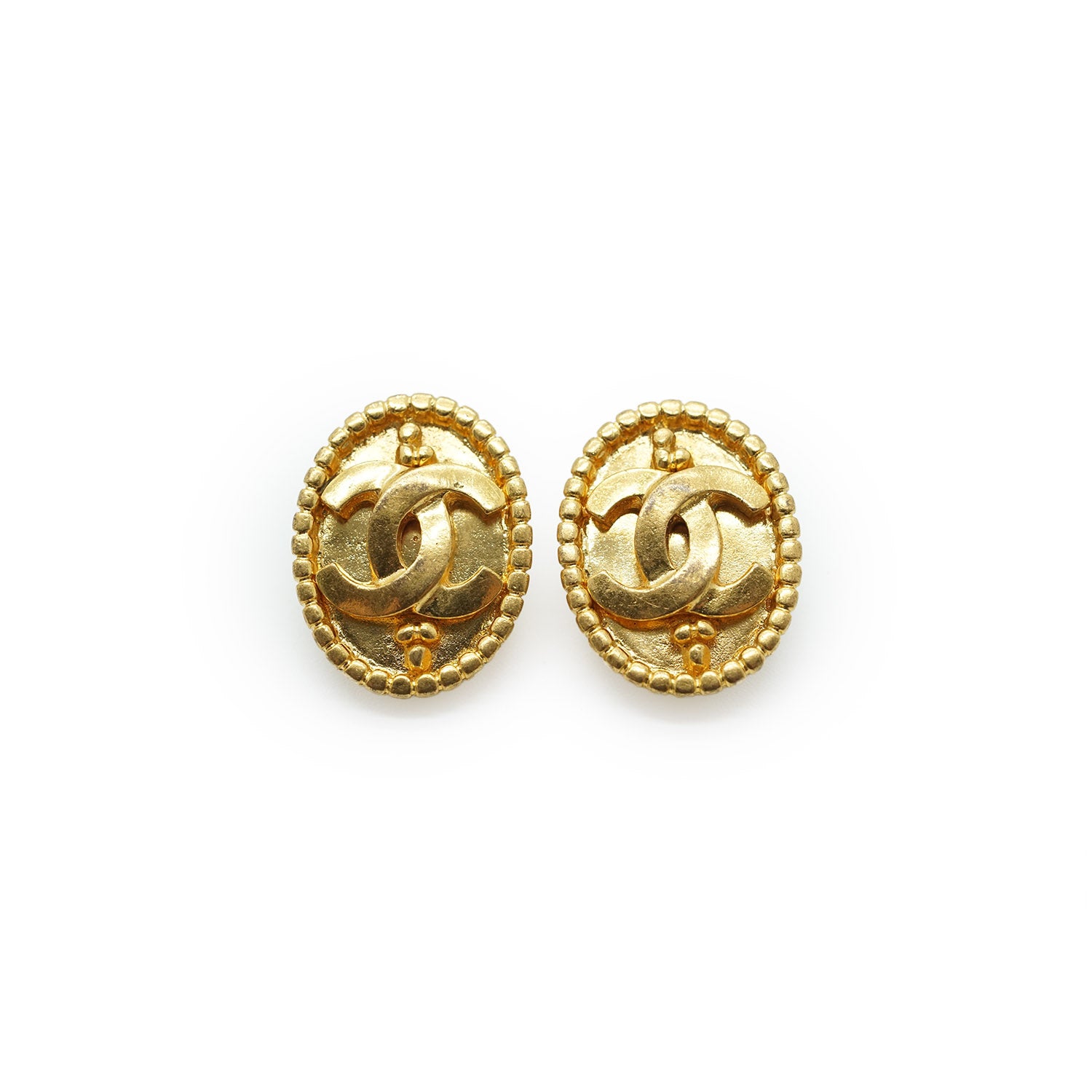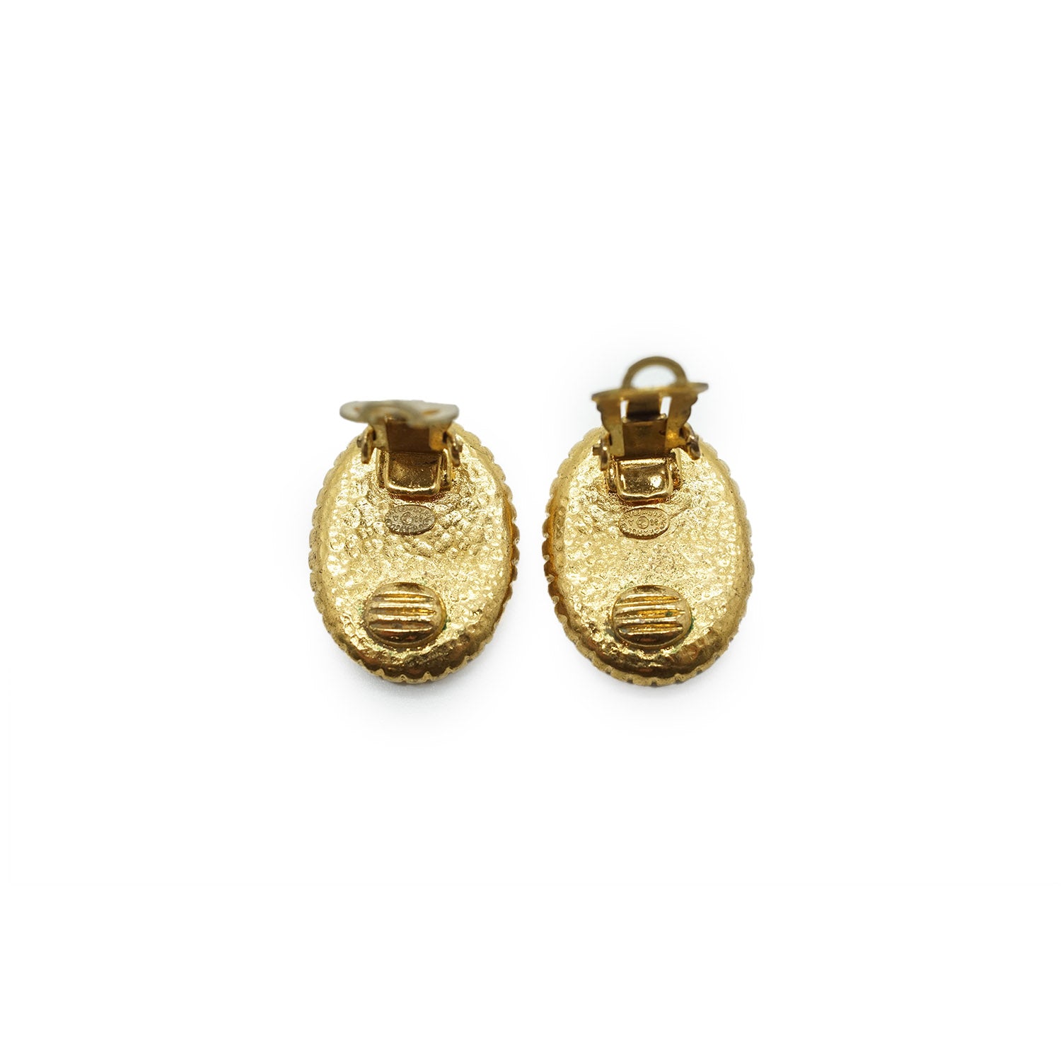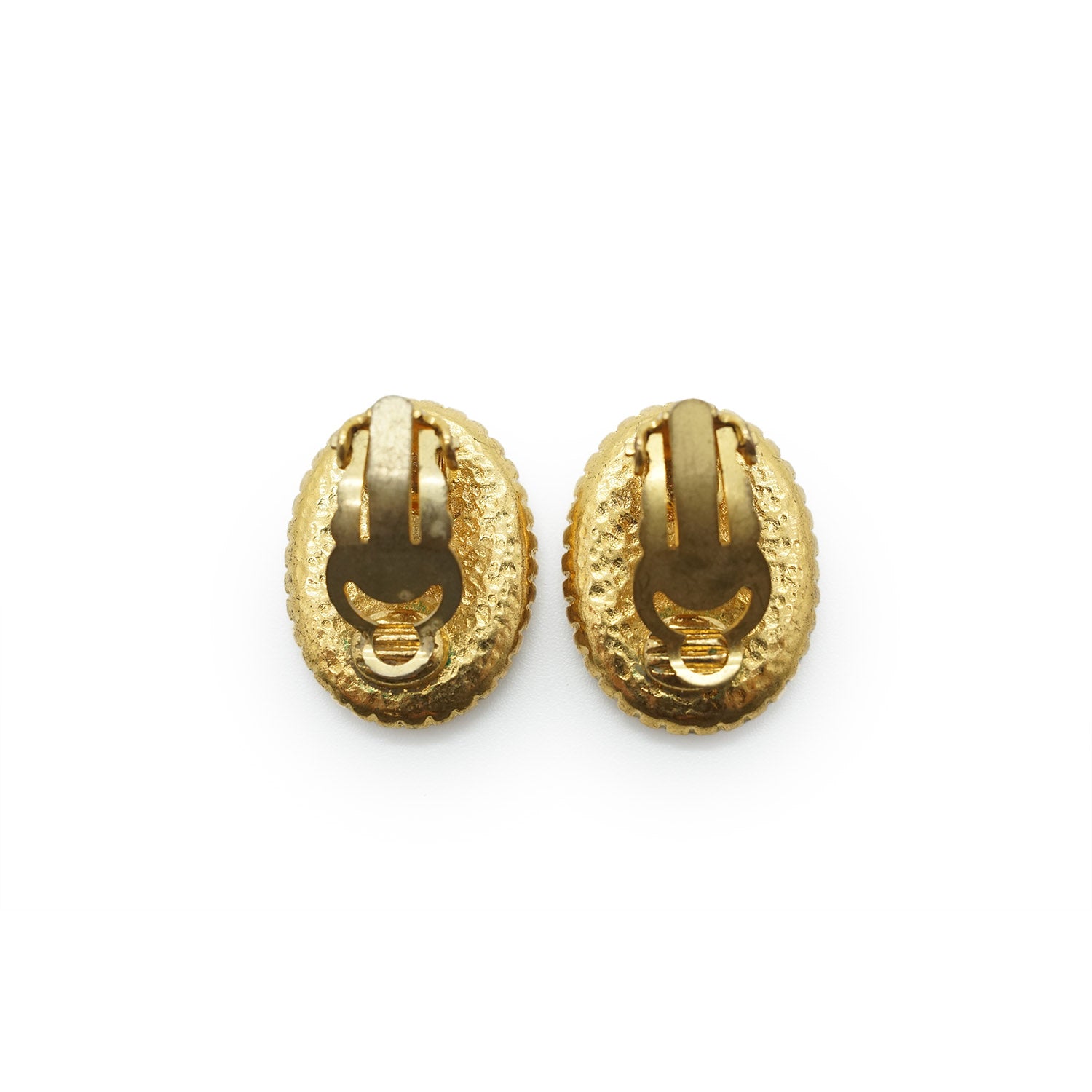 Coco Mark Gold Oval Clip Earrings Gold Brass