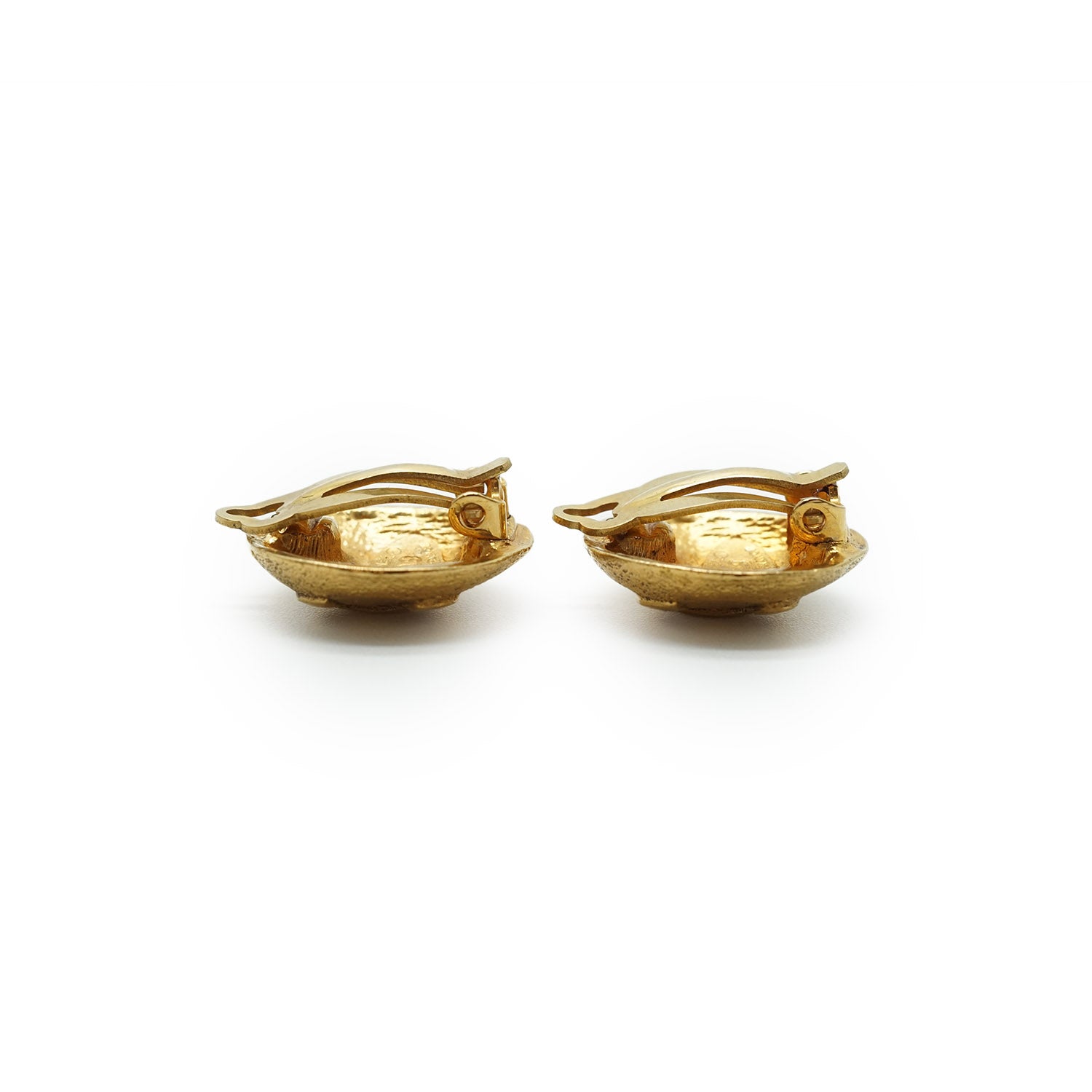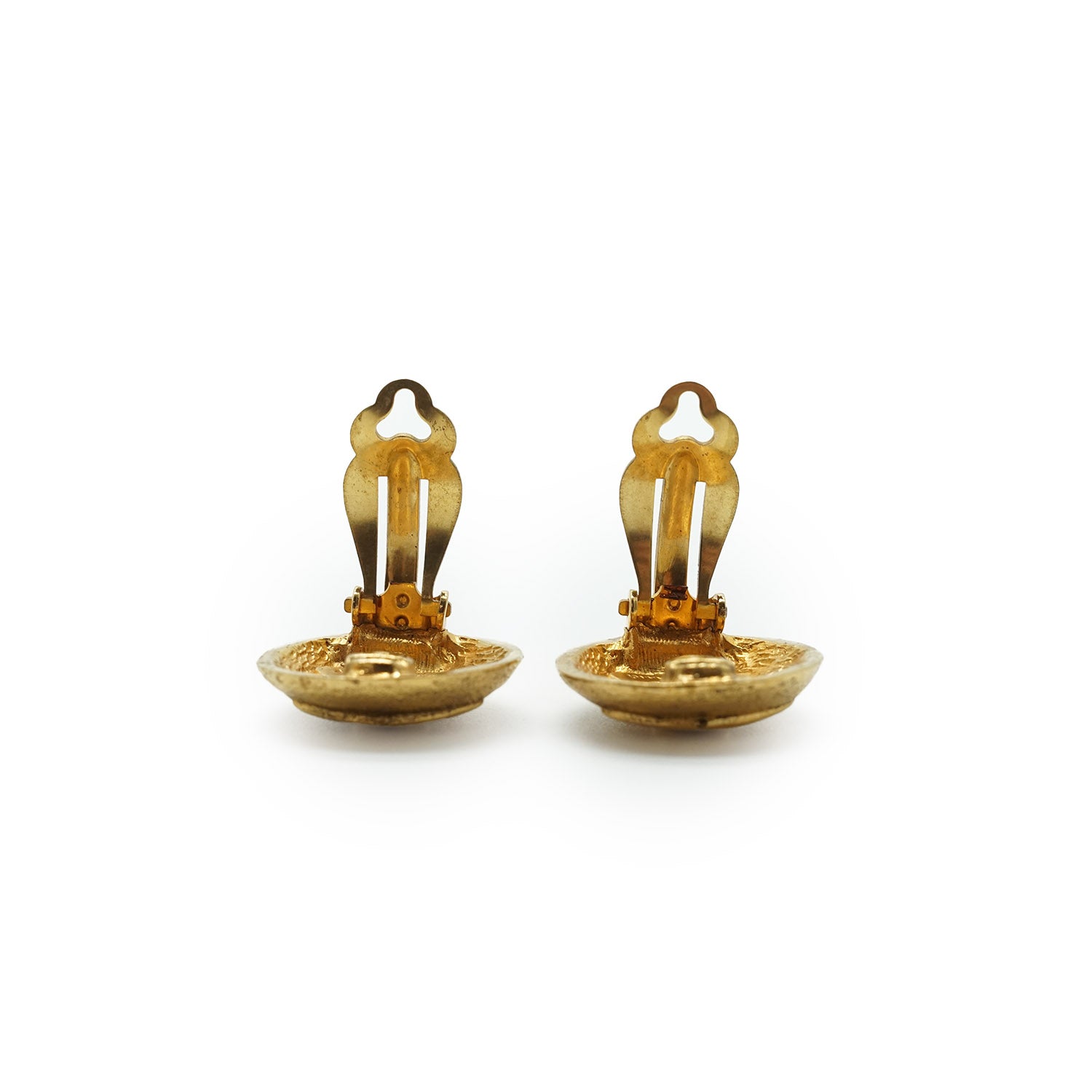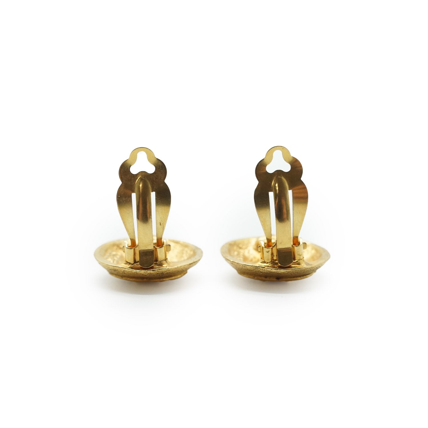 Coco Mark Gold Plated Round Clip Earrings Gold Brass