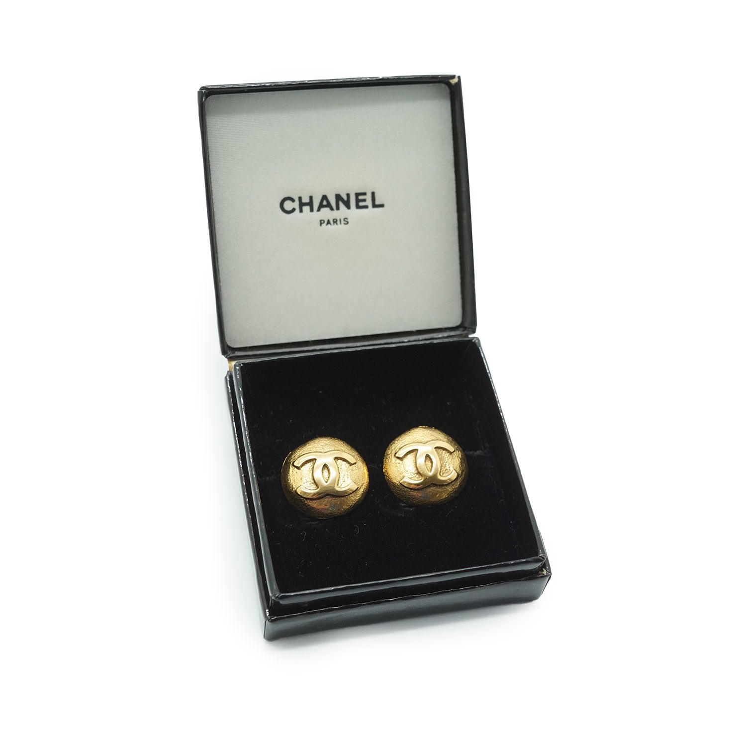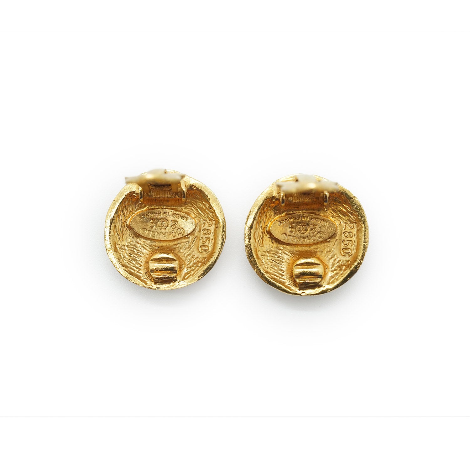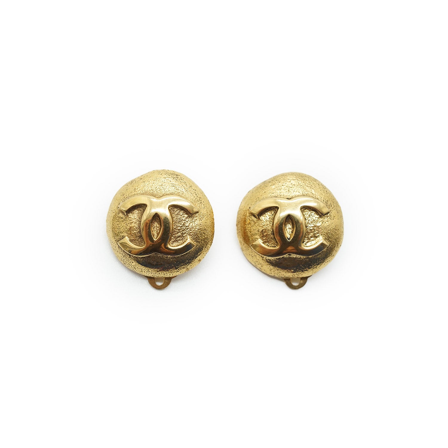 Coco Mark Gold Plated Round Clip Earrings Gold Brass