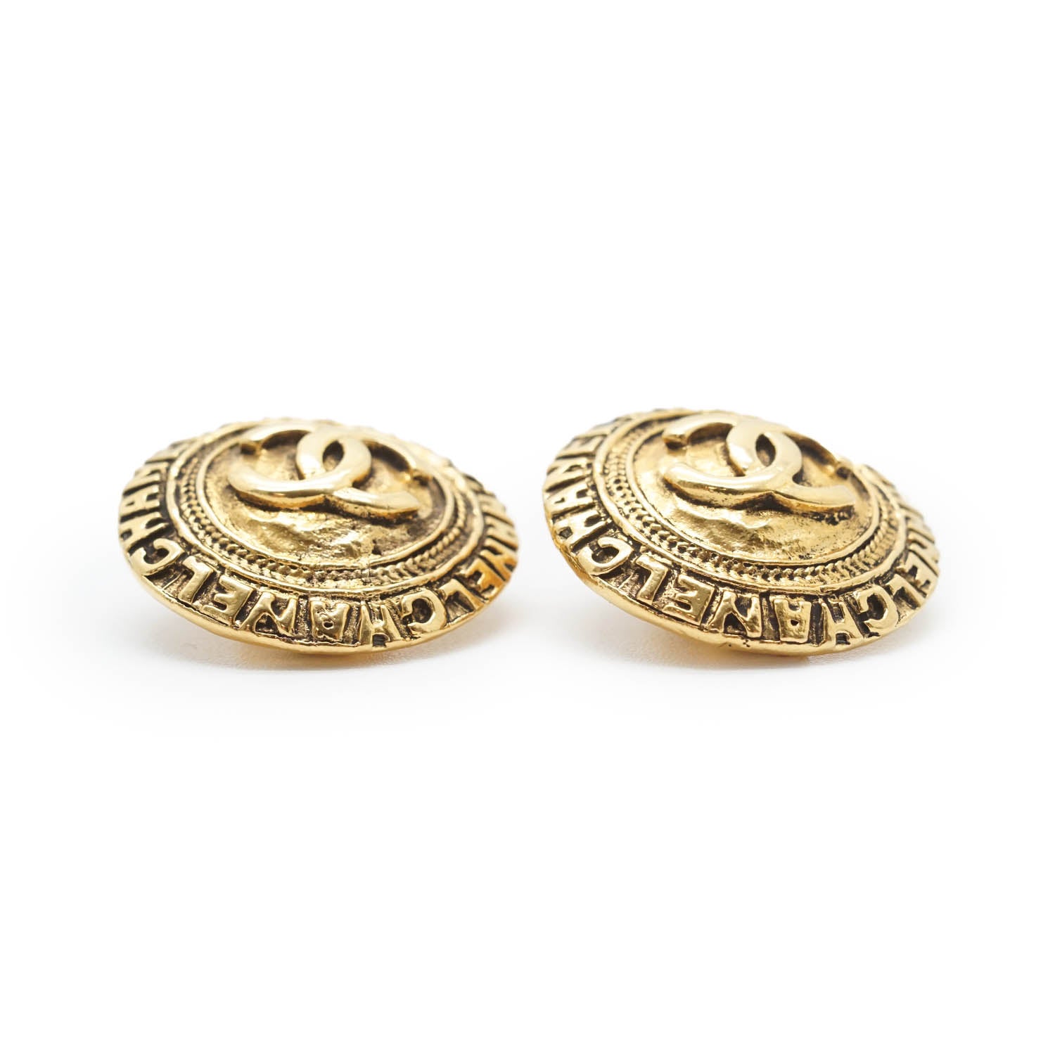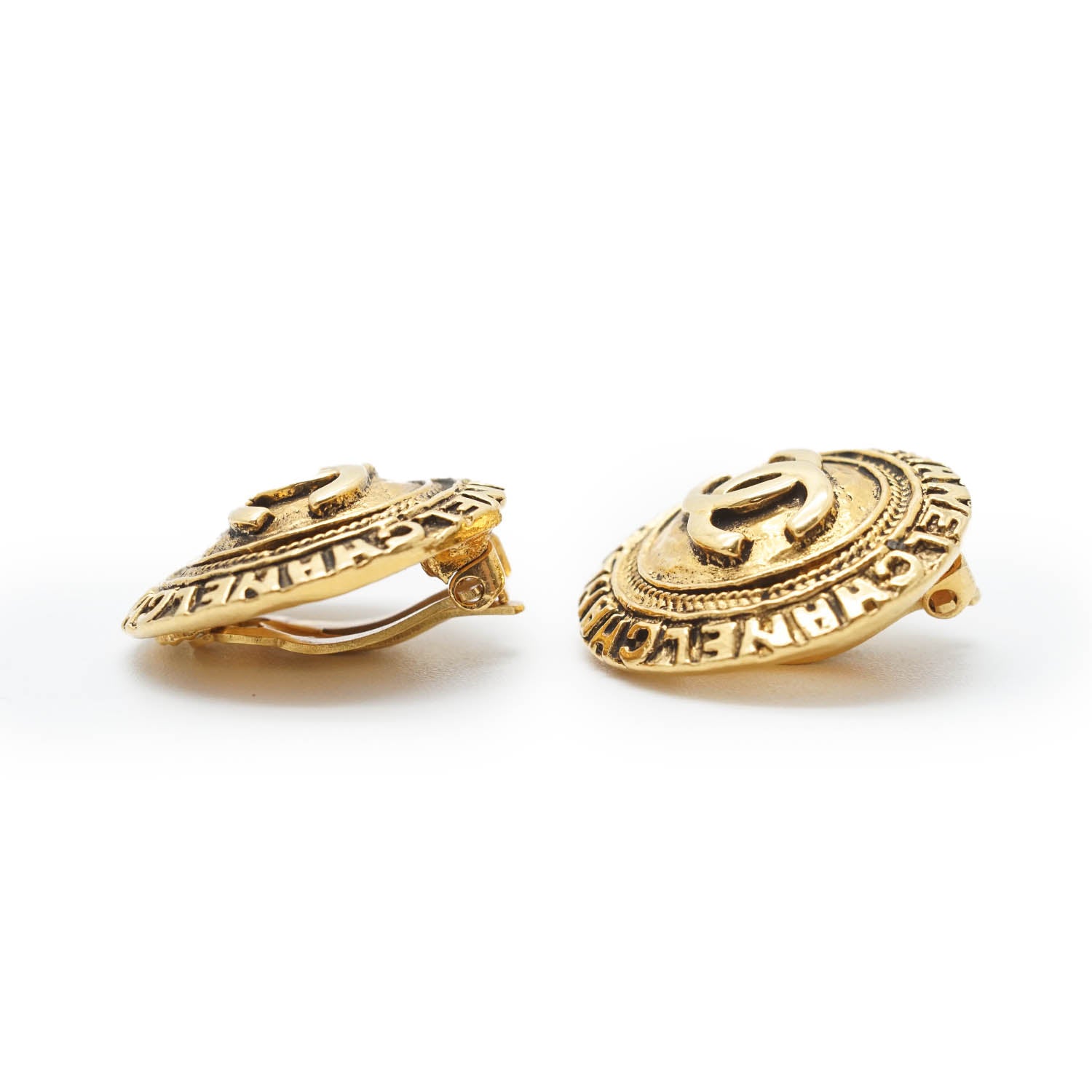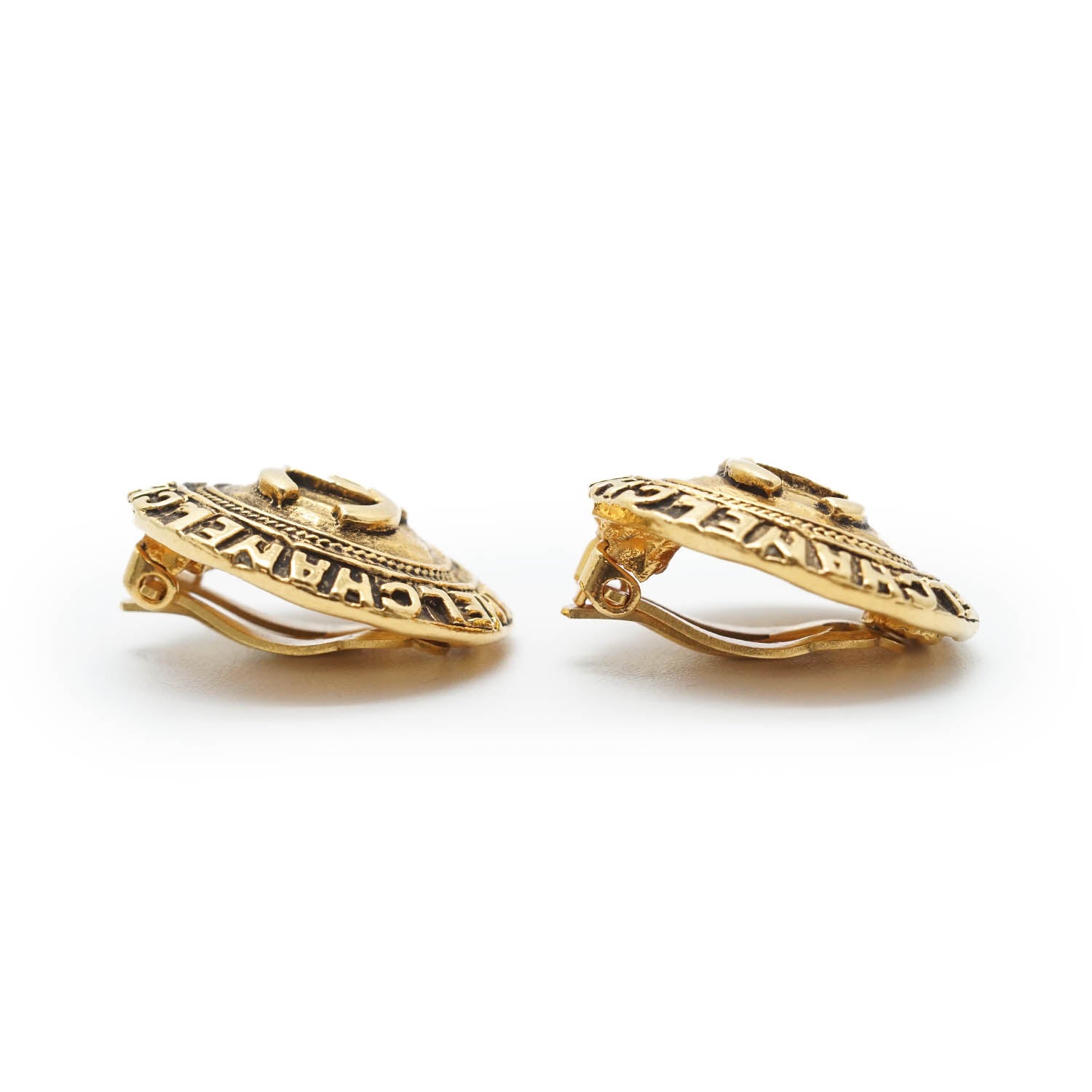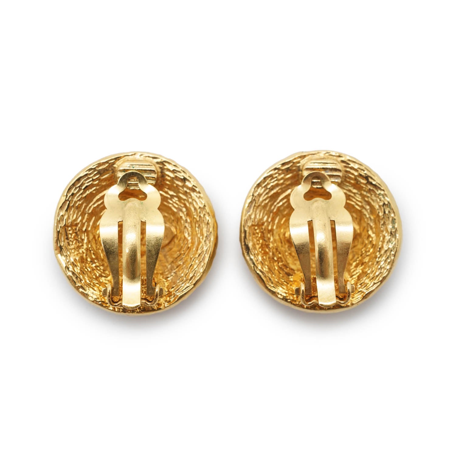 Coco Mark Letter Logo Round Clip Earrings GP Gold Brass