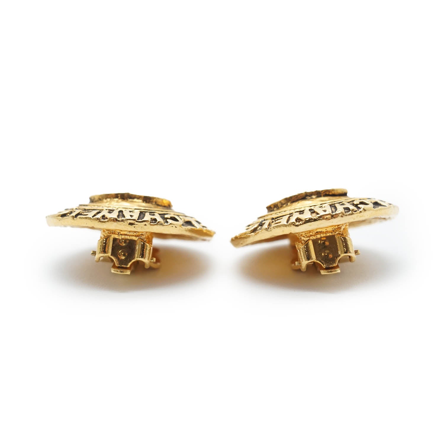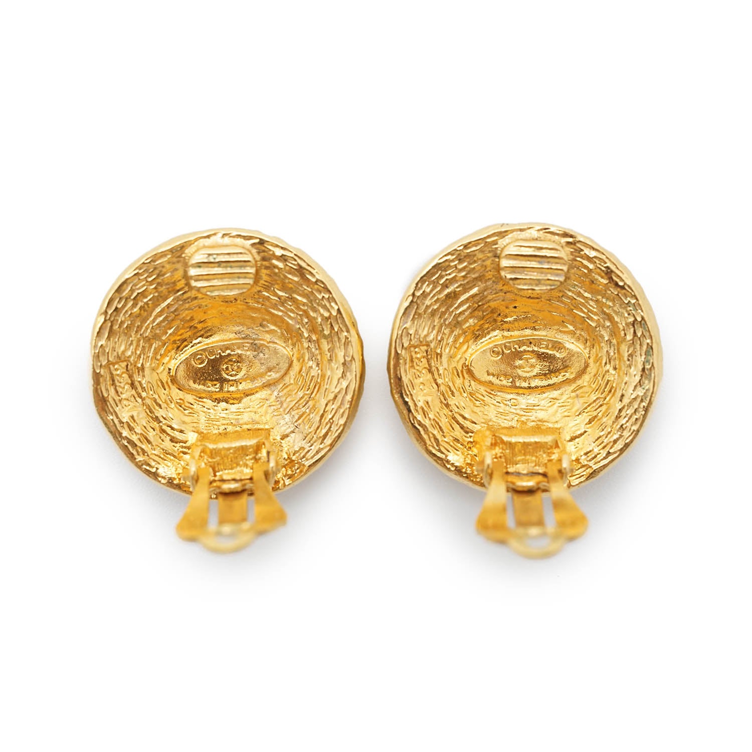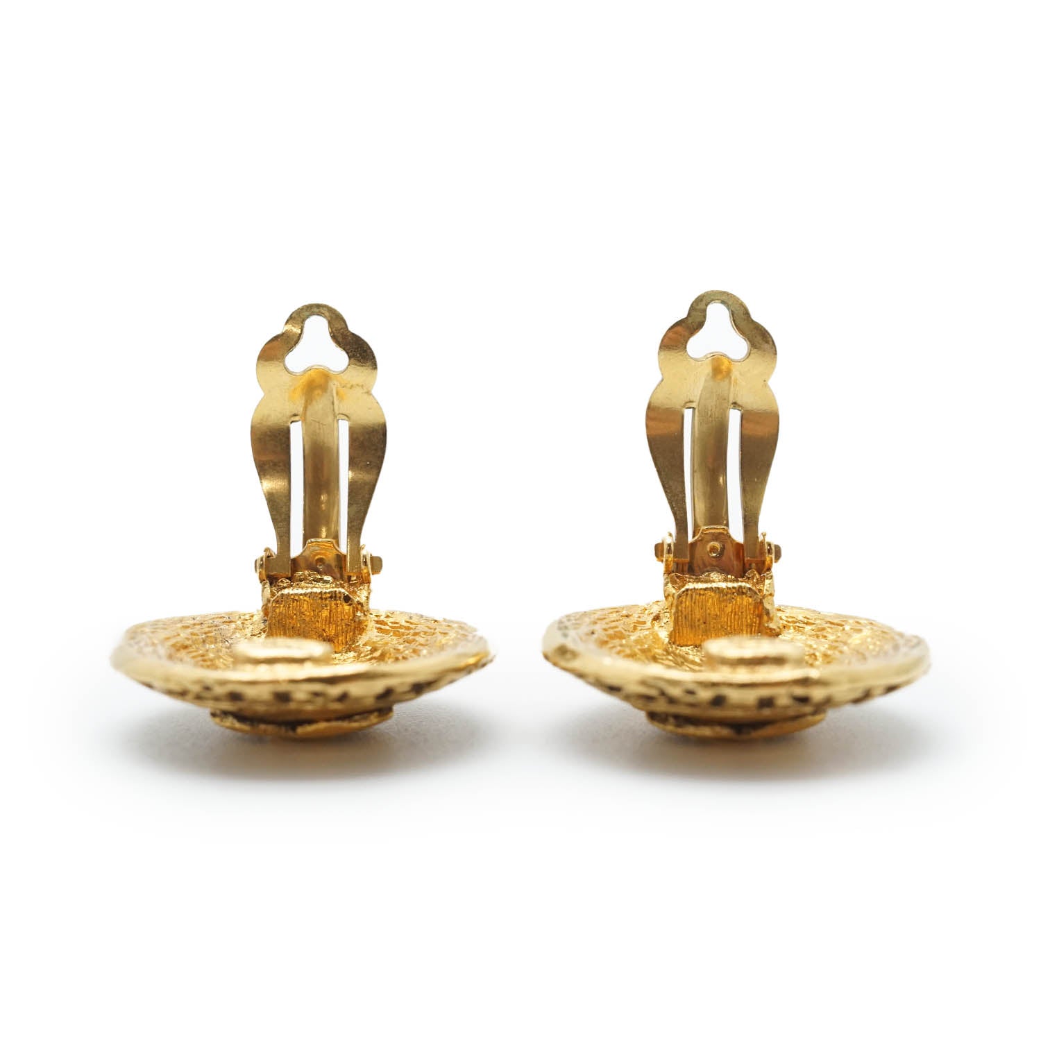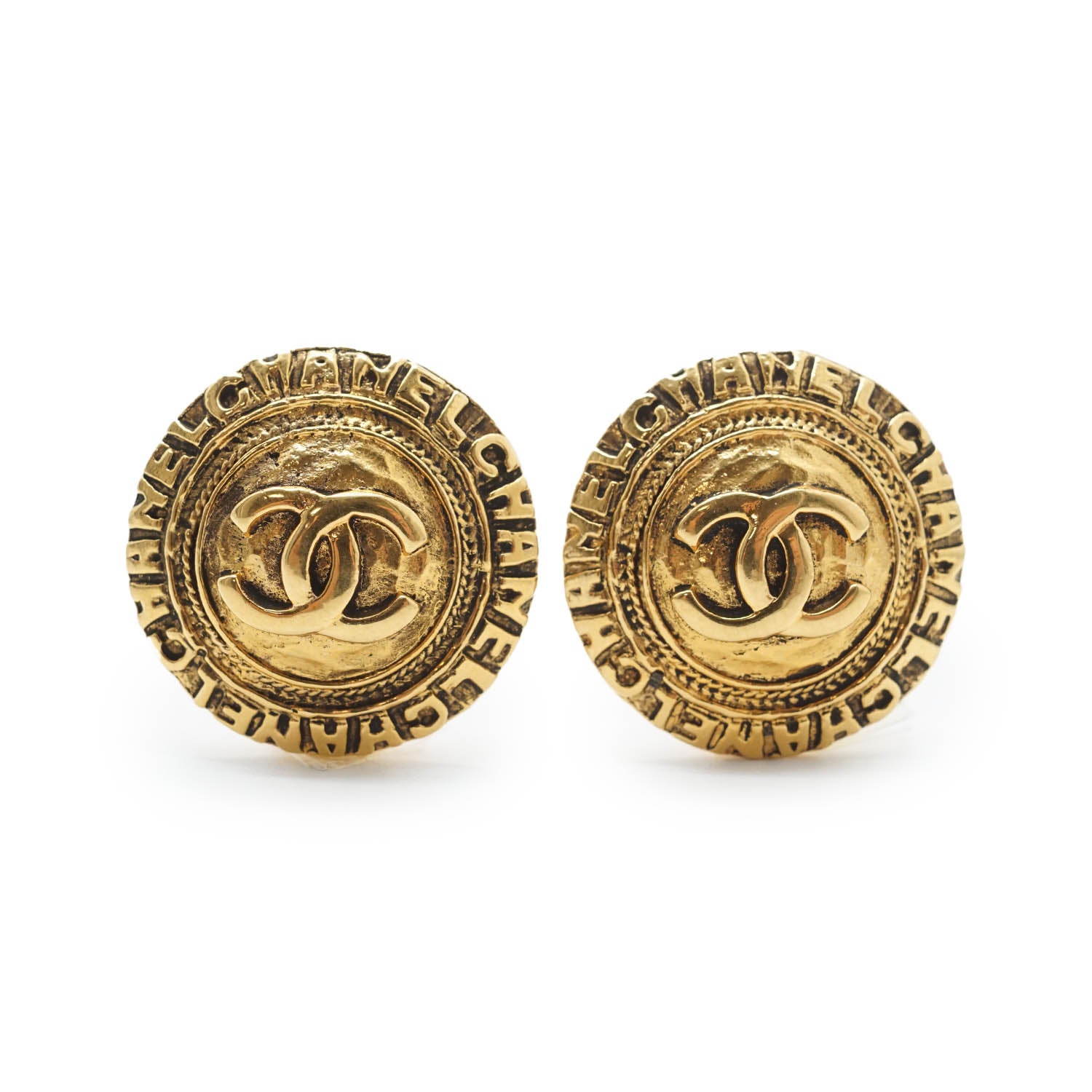 Coco Mark Letter Logo Round Clip Earrings GP Gold Brass