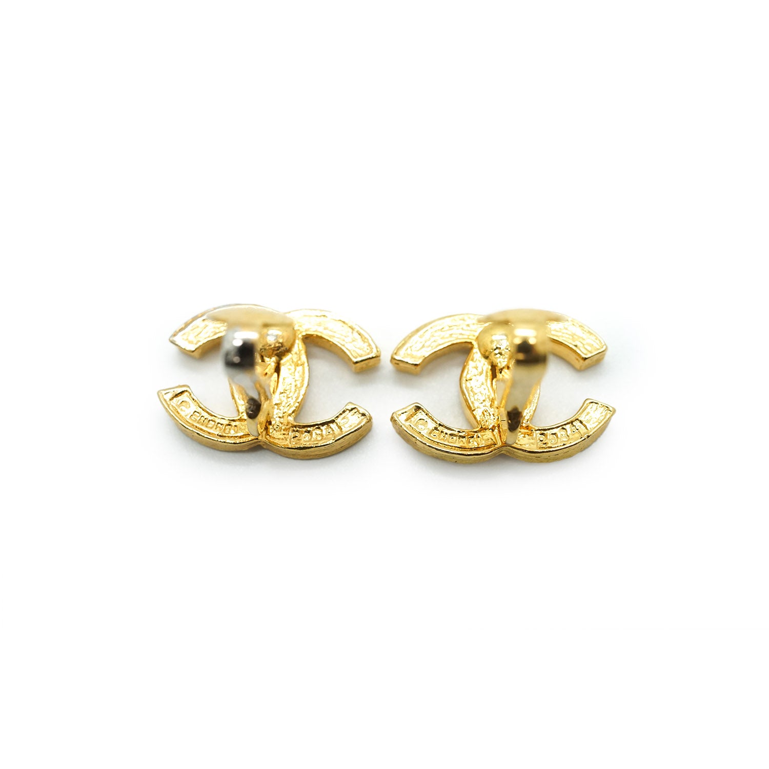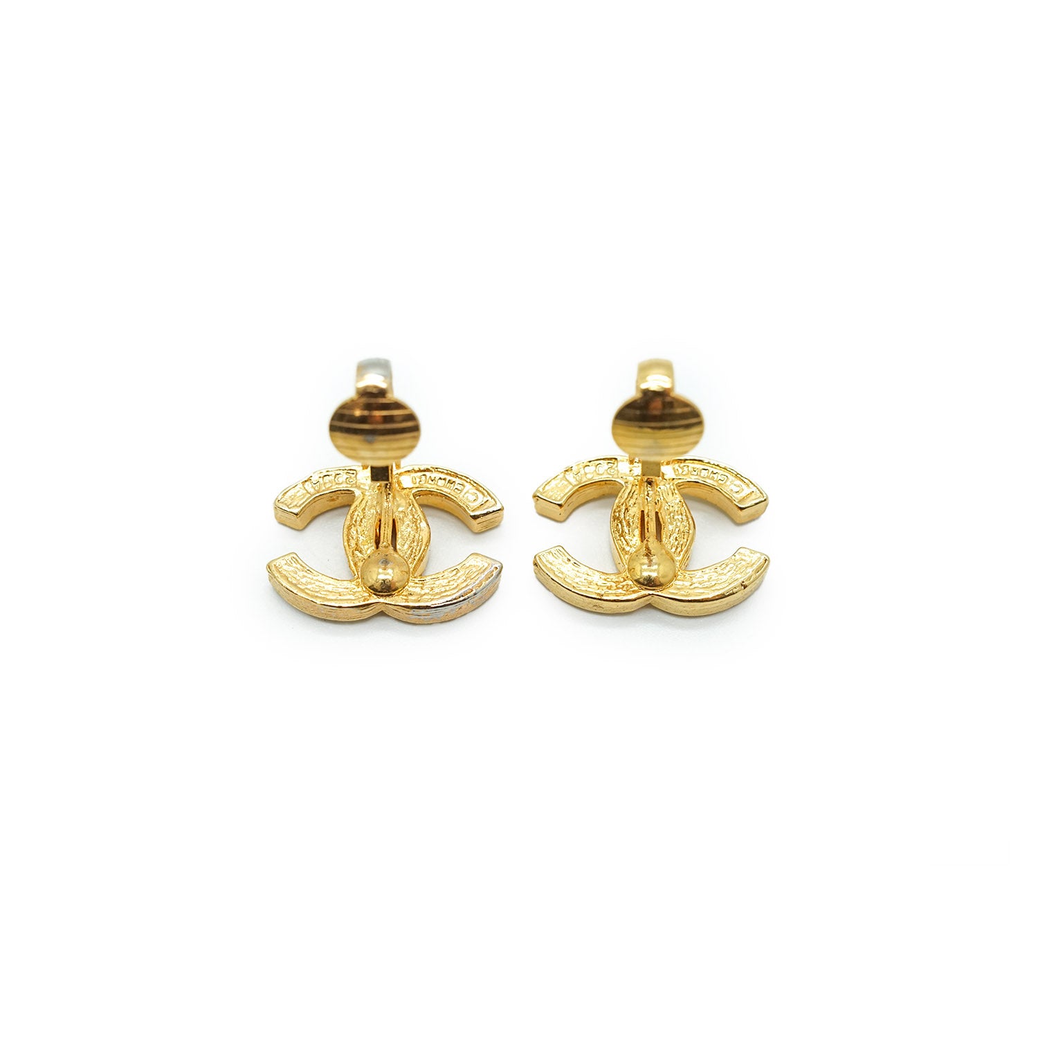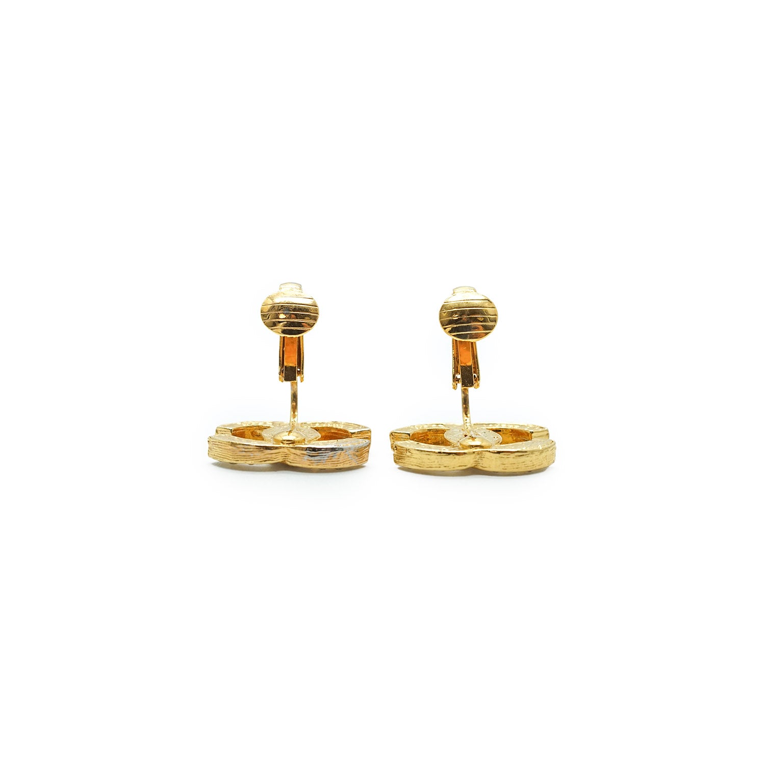 Coco Mark Rhinestone Clip Earrings Gold Brass