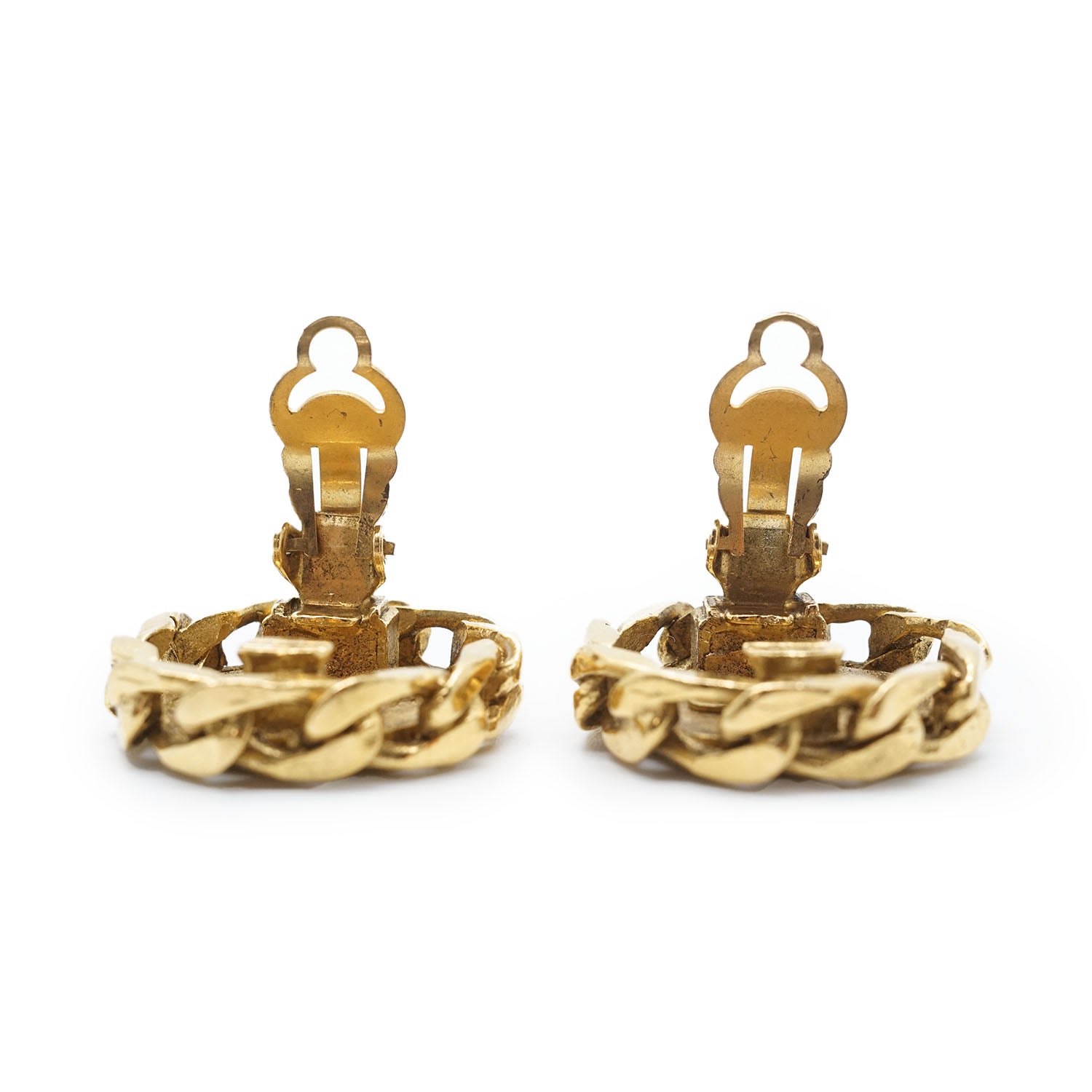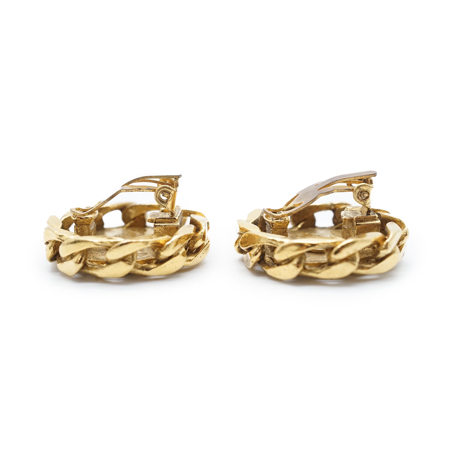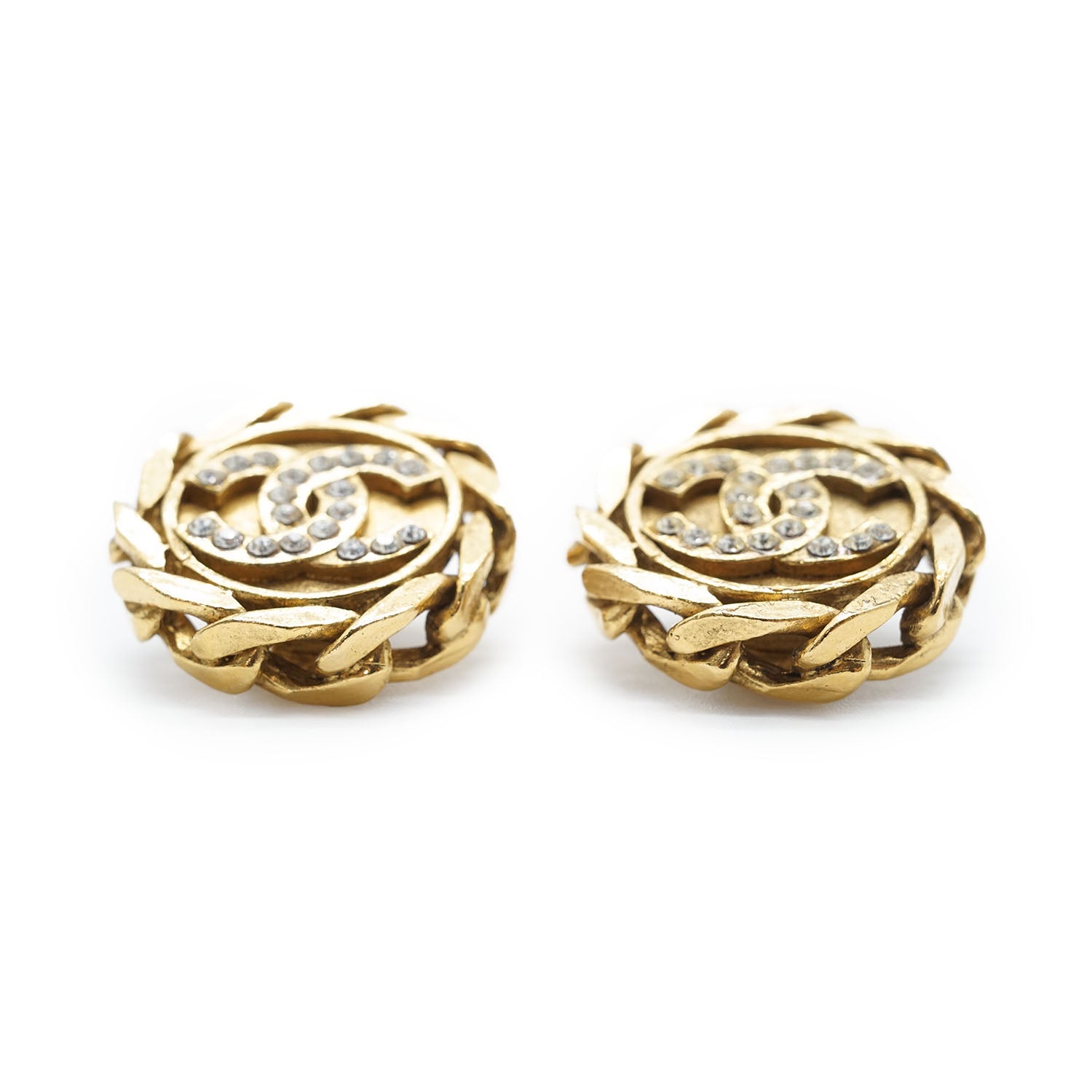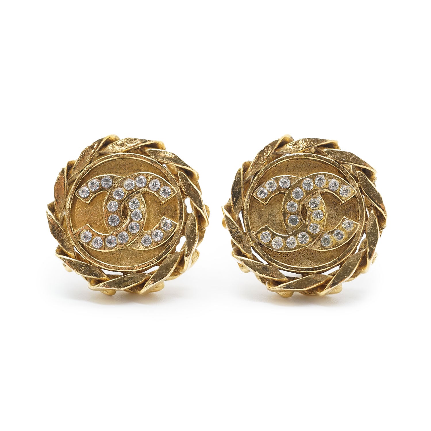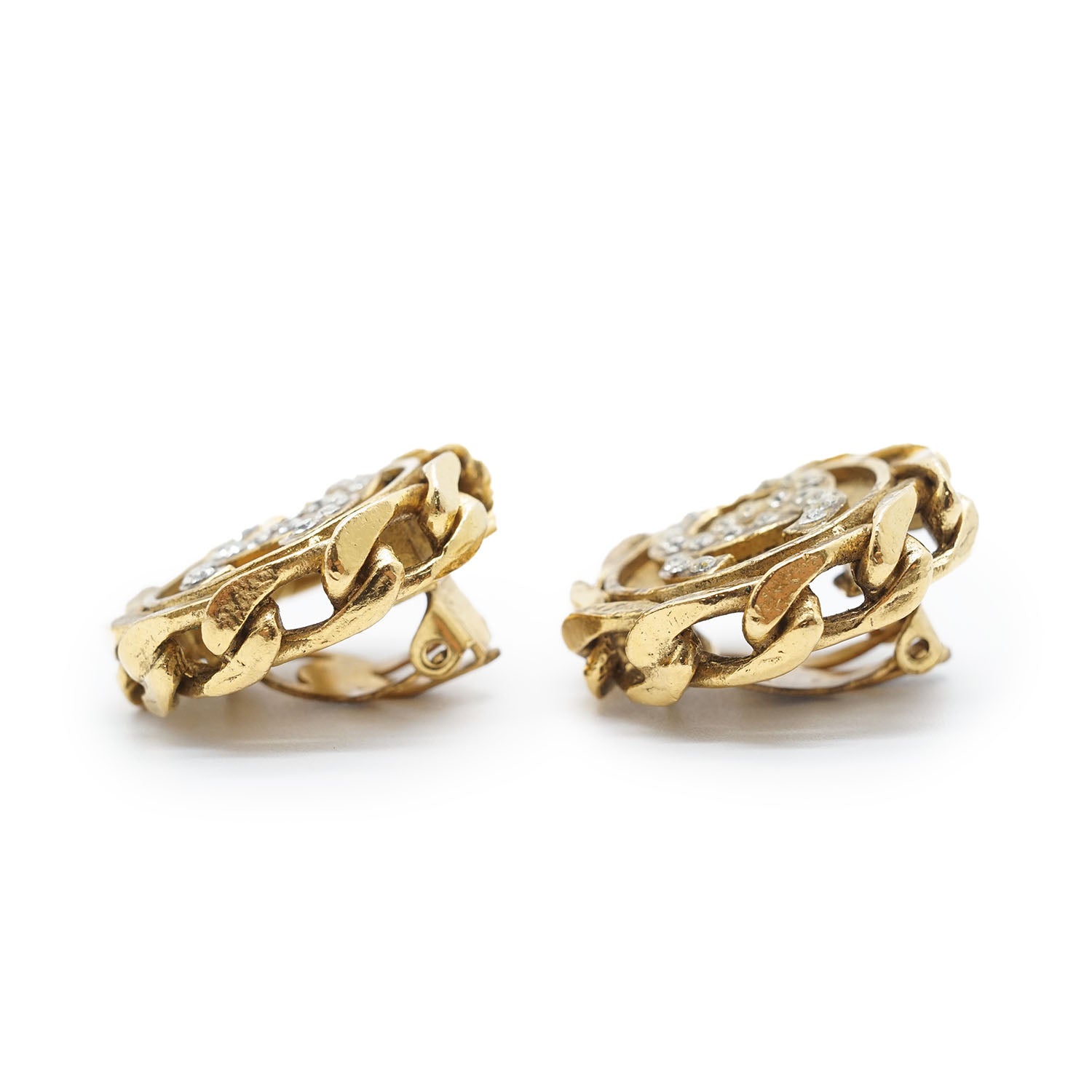 Coco Mark Rhinestone Round Clip Earrings GP Gold Brass
