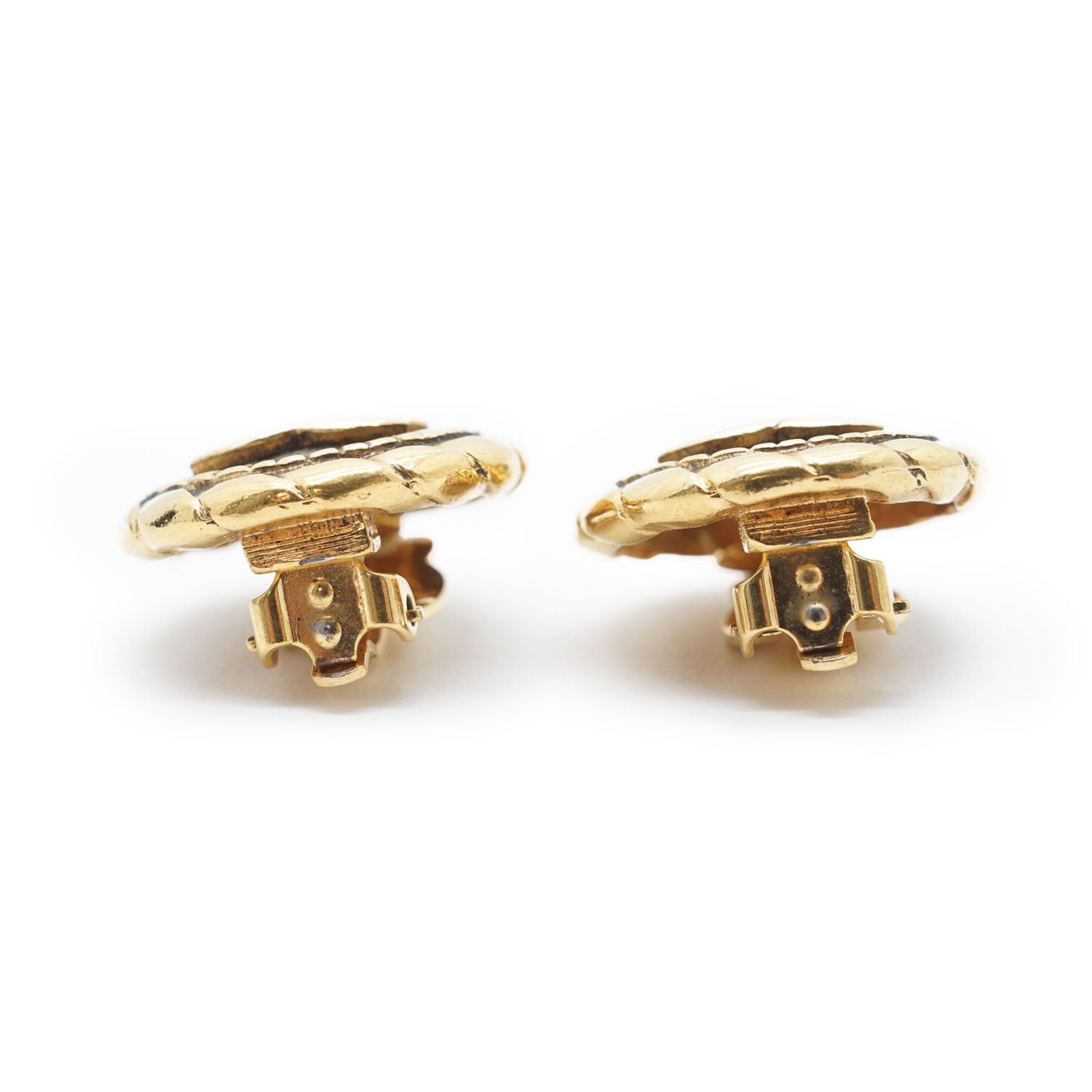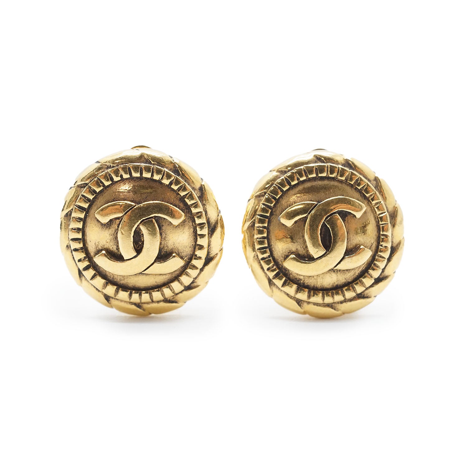 Coco Mark Round Clip Earrings Gold Brass