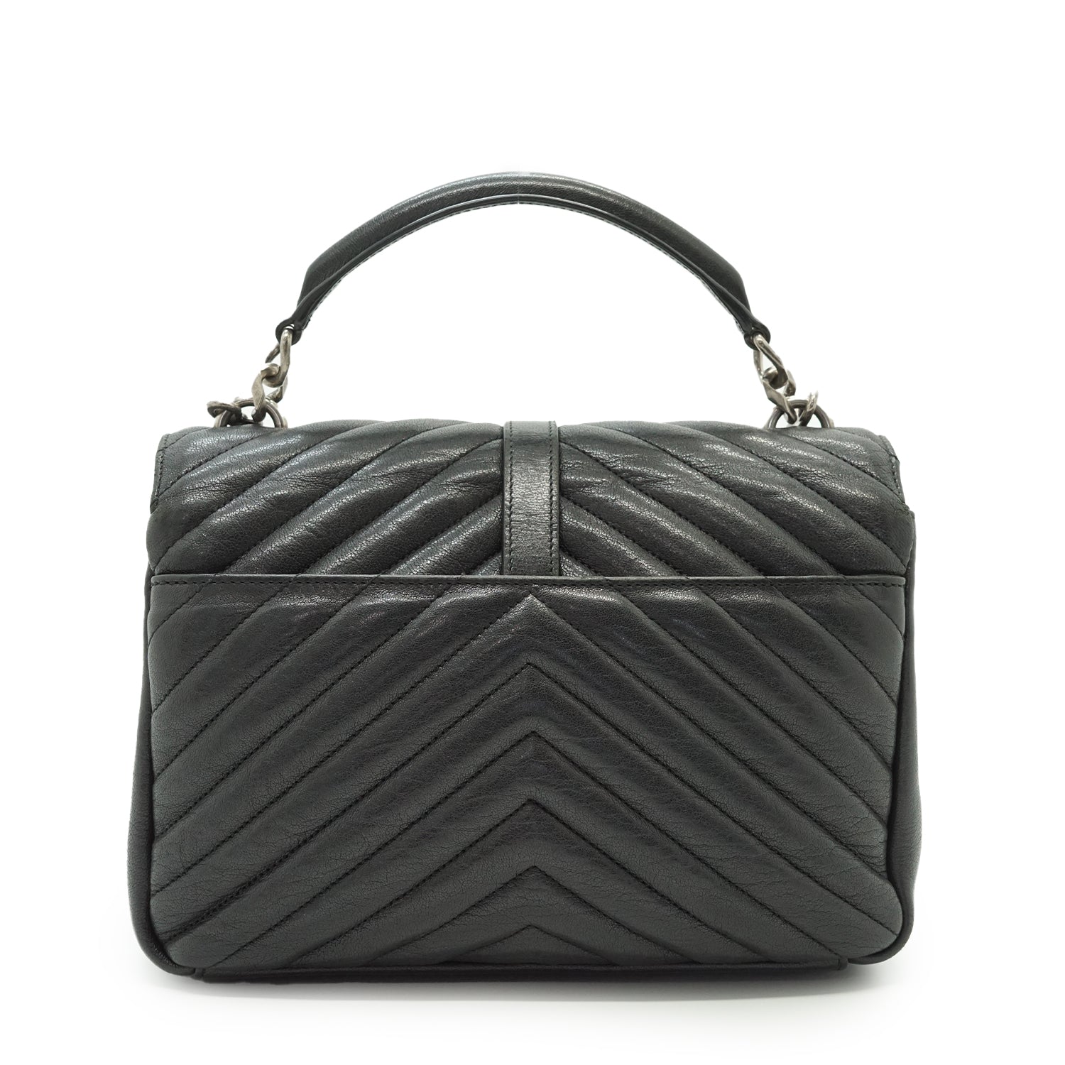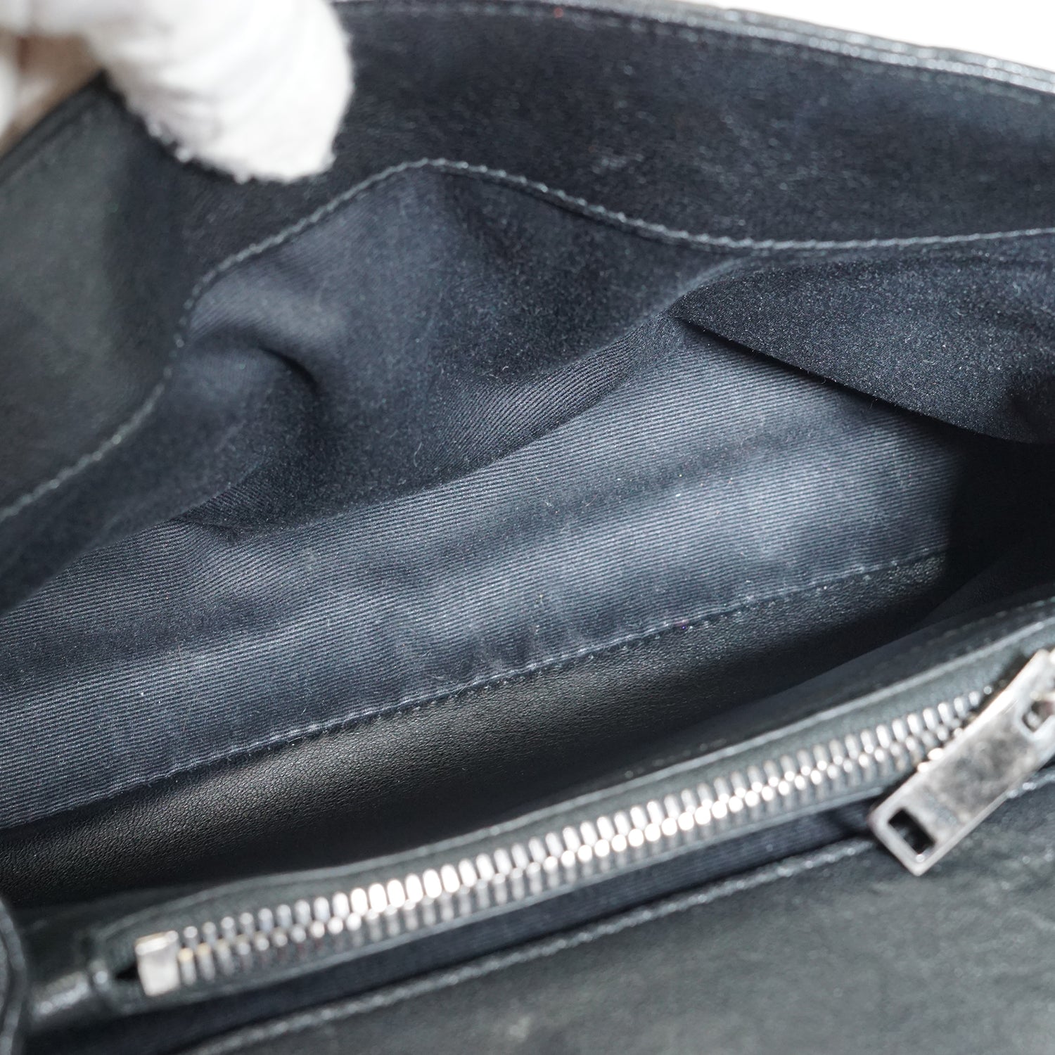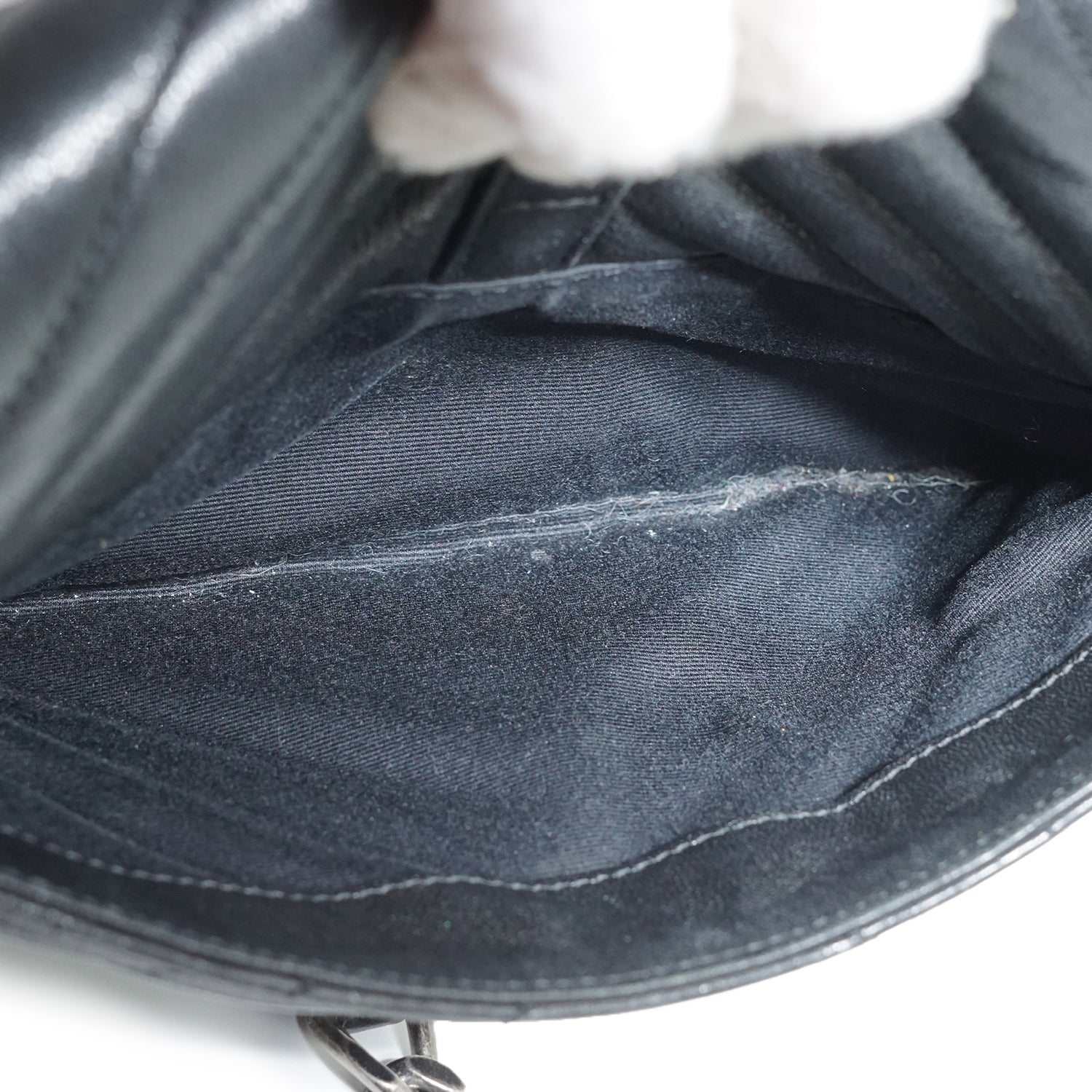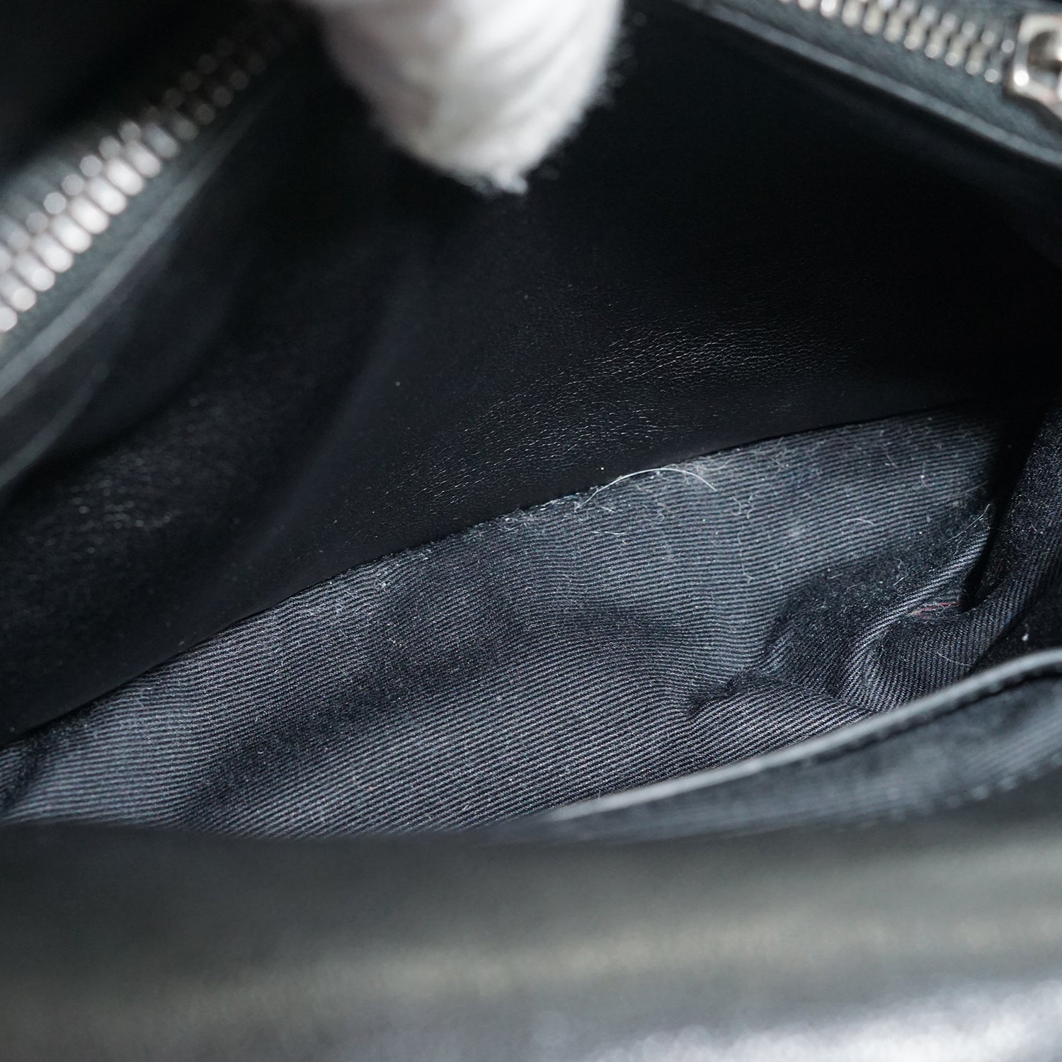 Discoloration: Some hardware tarnish (chain, front YSL logo, zipper pull), slight discoloration on the inside