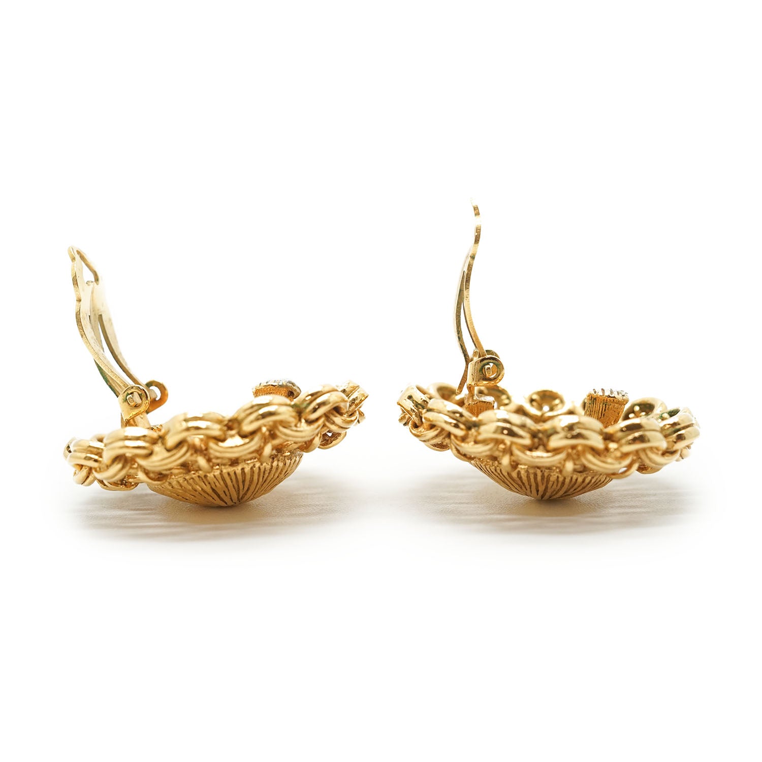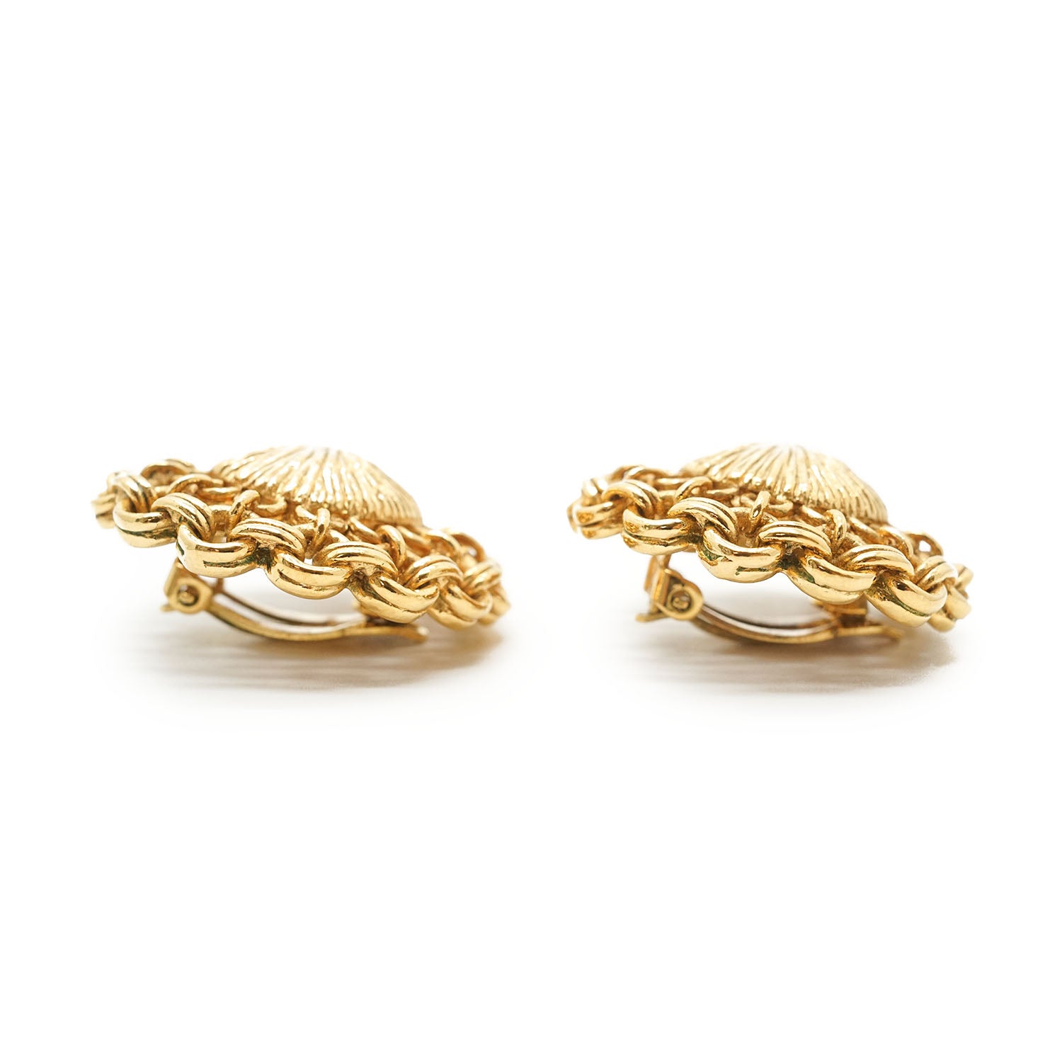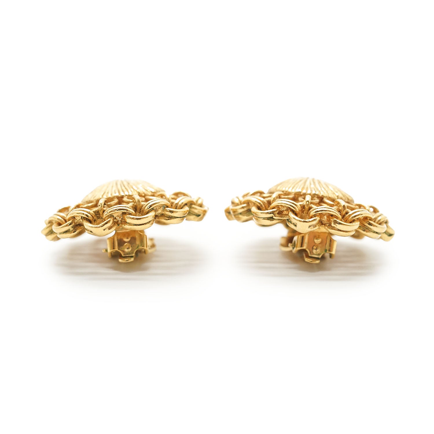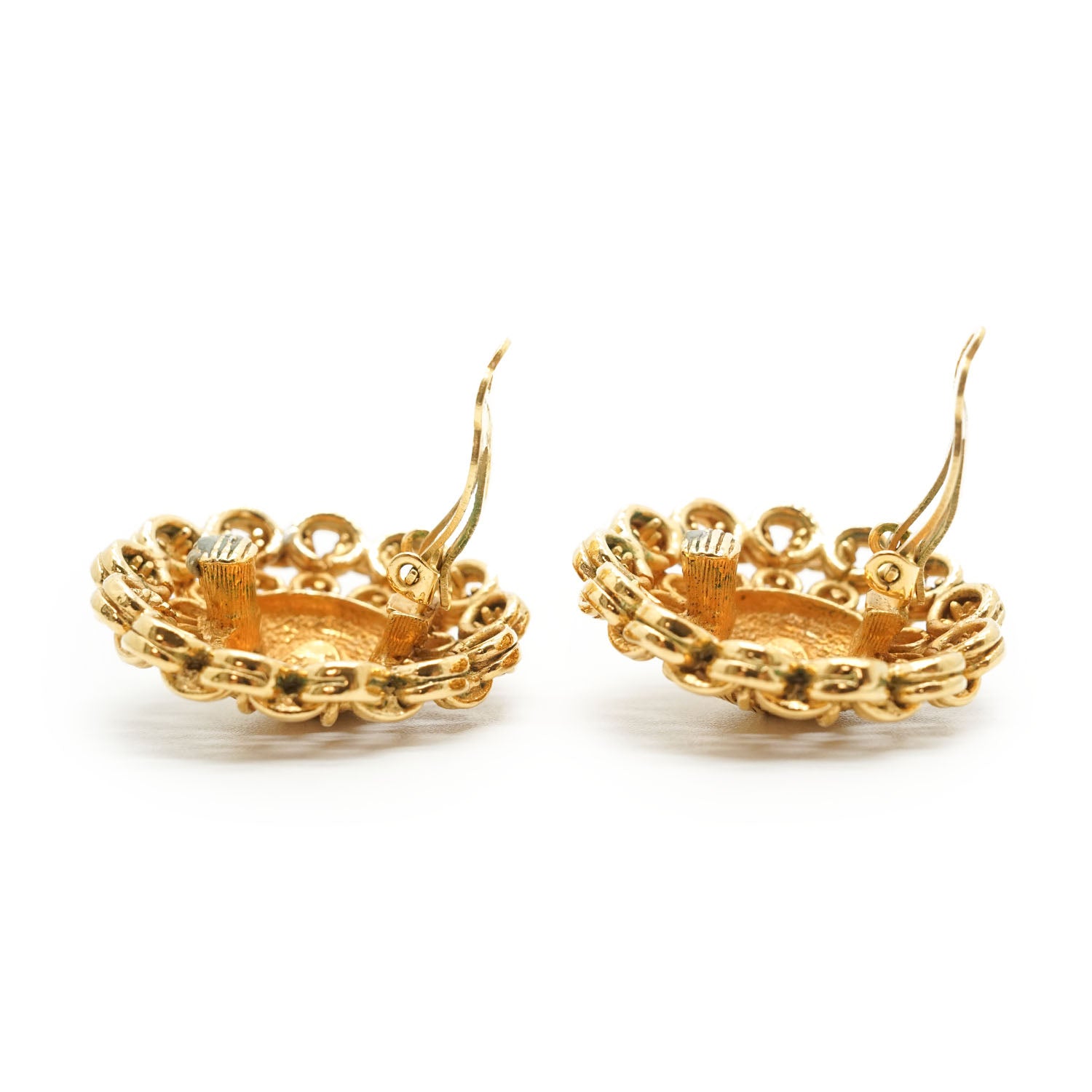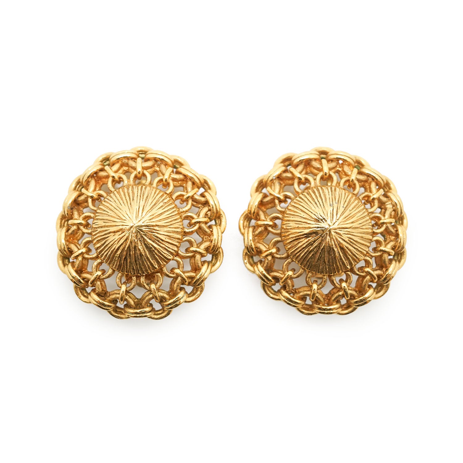 Cut-out Chain Detail Domed Round Clip-On Earrings GP Gold Brass
