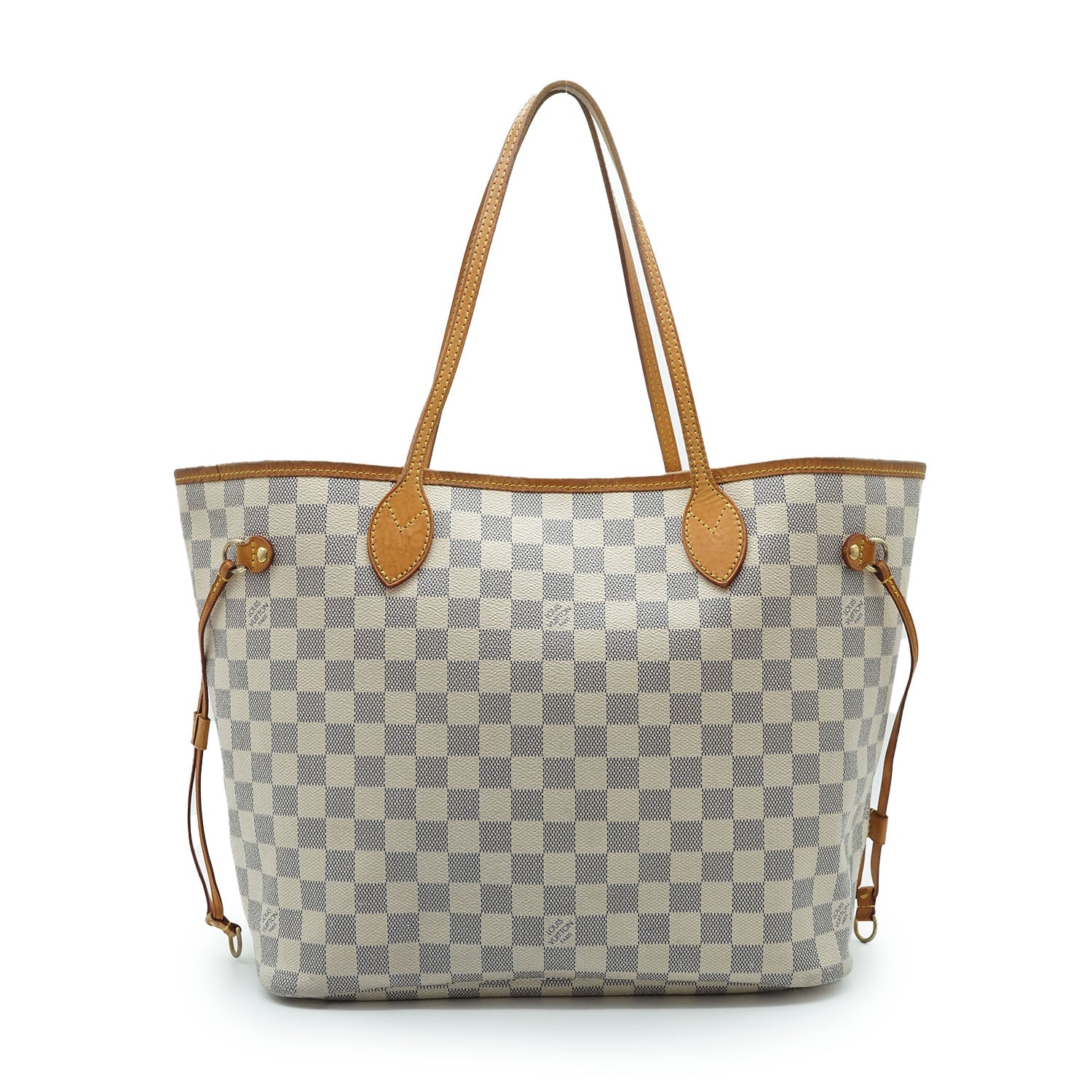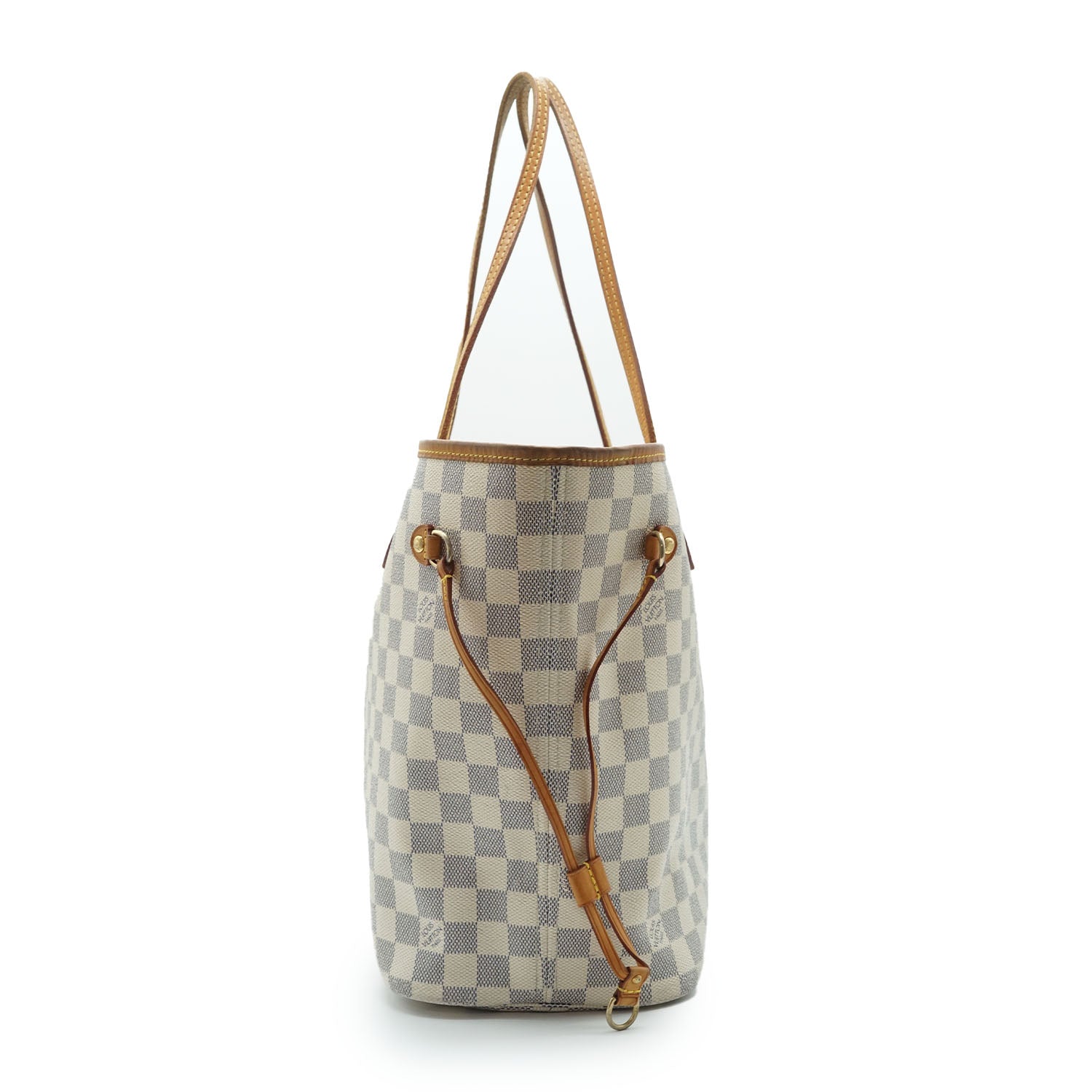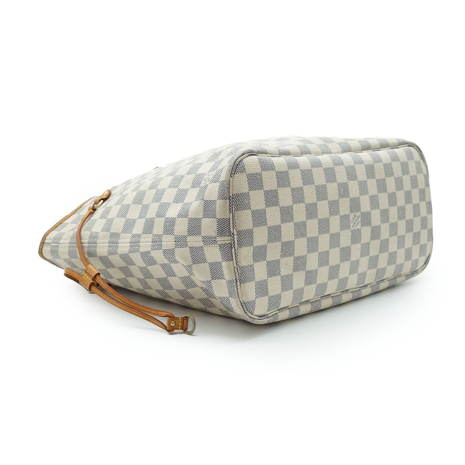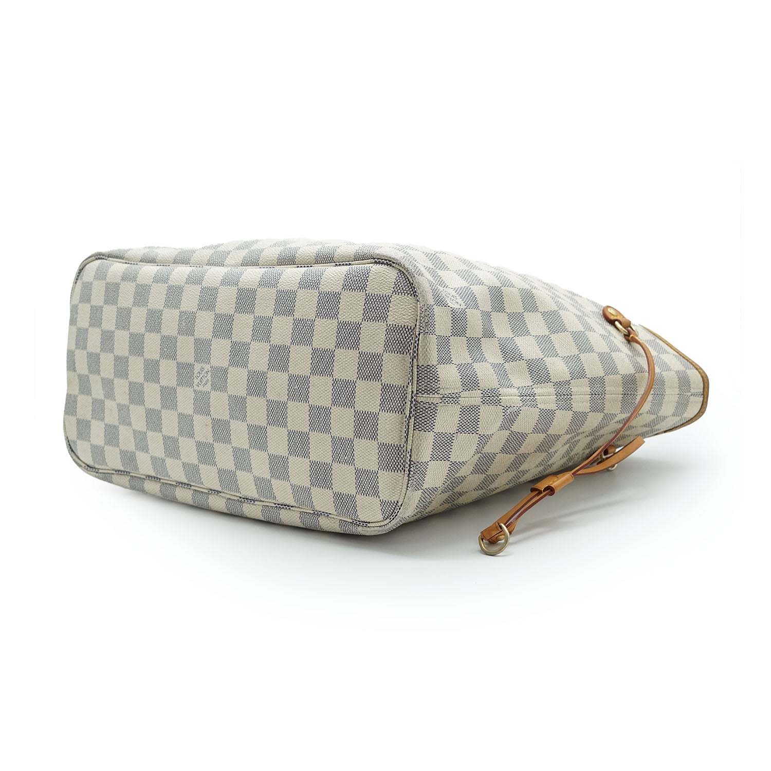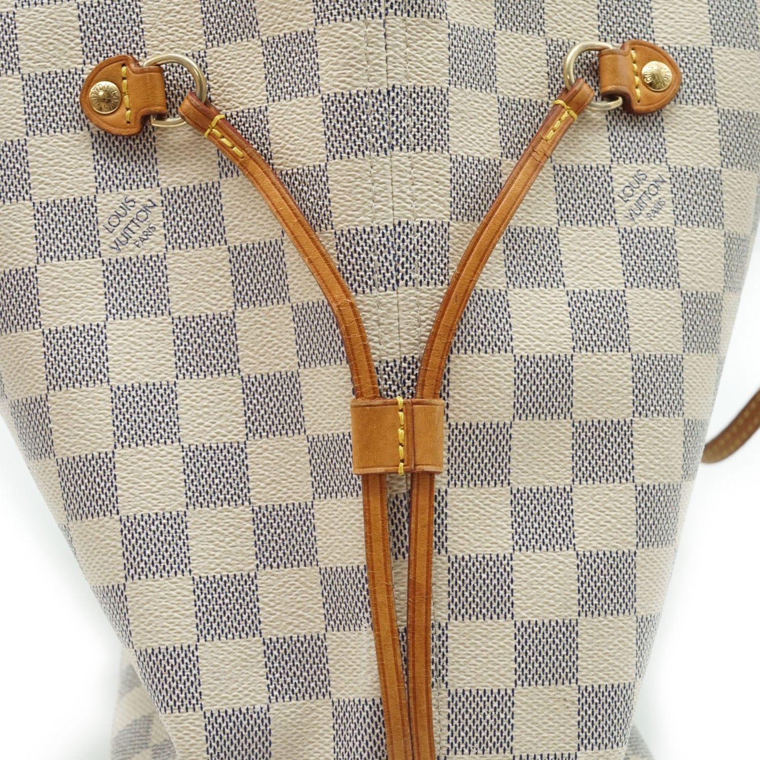 Damier Azur Neverfull MM Tote Bag White Canvas, Leather