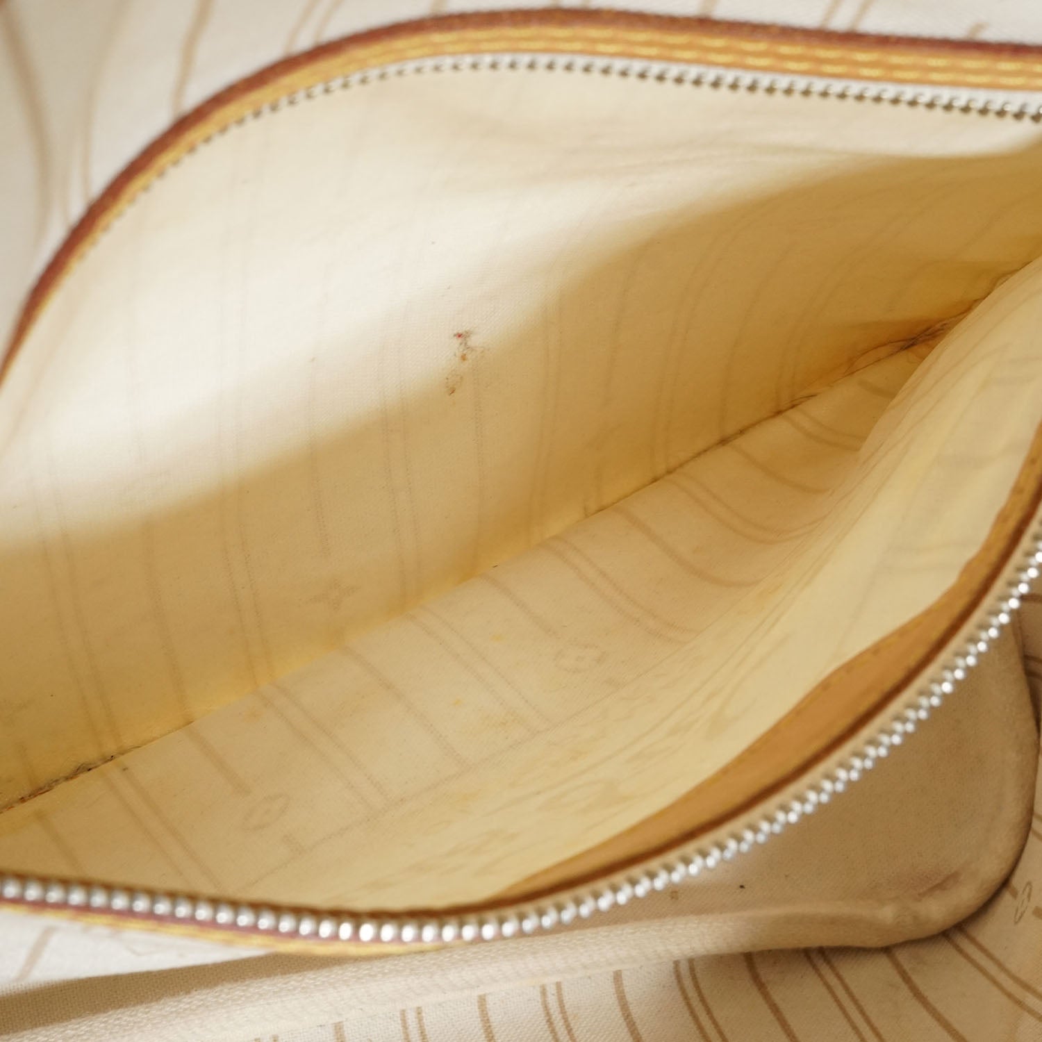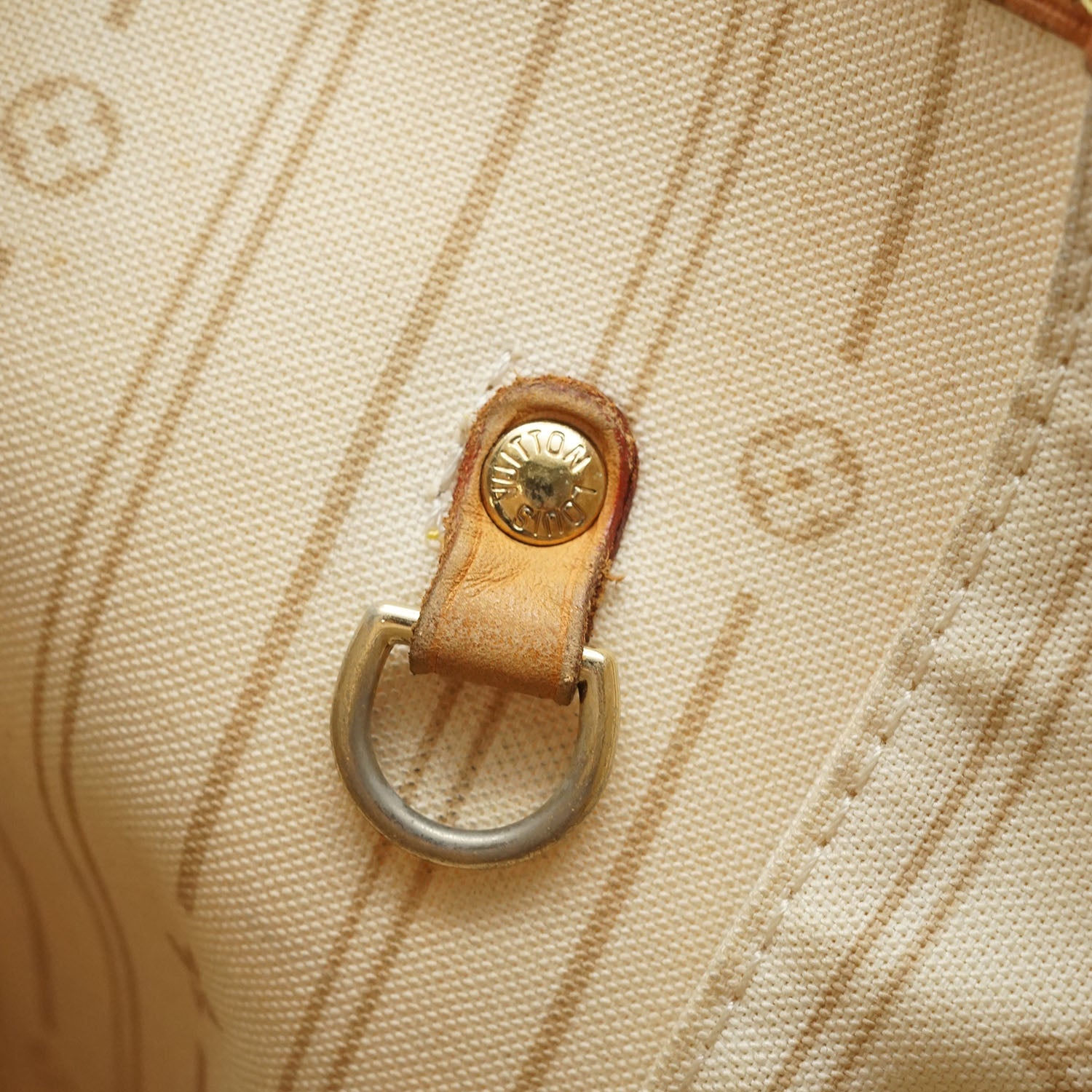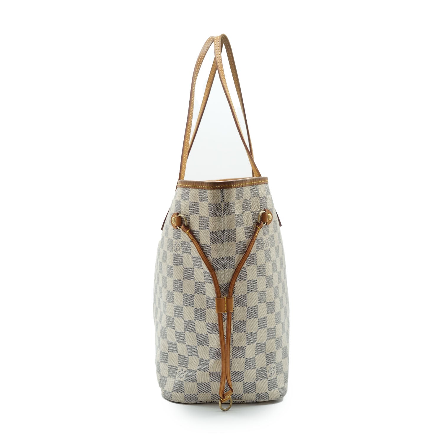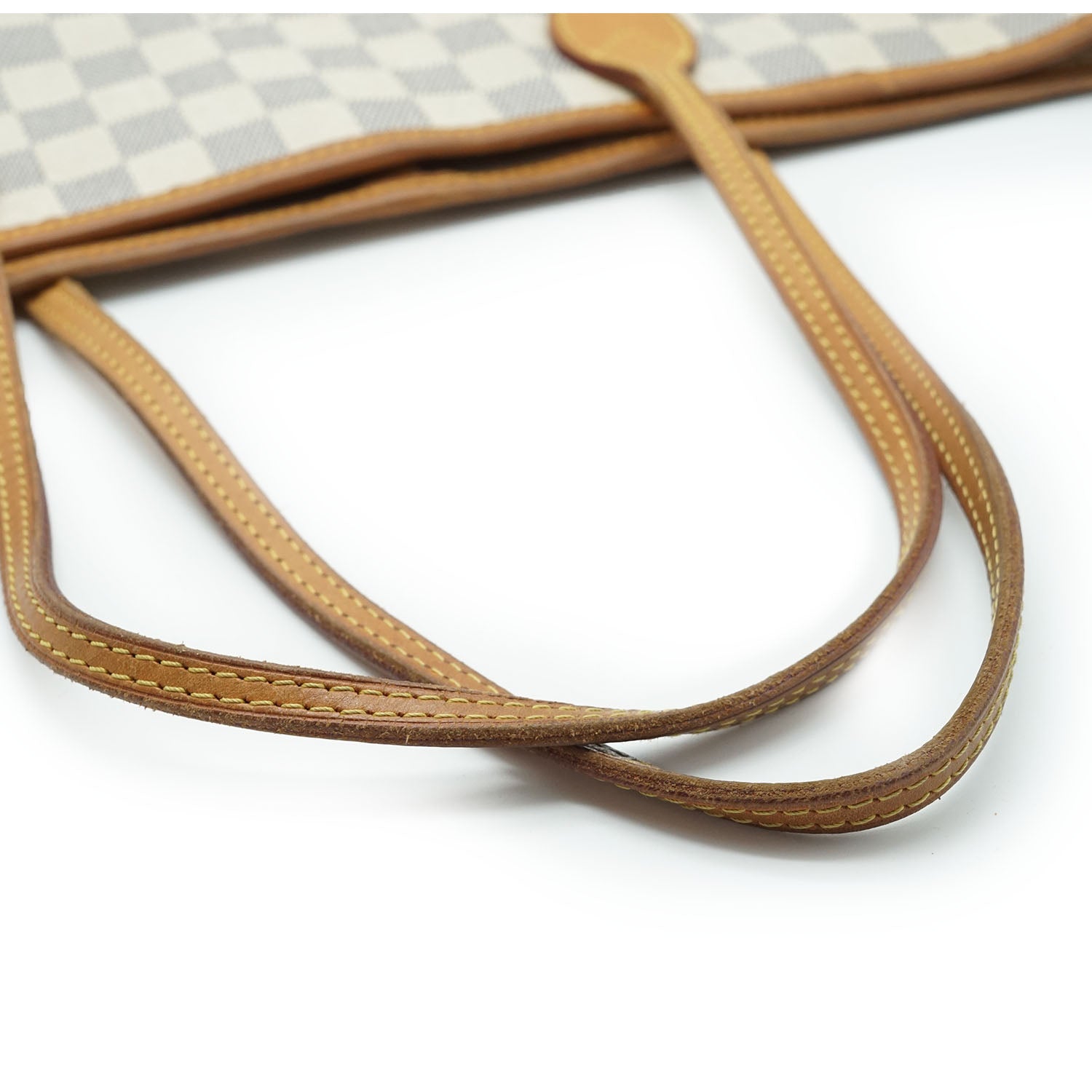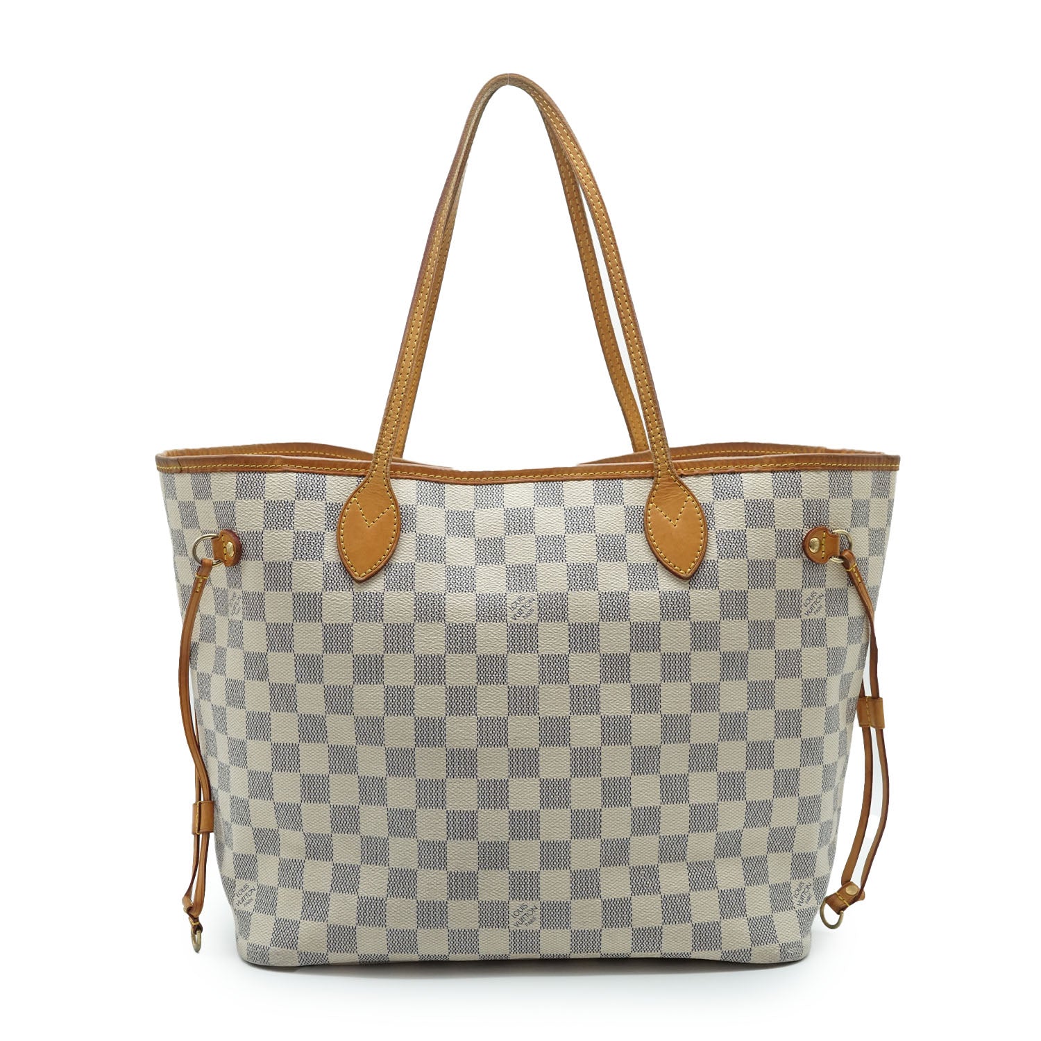 Damier Azur Neverfull MM Tote Bag White Canvas, Leather