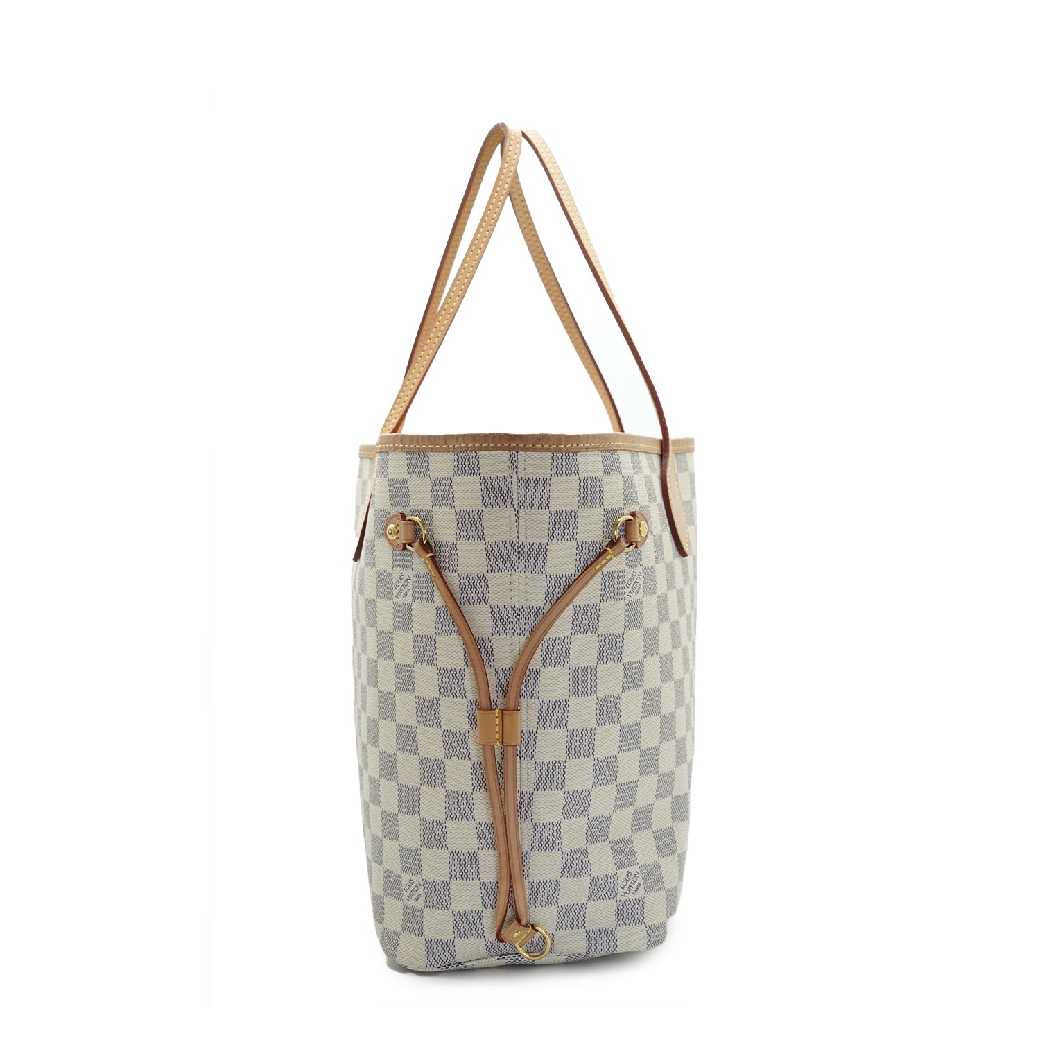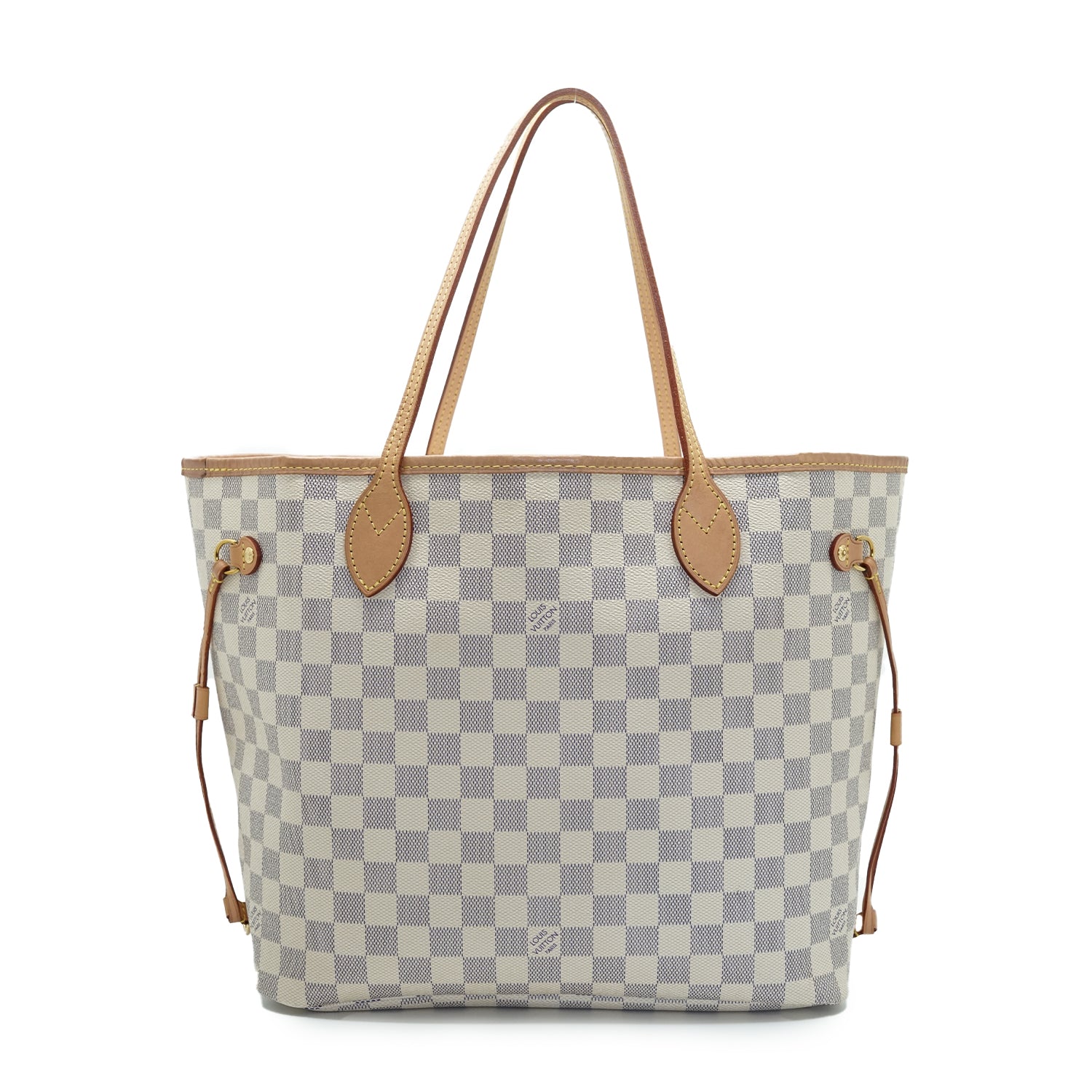 Damier Azur Rose Ballerine Neverfull MM White/Light pink Canvas, Leather