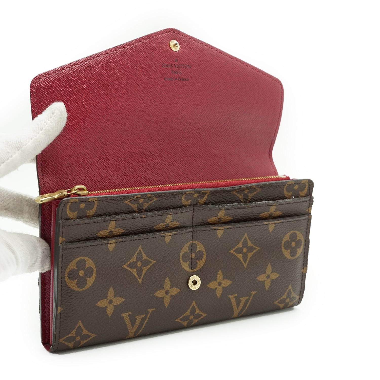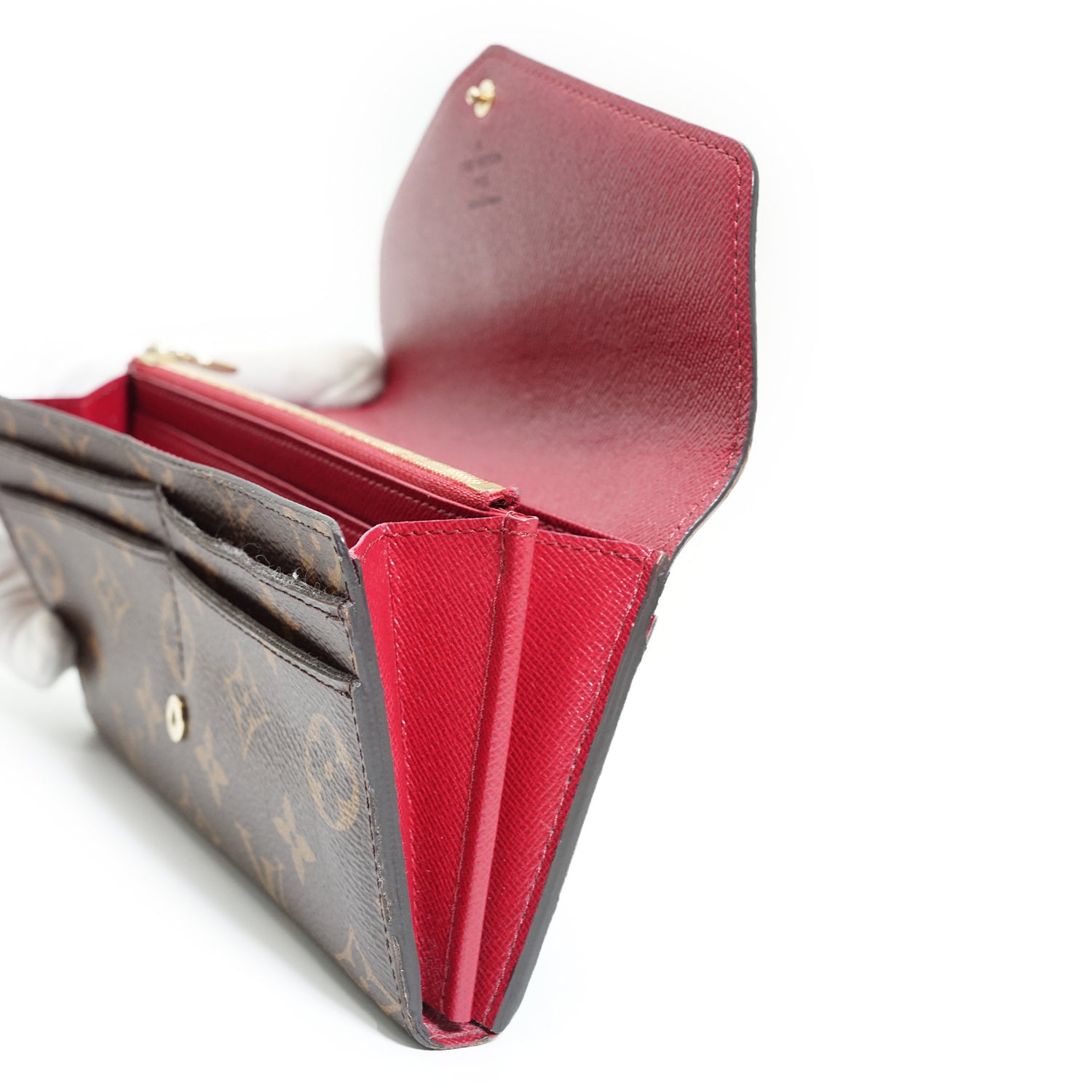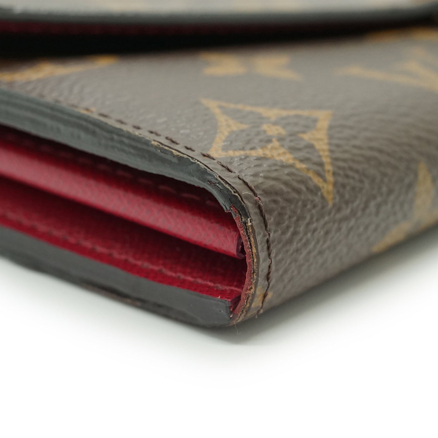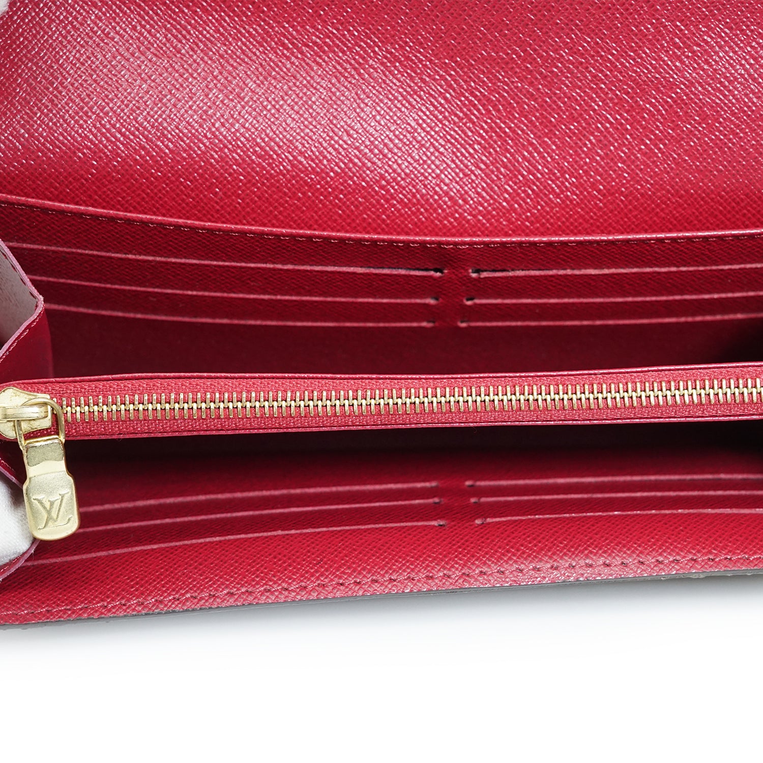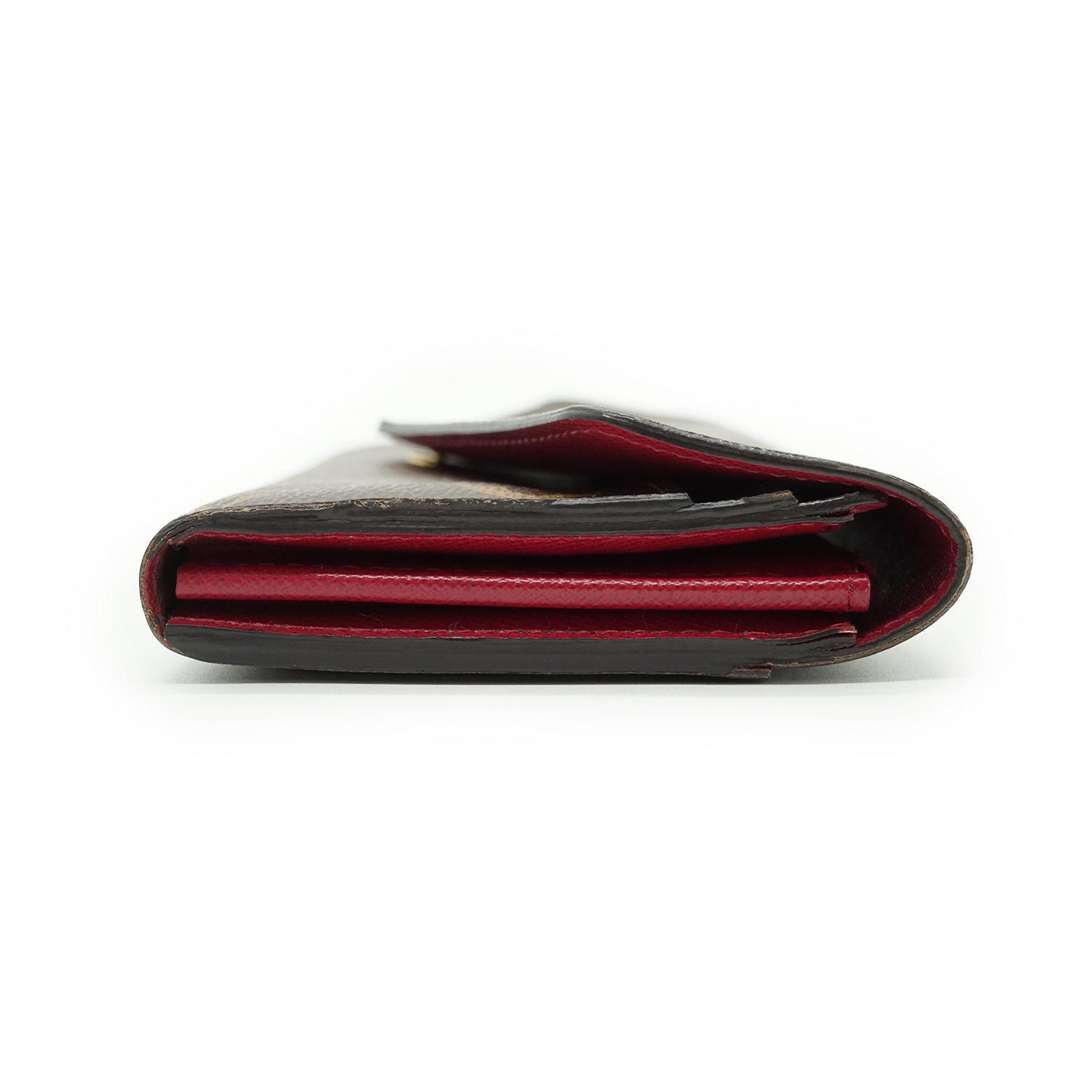 Damier Ebene Portefeuille Sarah Fuchsia Brown Canvas, Leather