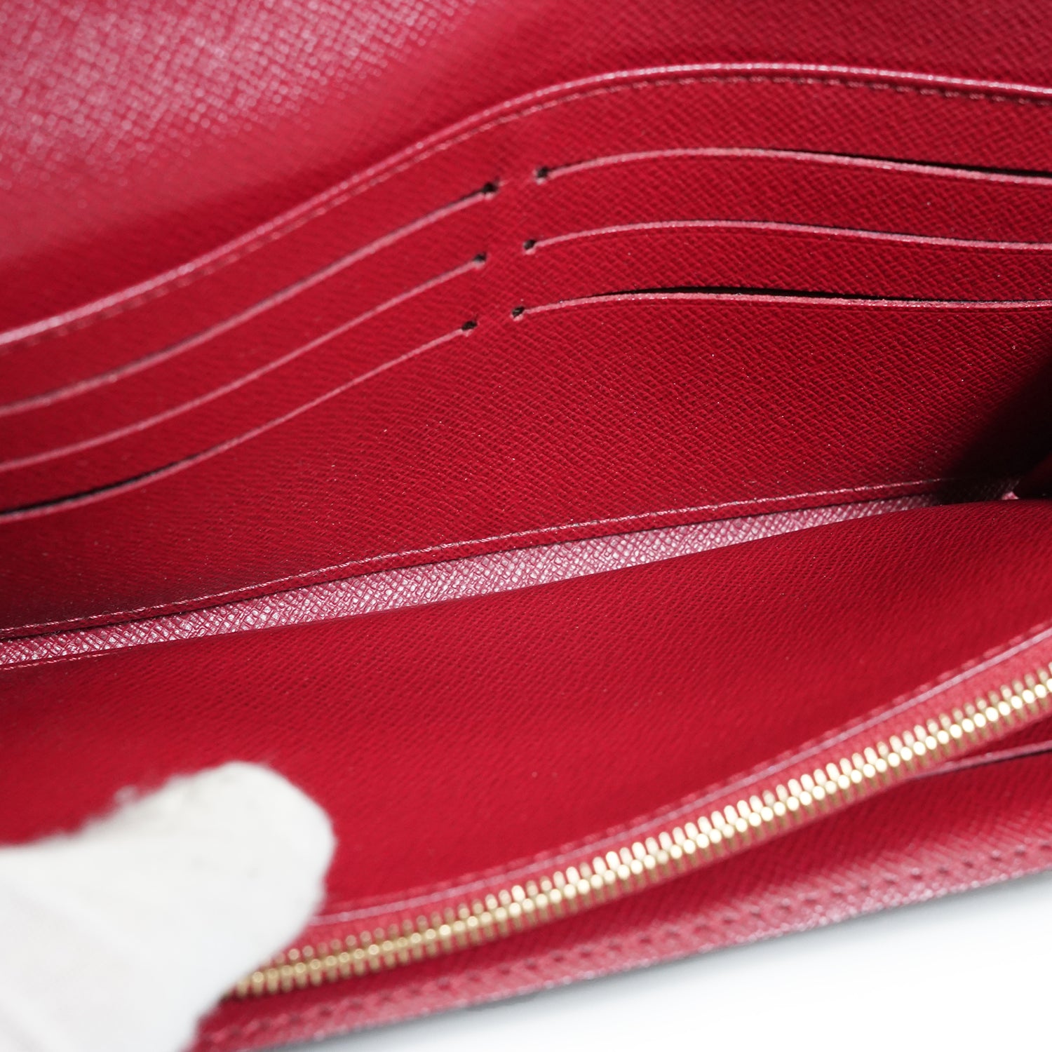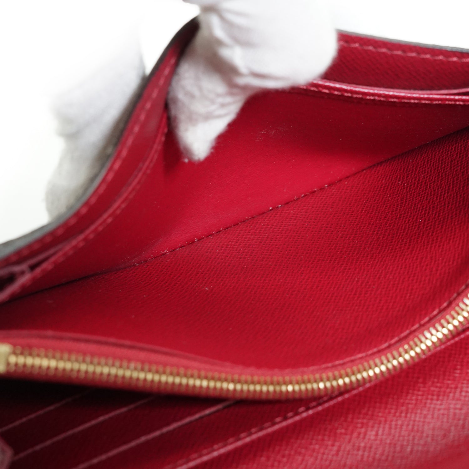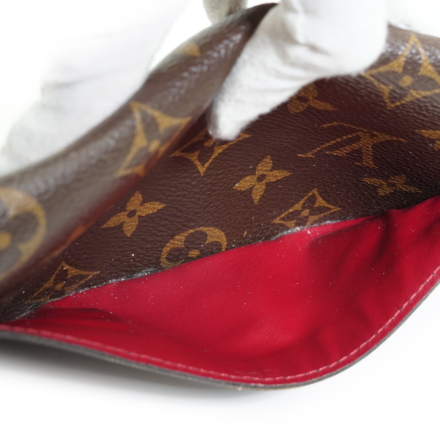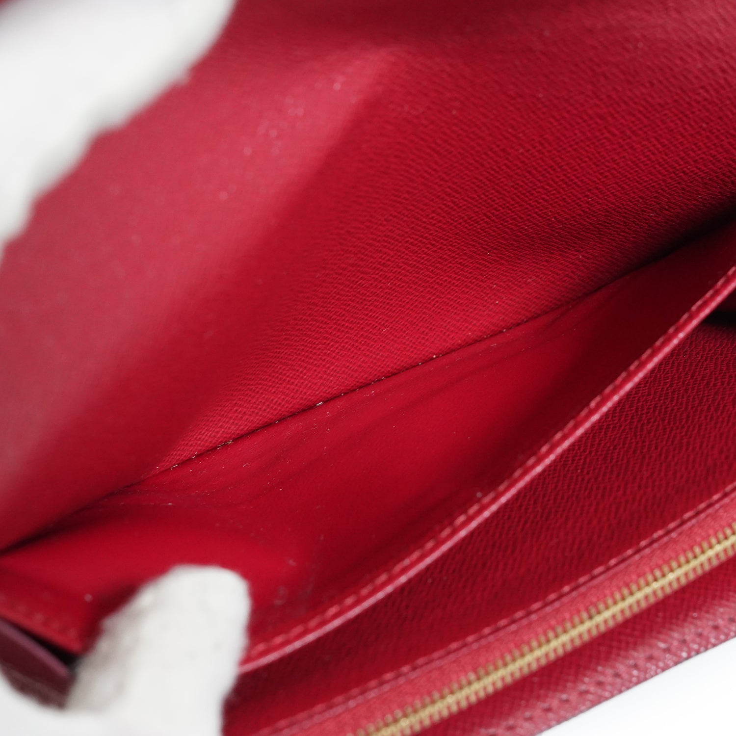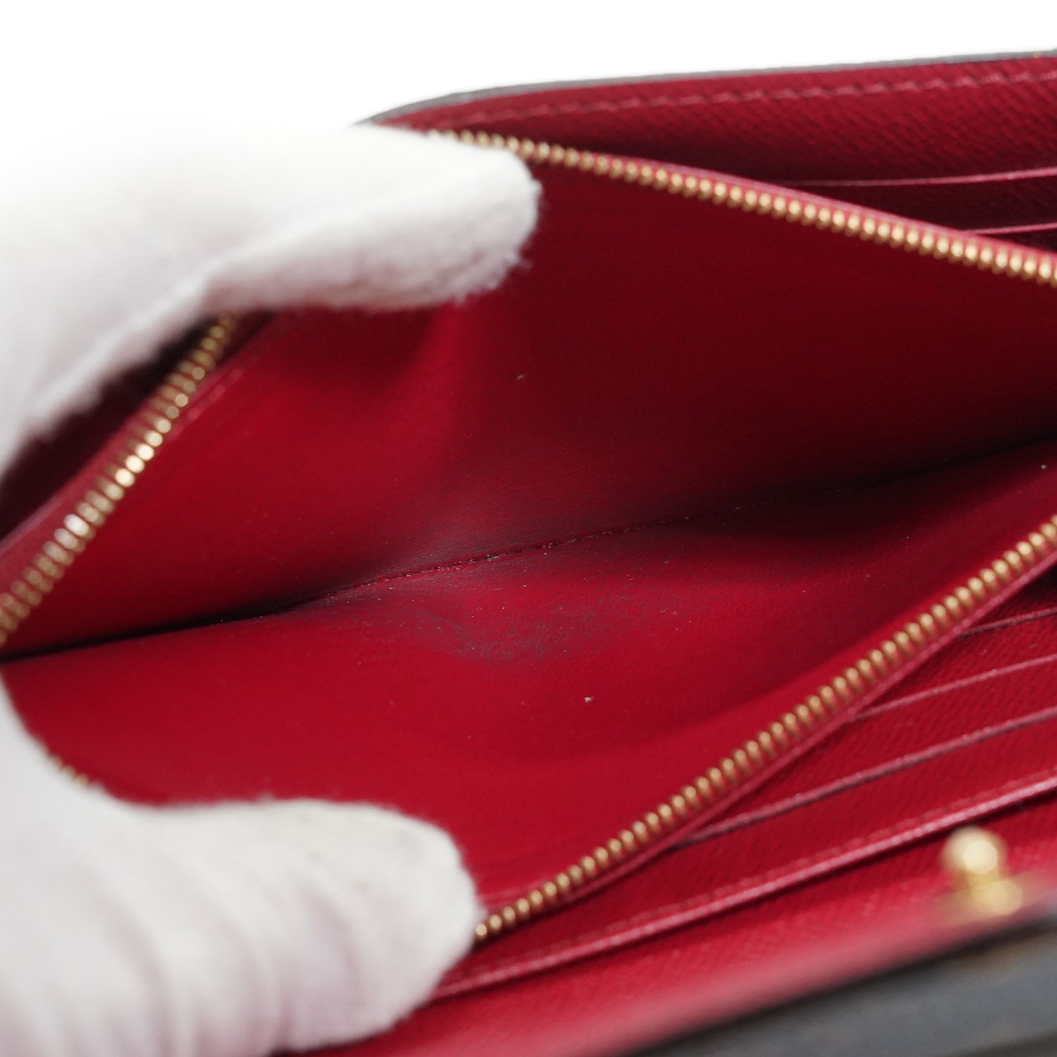 Discoloration: Slight hardware tarnish, some darkening throughout the inside