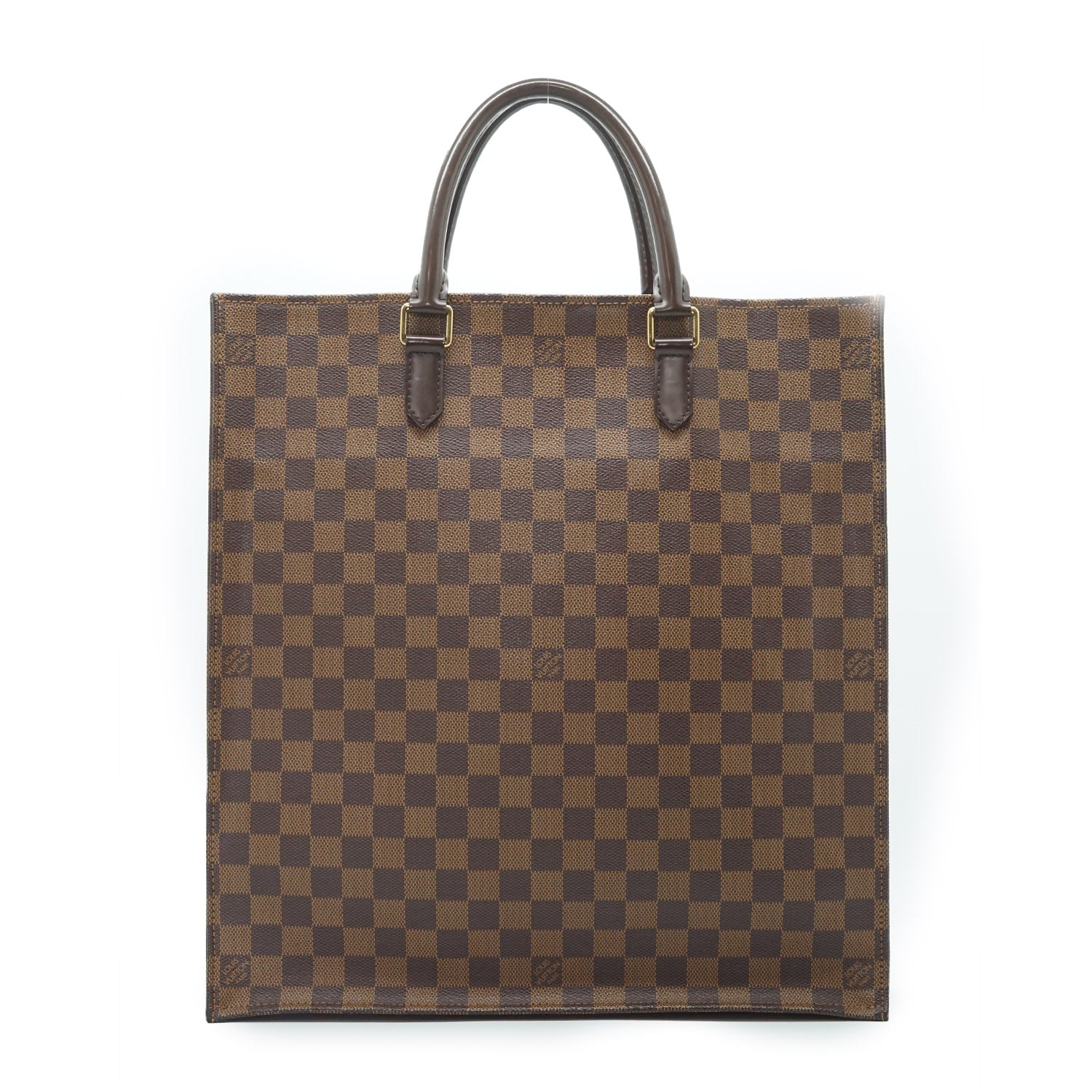 Damier Ebene Sac Plat GM Brown Canvas, Leather