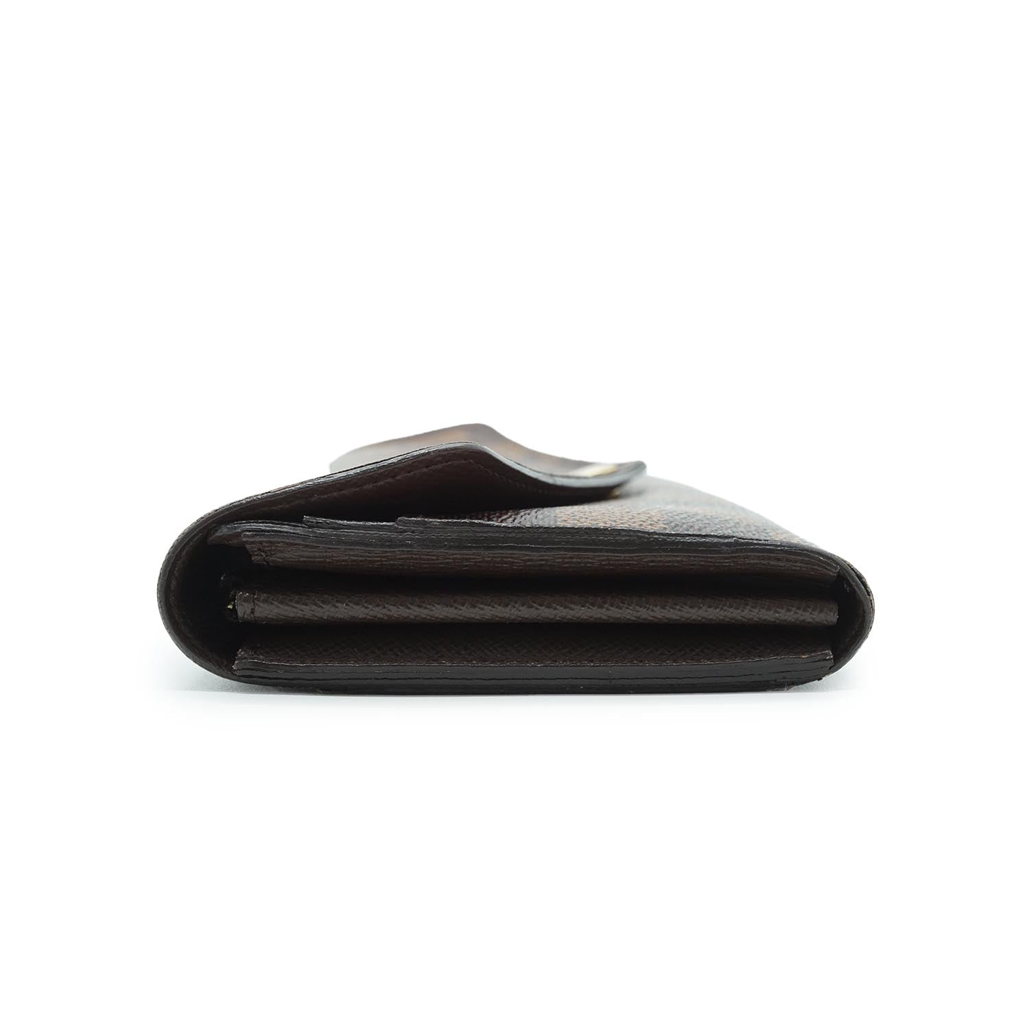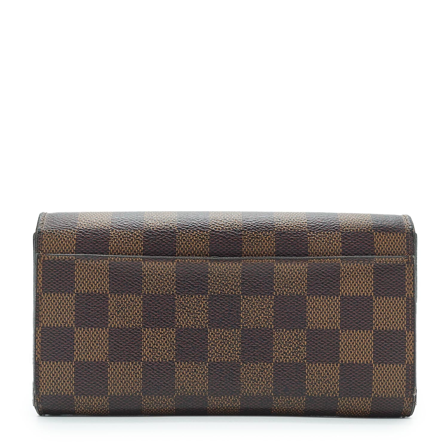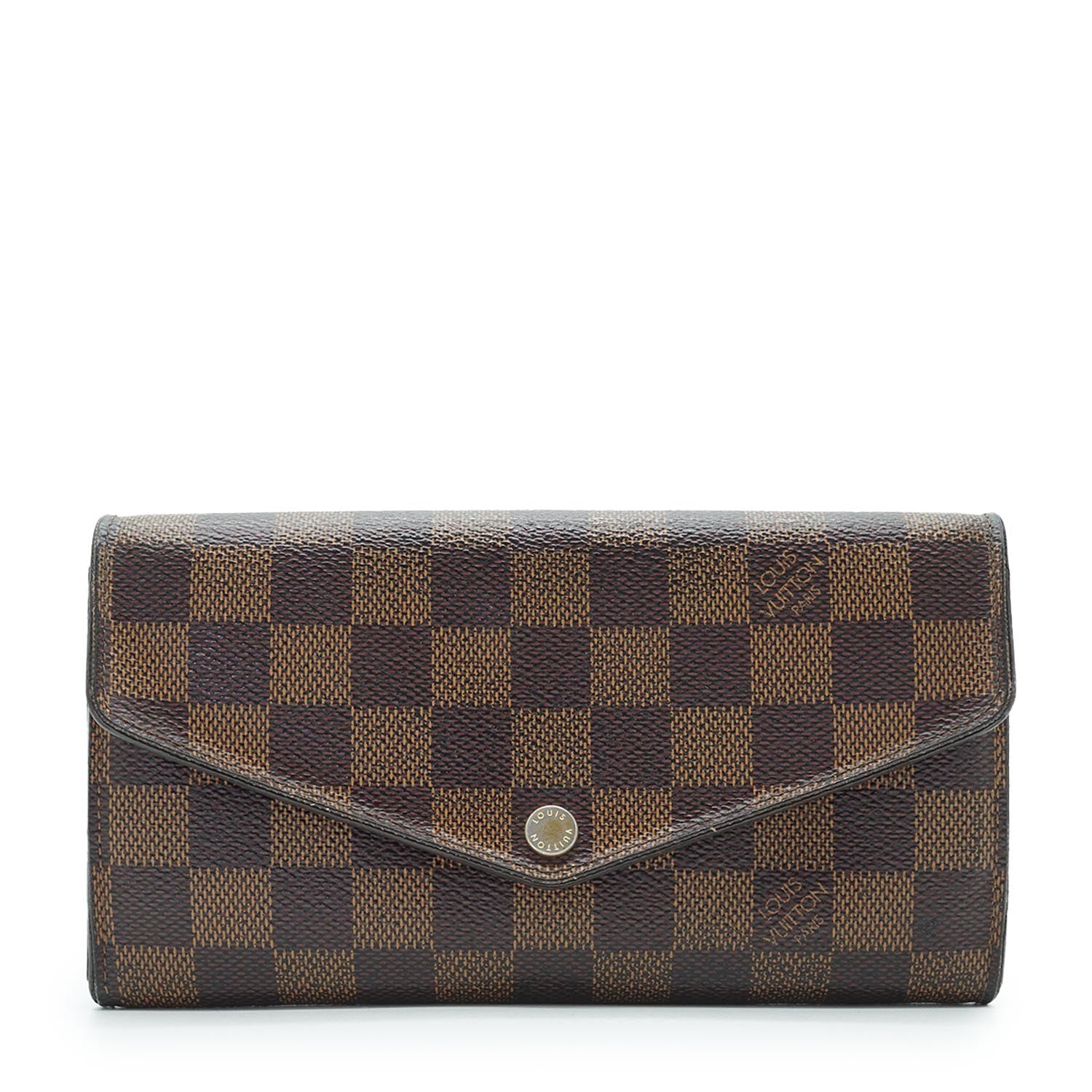 Damier Ebene Sarah Wallet Brown Canvas, Leather