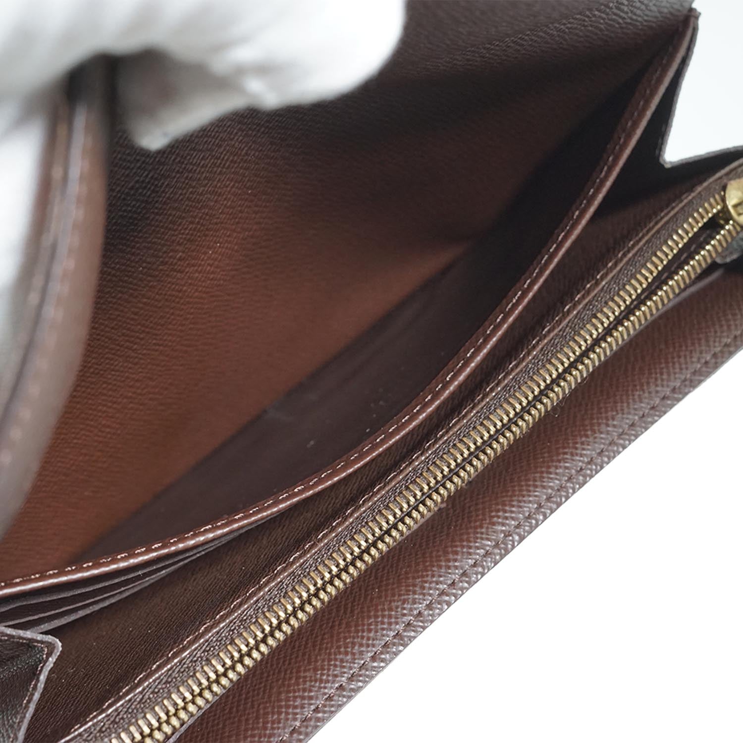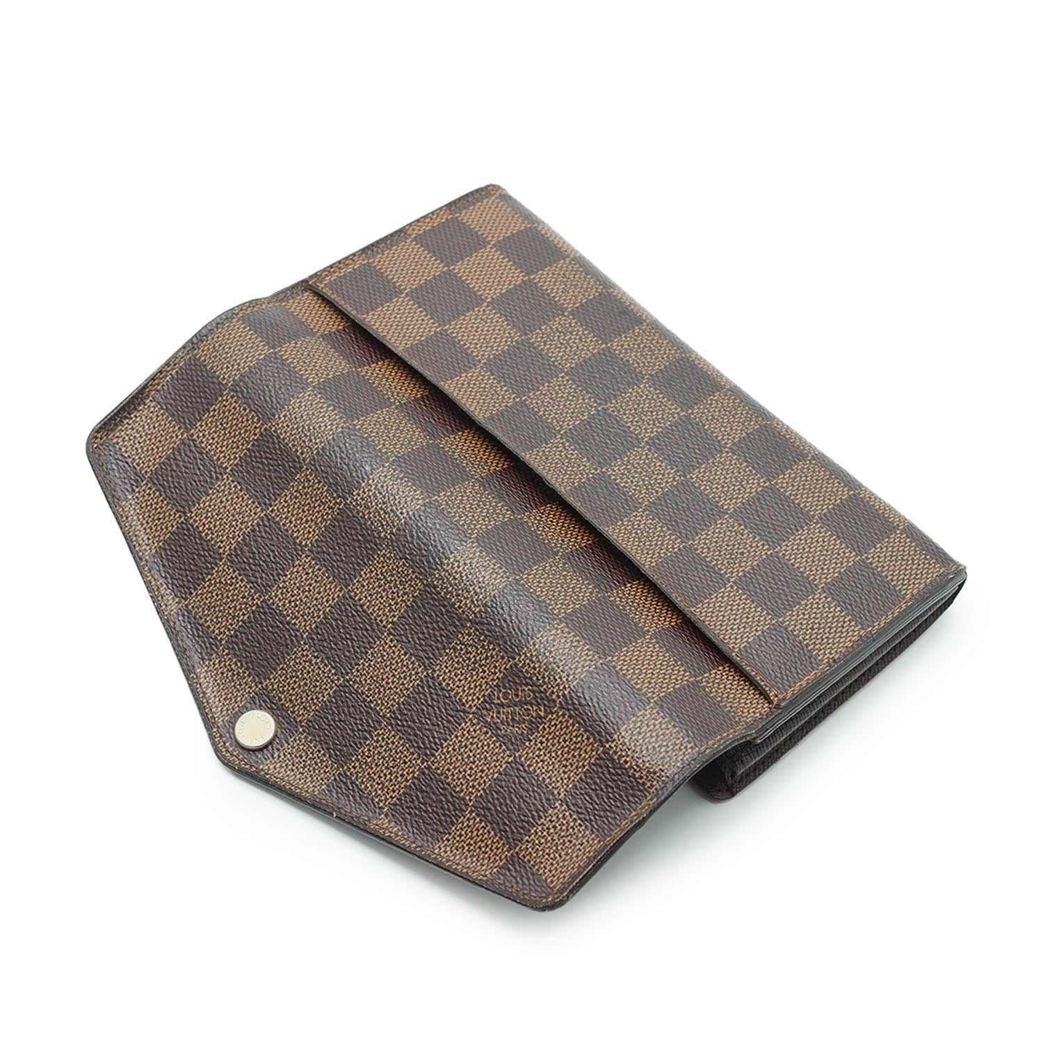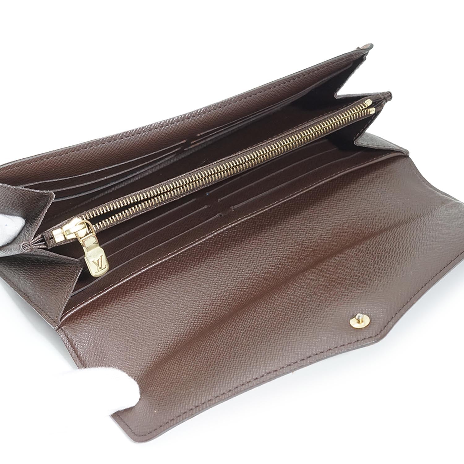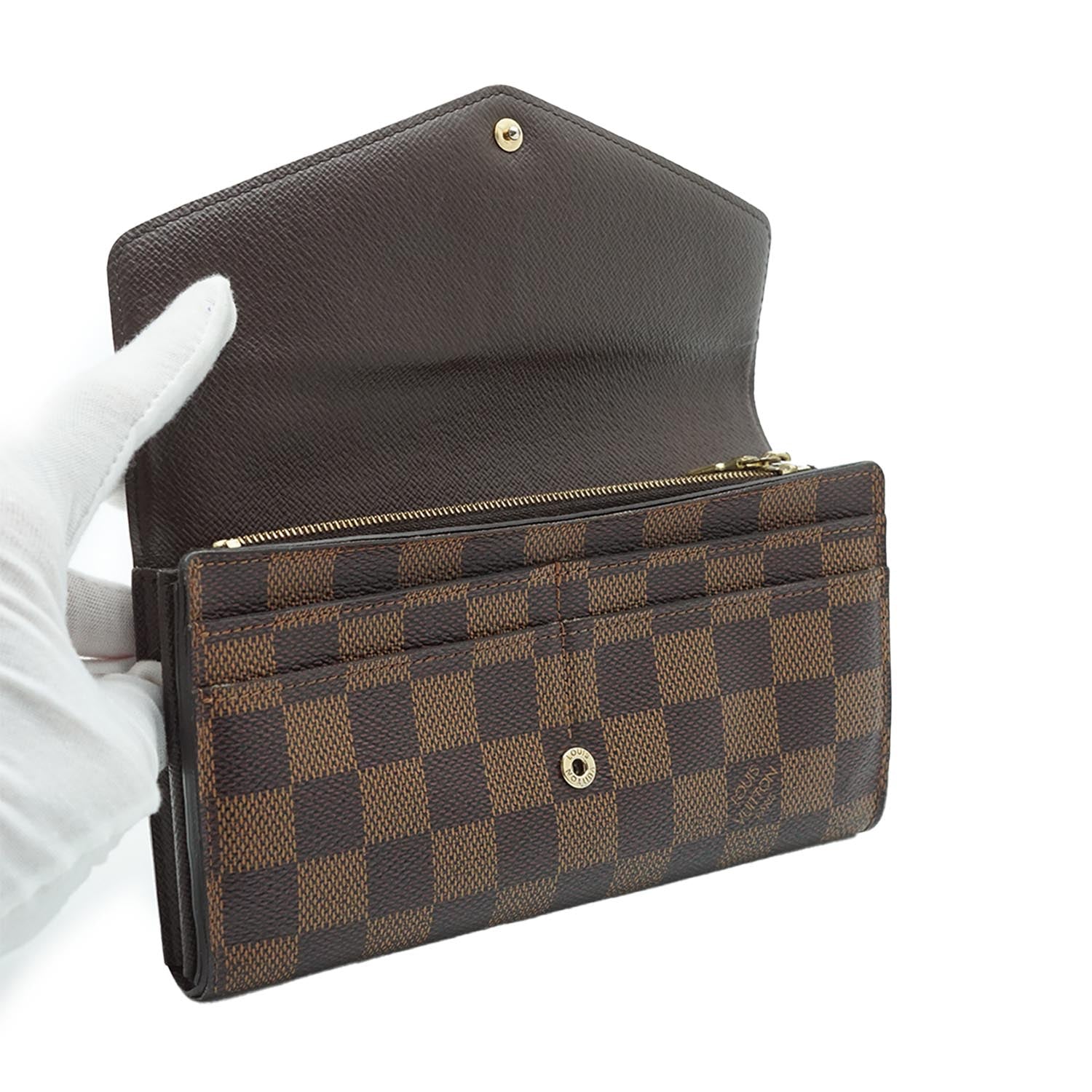 Damier Ebene Sarah Wallet Brown Canvas, Leather