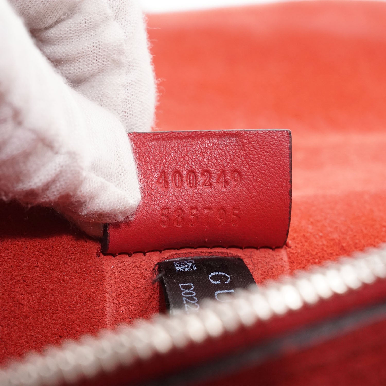 Worn: Minor signs of wear on the suede parts and hardware, with a small loose stitch at the base of the flap (on the inside)