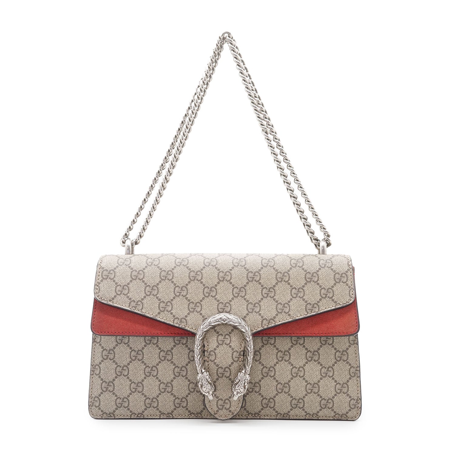 Dionysus GG Supreme Chain Shoulder Bag Brown Canvas, Leather