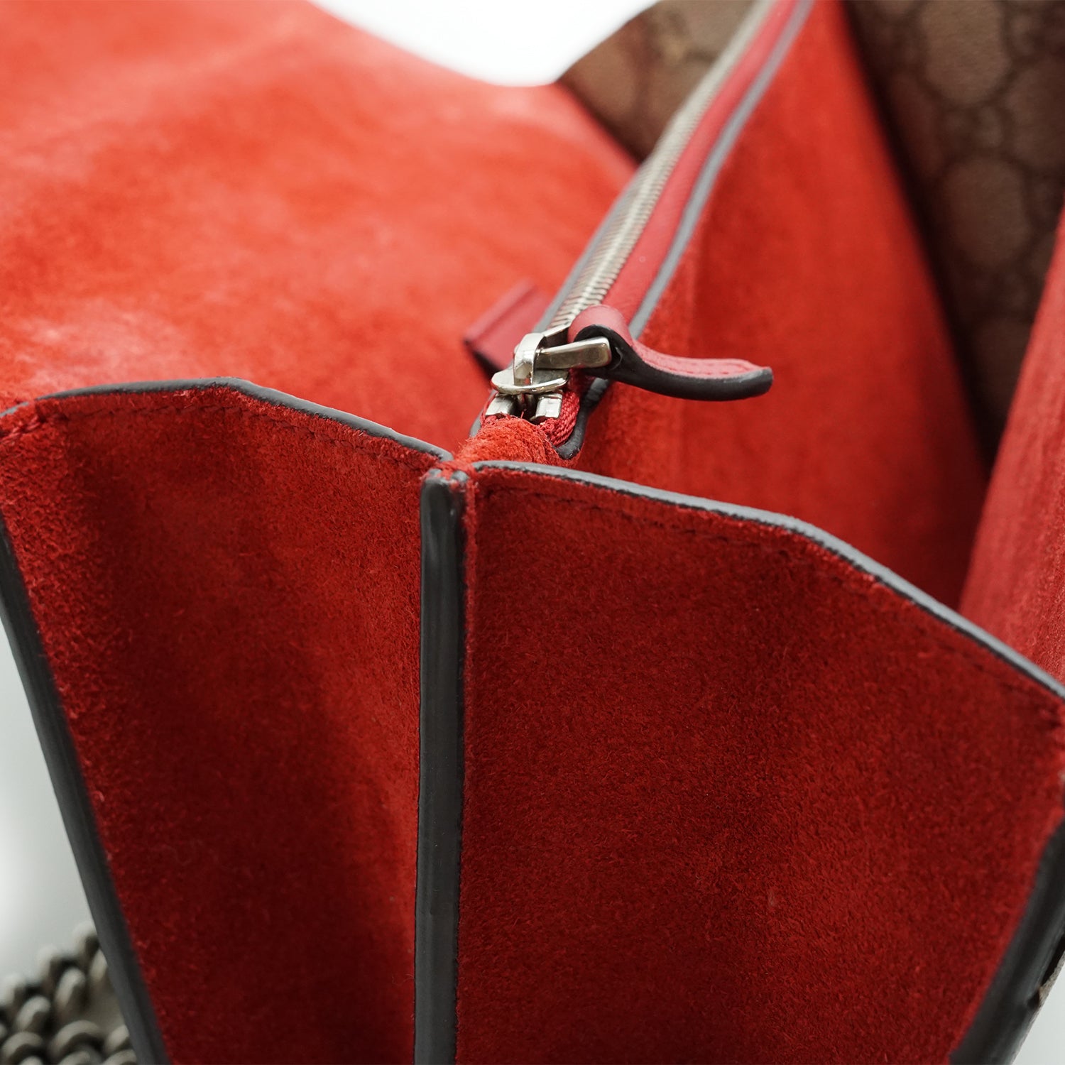 Dionysus GG Supreme Chain Shoulder Bag Brown/Red Suede, Canvas, Leather