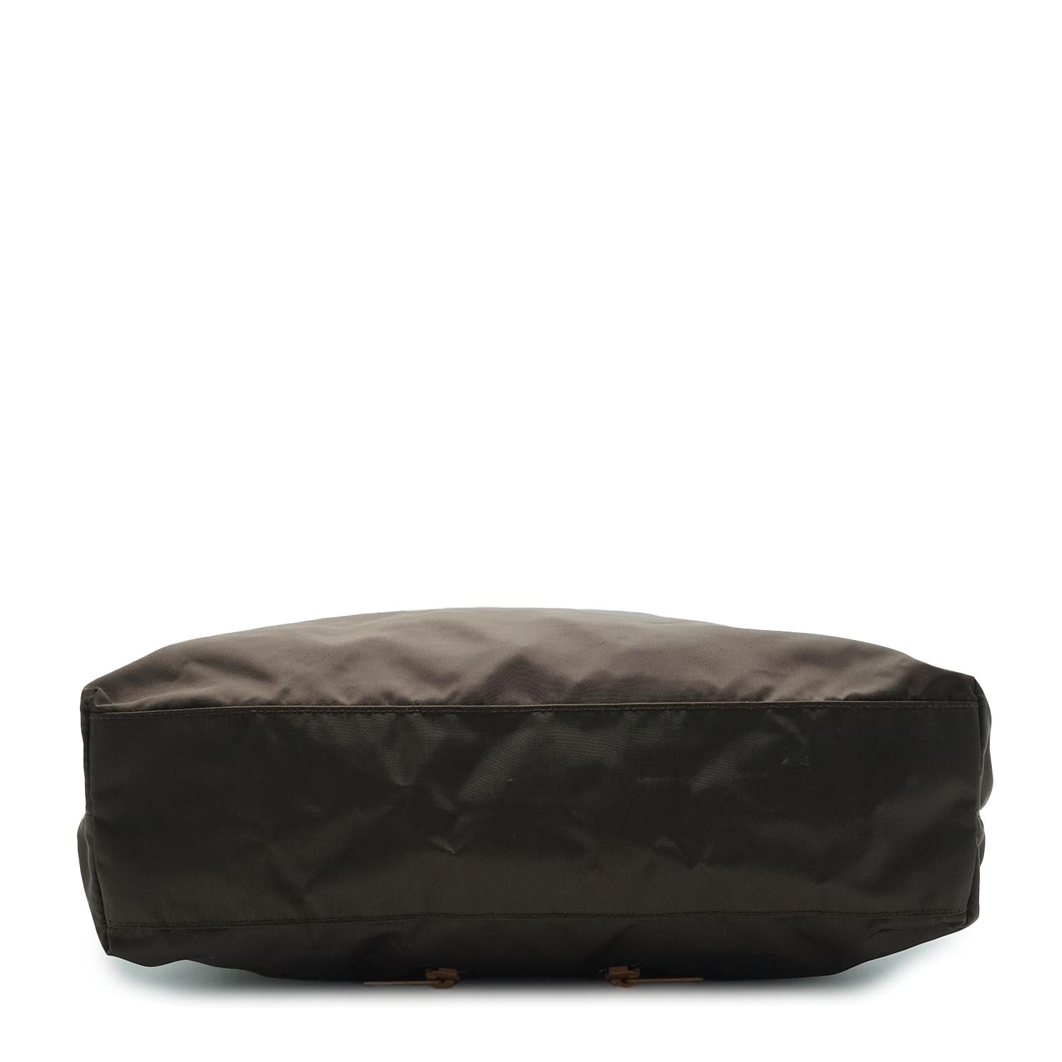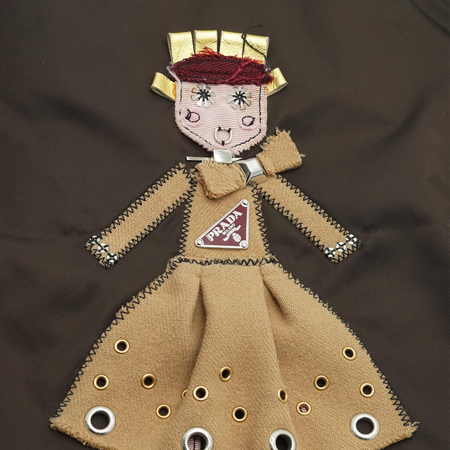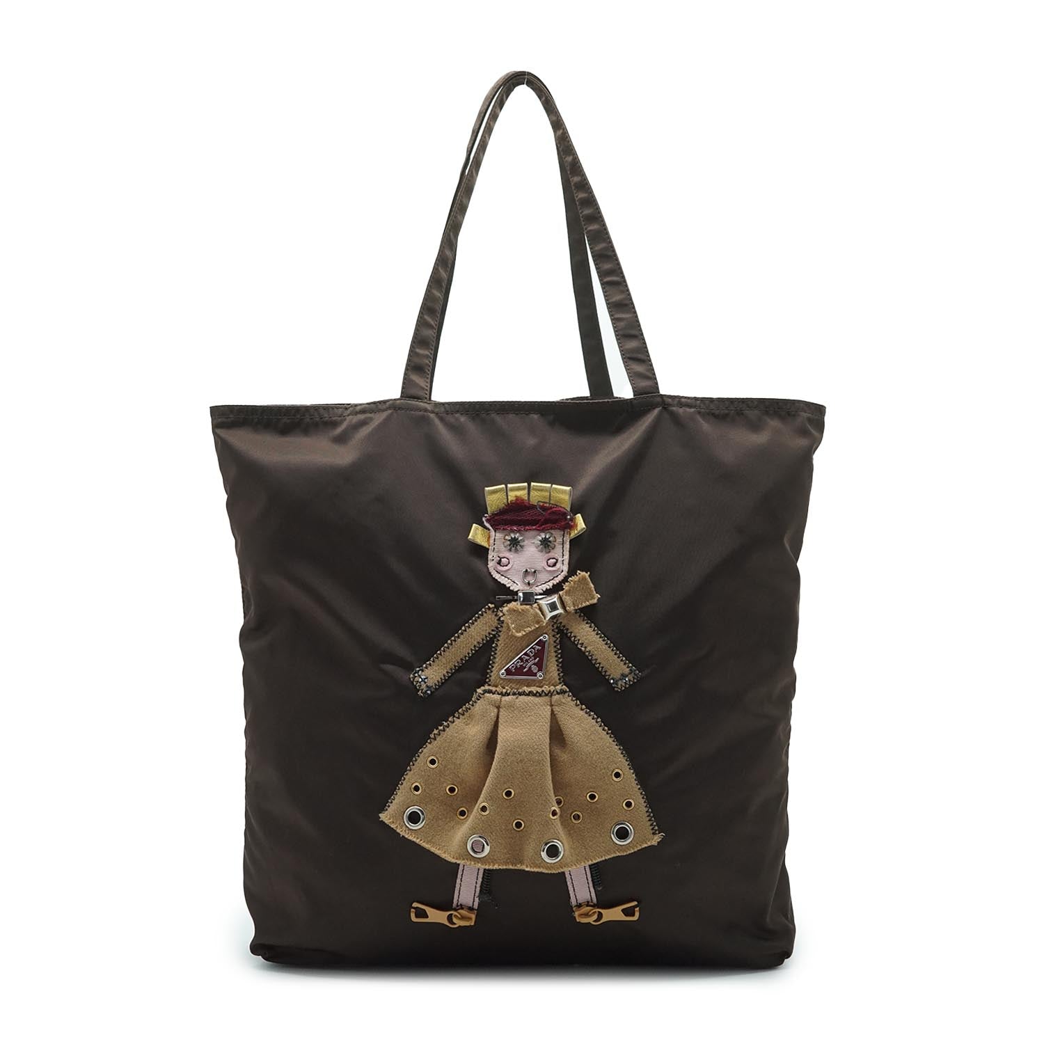 Doll Robot Applique Nylon Tote Brown Nylon, Leather