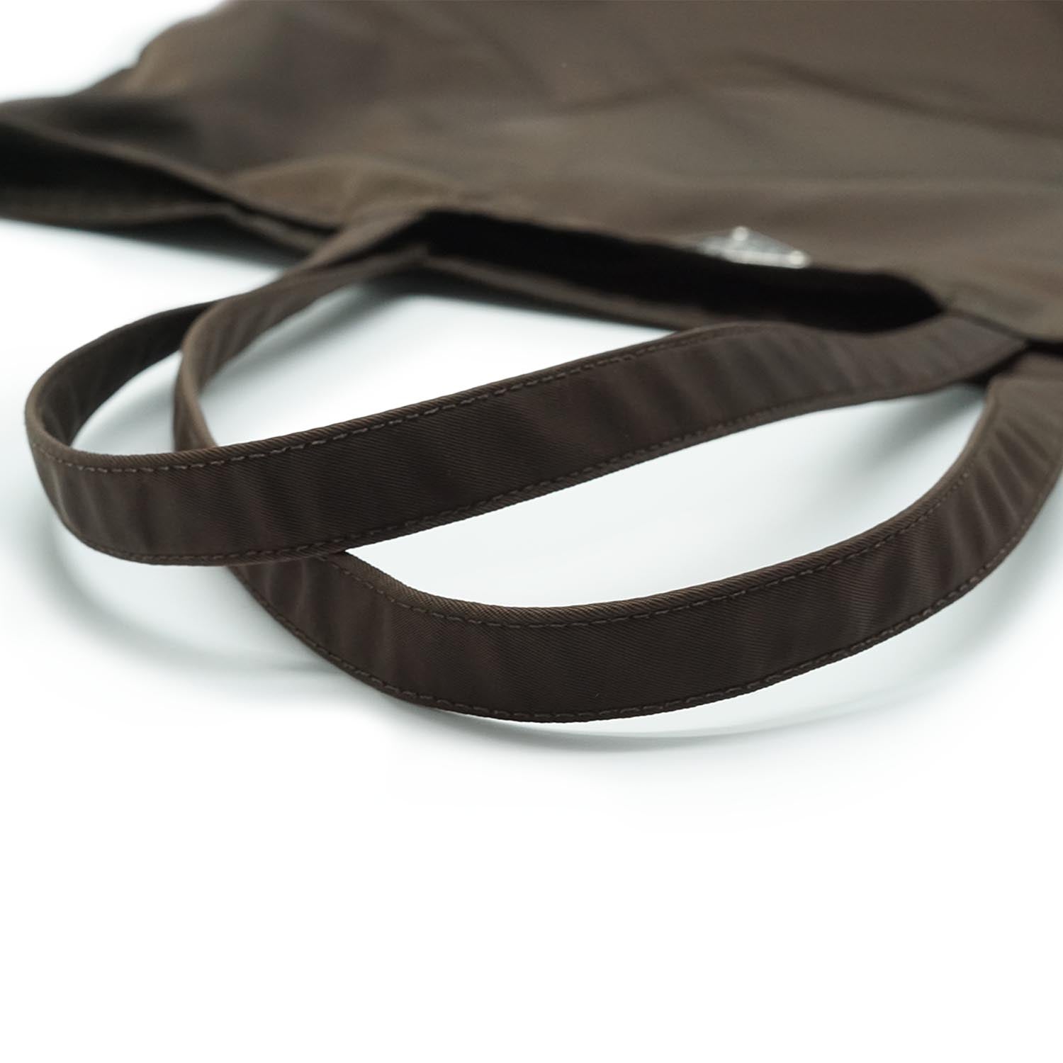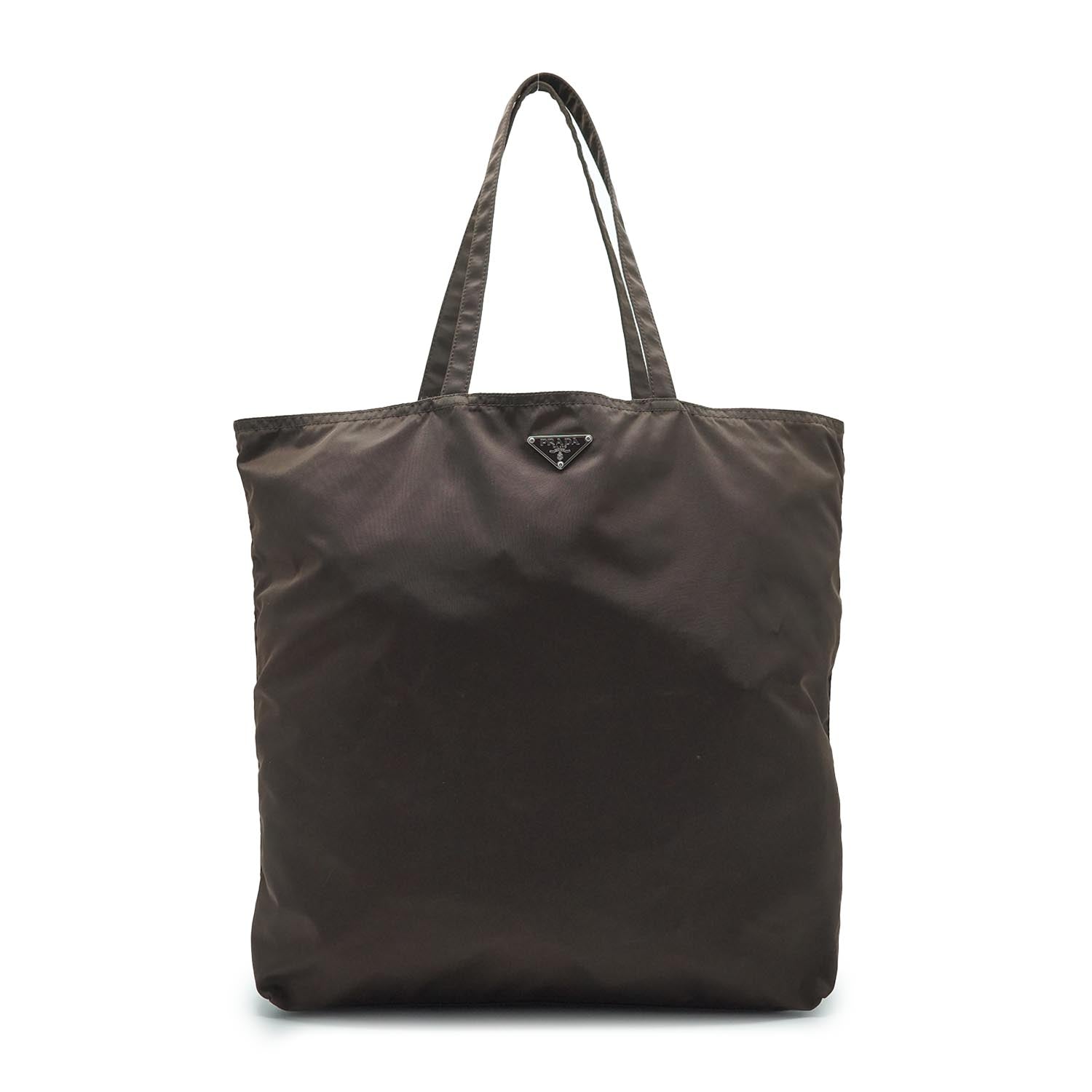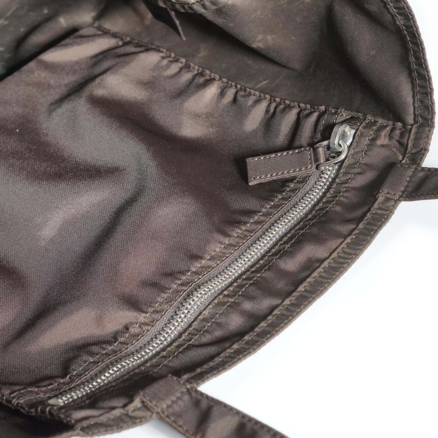 Doll Robot Applique Nylon Tote Brown Nylon, Leather