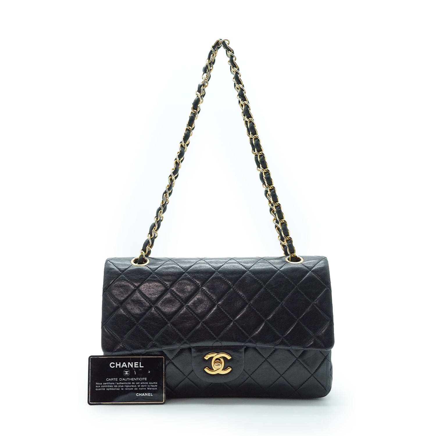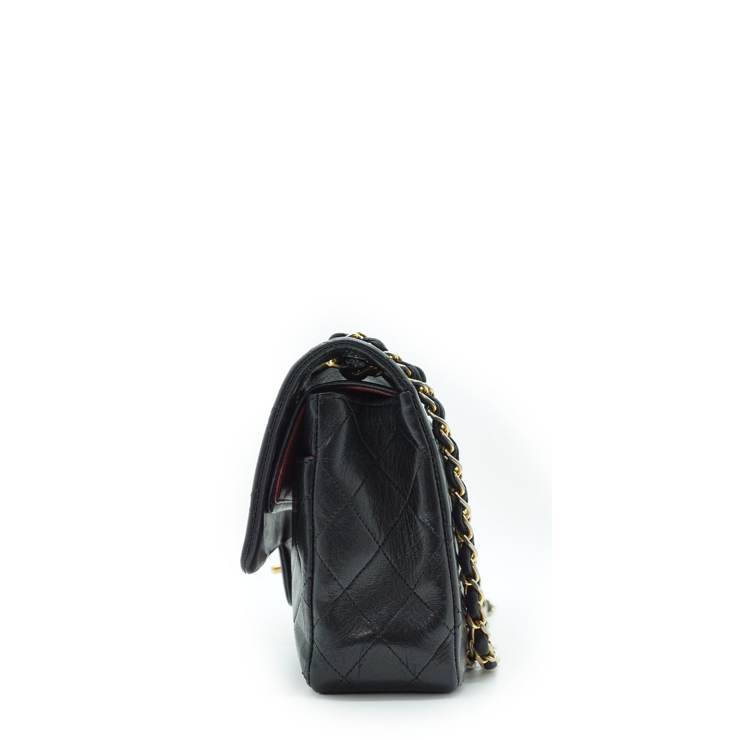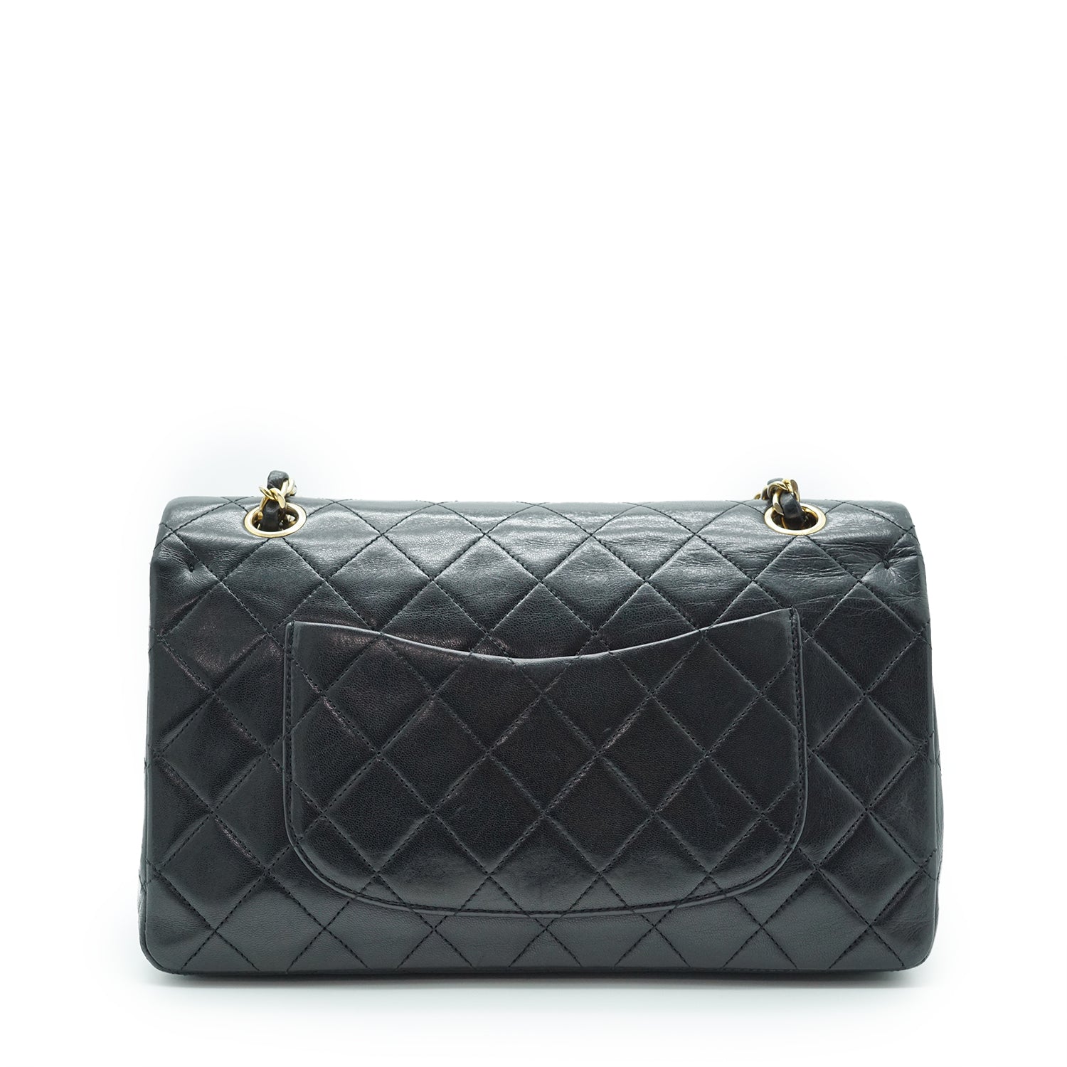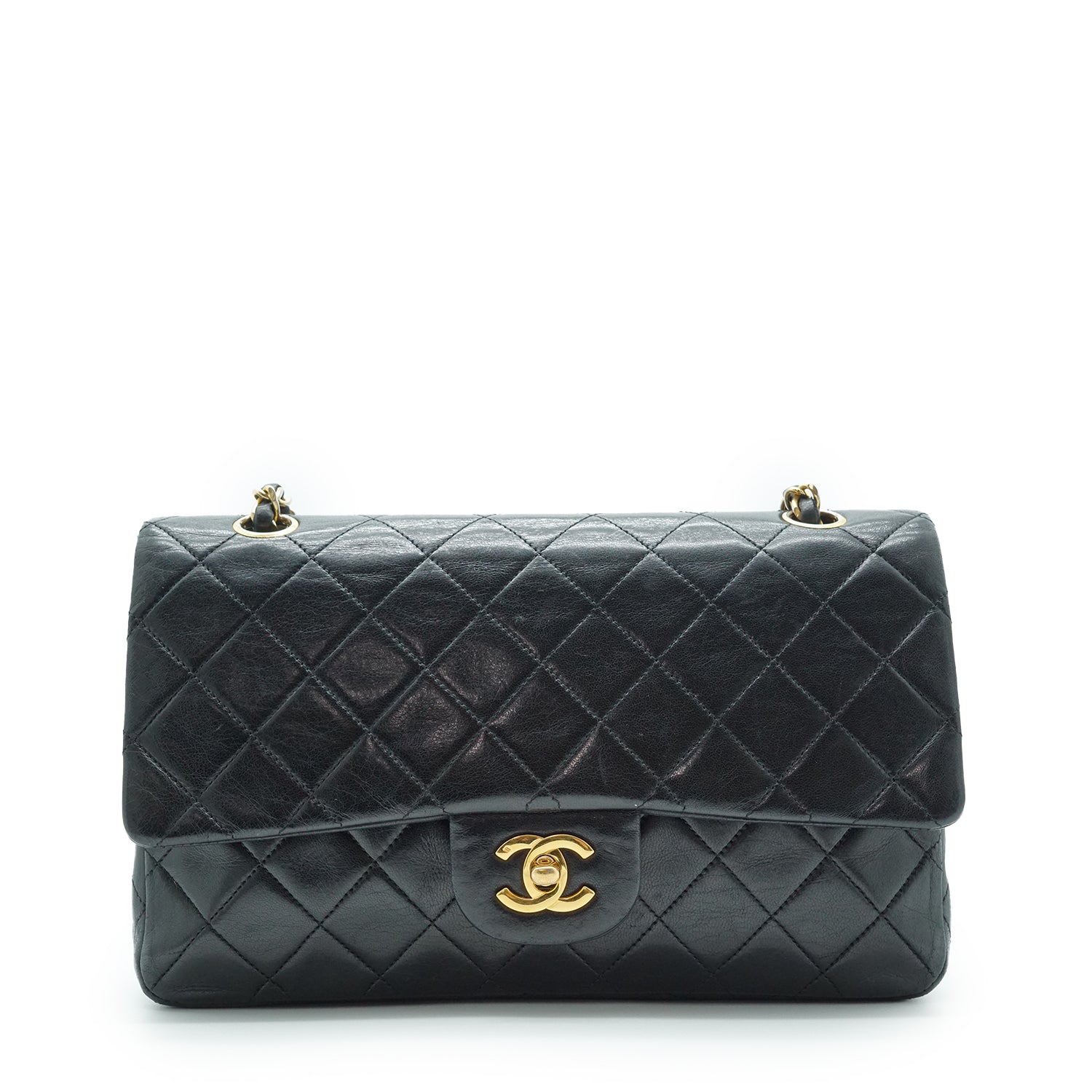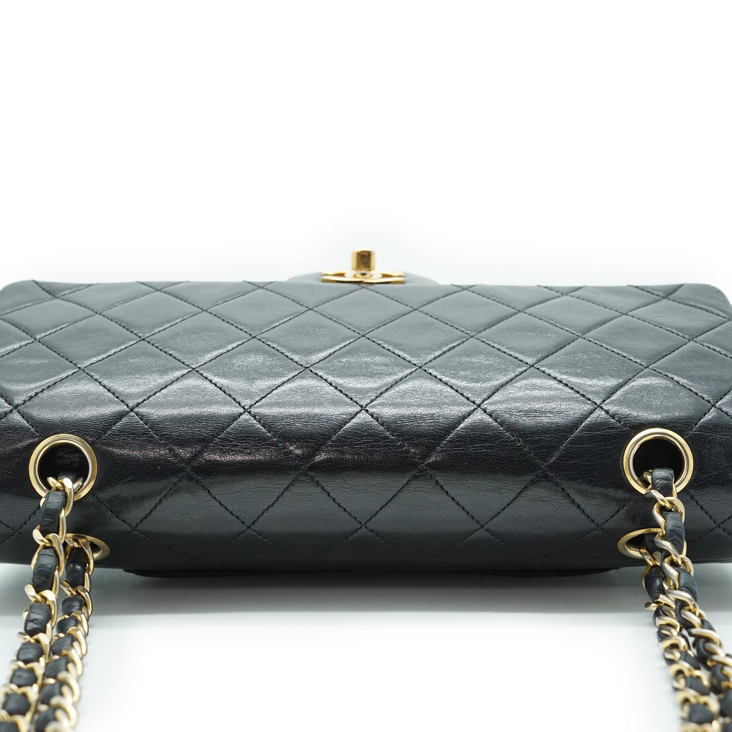 Double Flap Matelasse 25 Lambskin Chain Shoulder Bag Black Leather