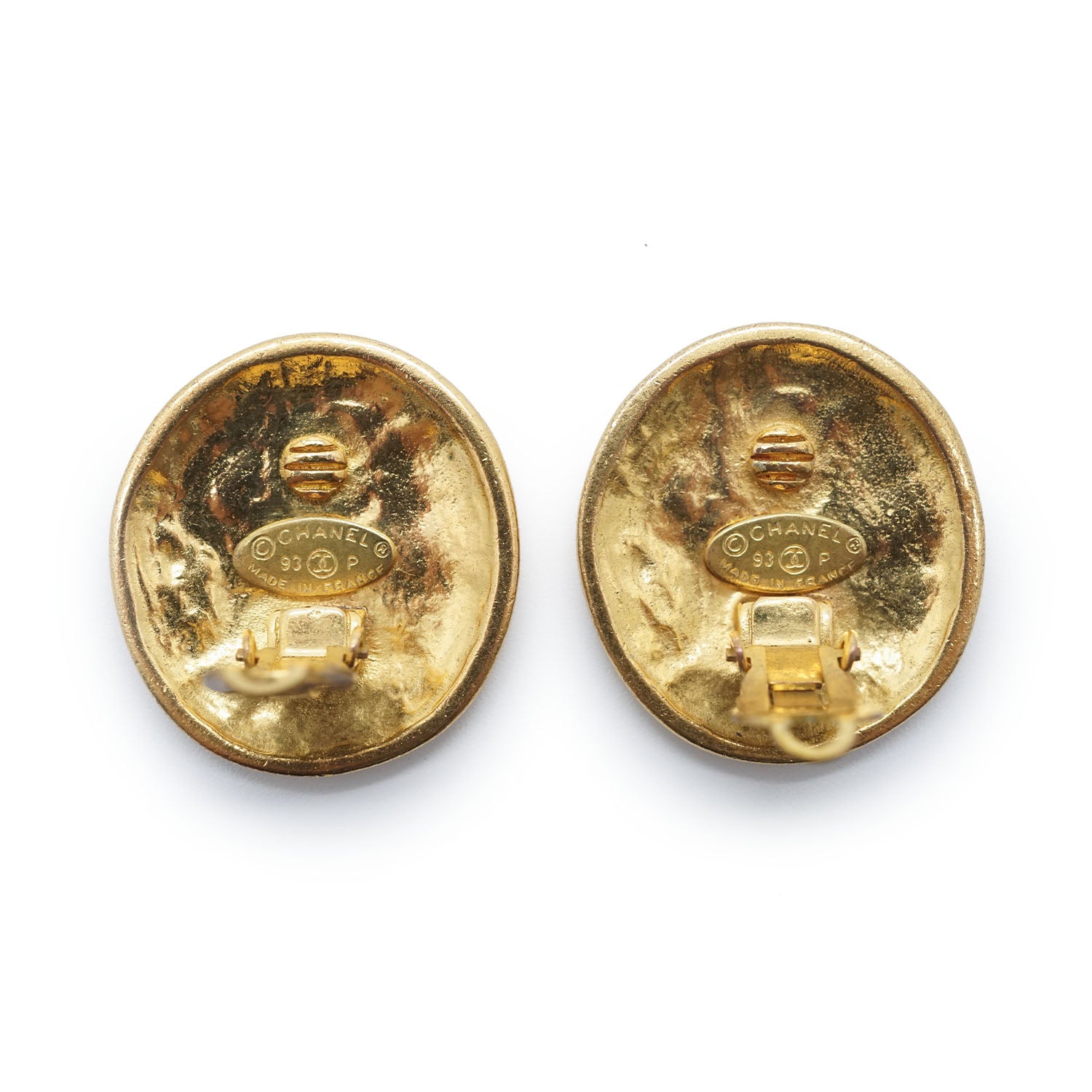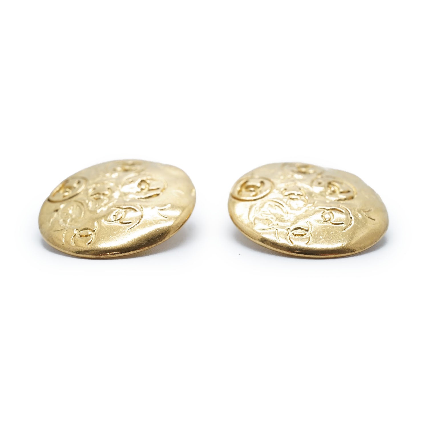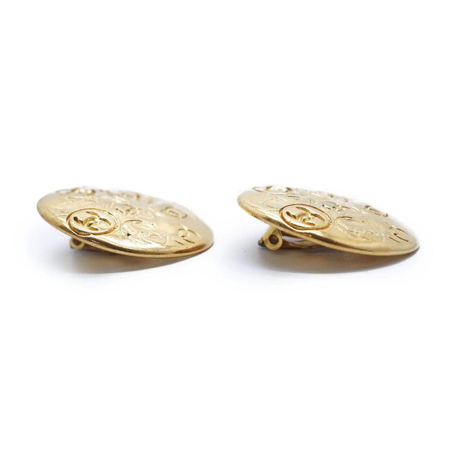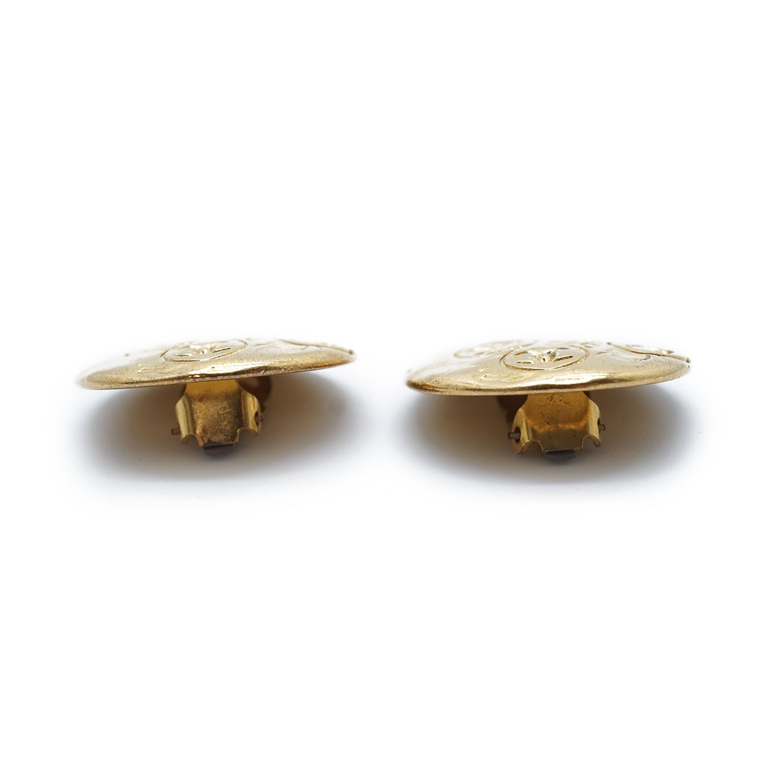 Embossed Multiple CC Clip-On Earrings GP Gold Brass