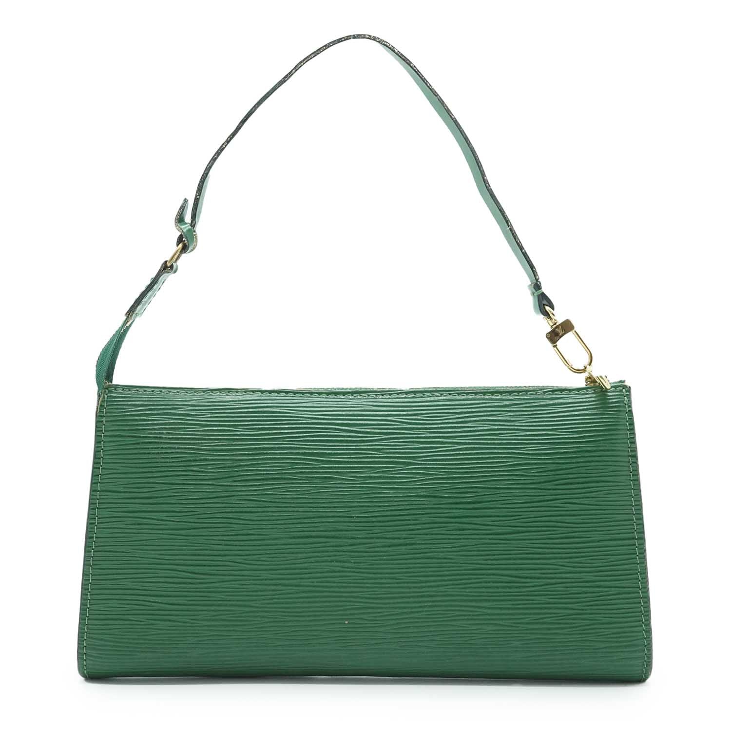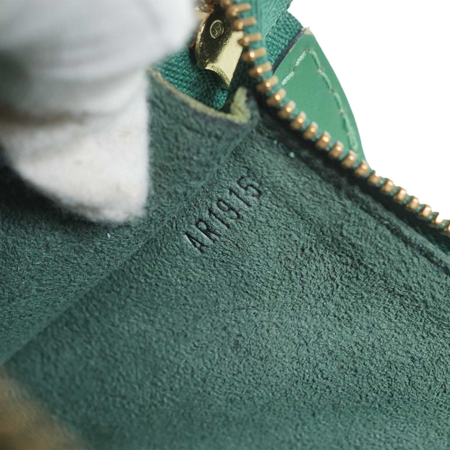 Worn: Visible signs of wear on the outside (leather strap, sides), the bottom of the embossed logo is slightly faded