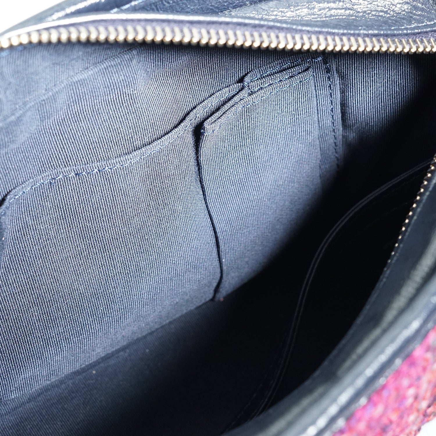Gabrielle Tweed Multicolor Small Chain Hobo Bag Multicolor/Navy/Black Leather, Fabric