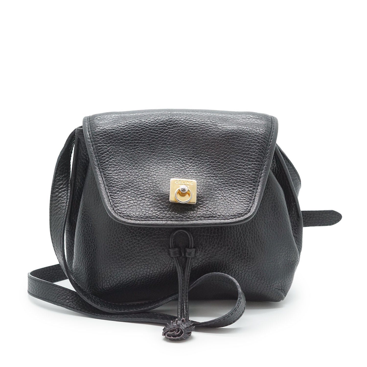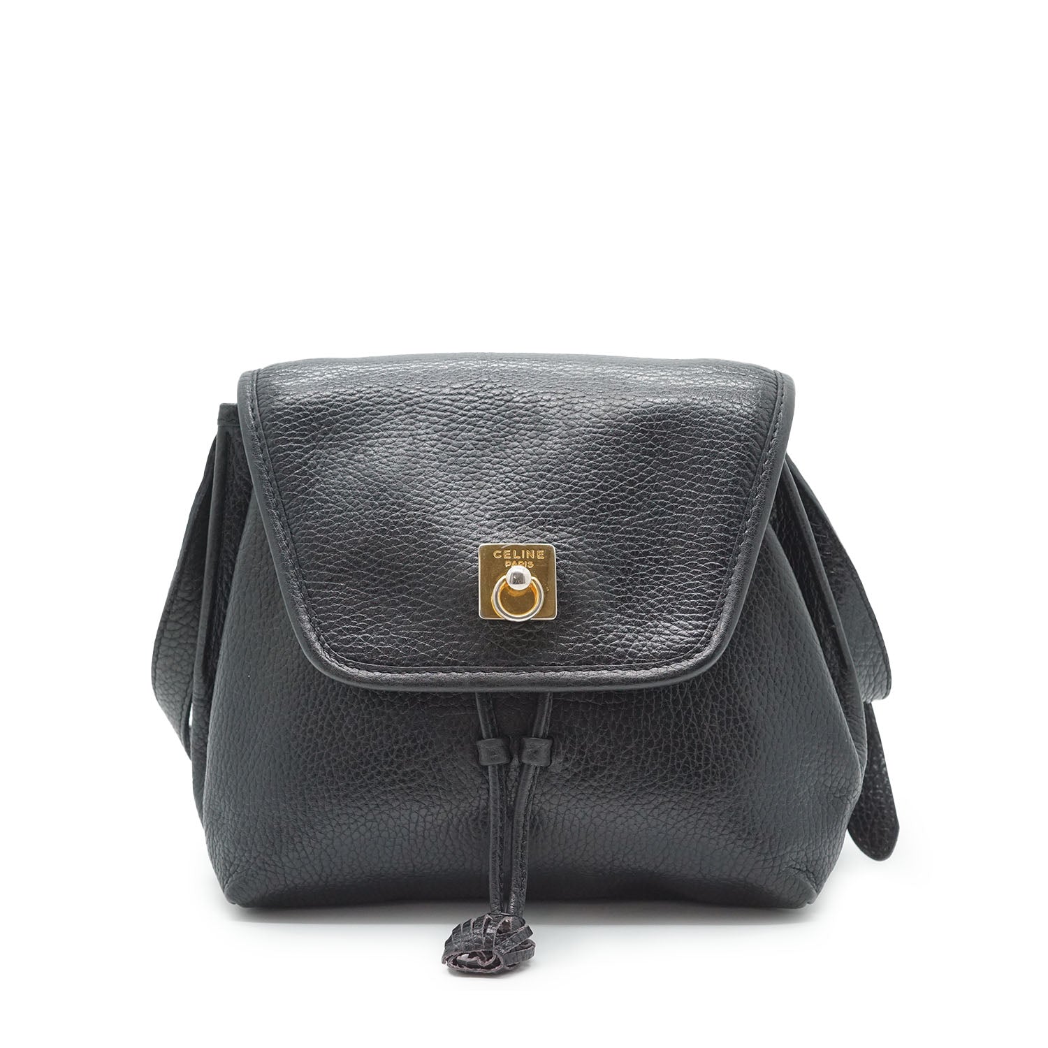 Gancini Mini Tassel Shoulder Bag Black Leather