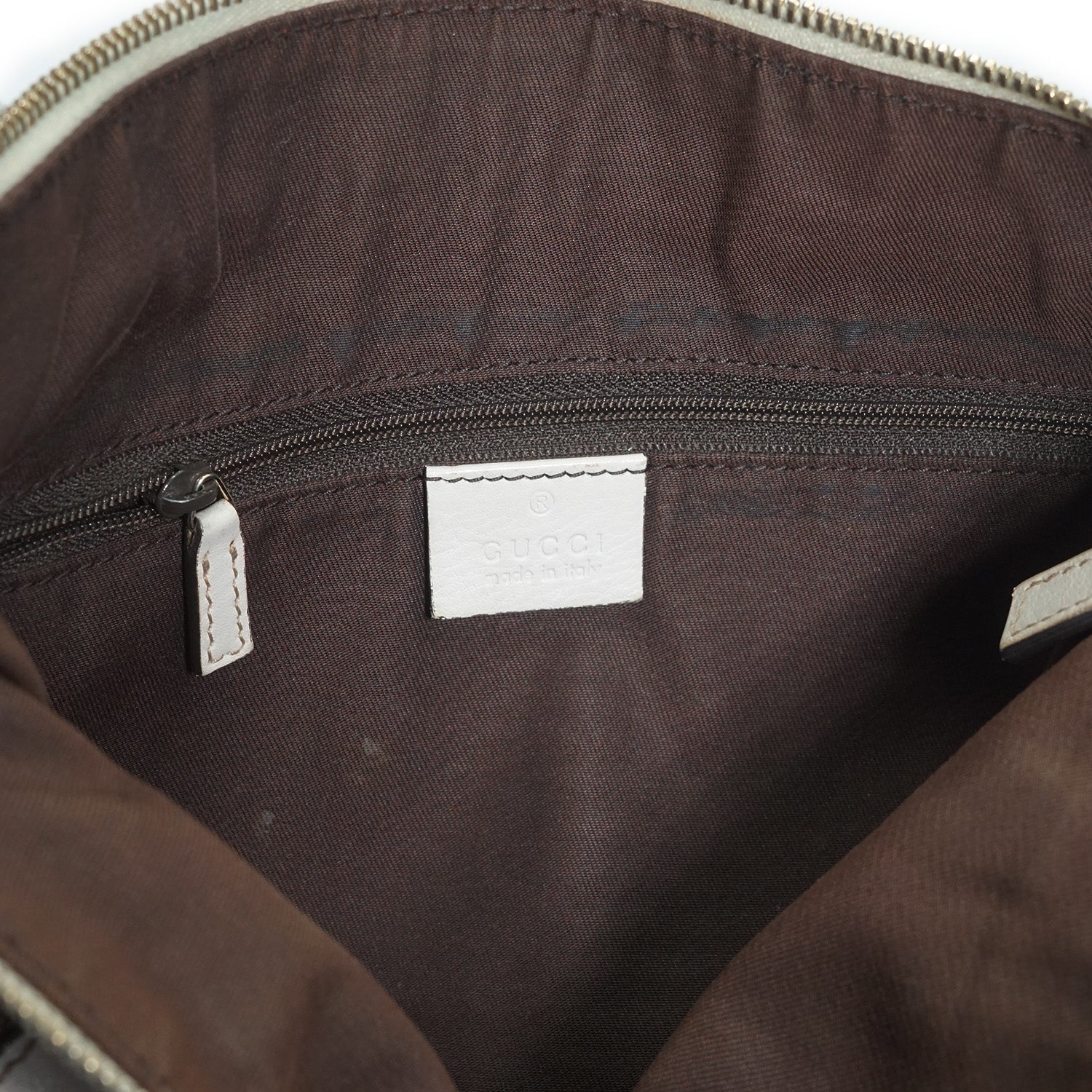 Stain: Minor stains on the leather parts and on the inside fabric