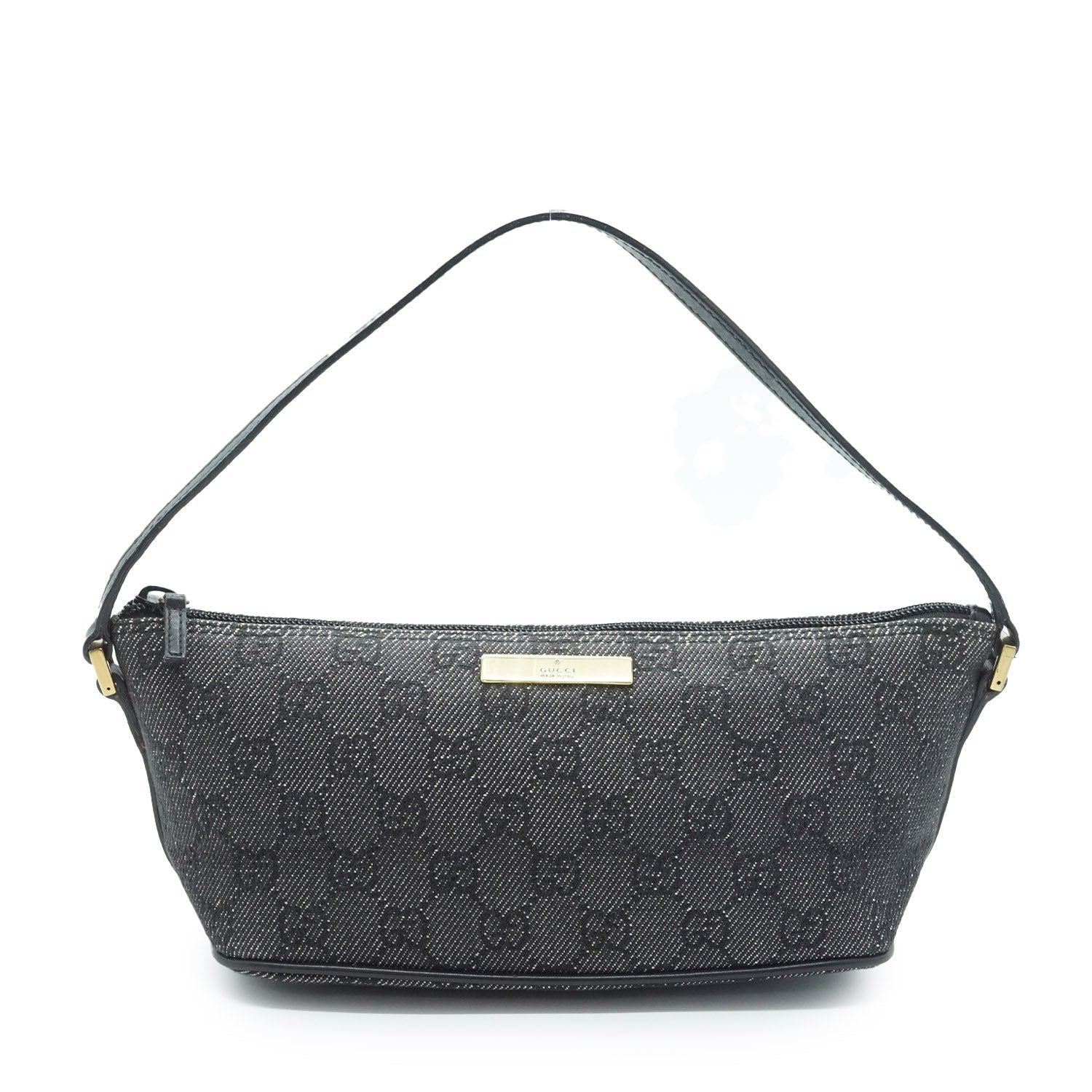 GG Canvas Boat Pochette Grey Canvas, Leather