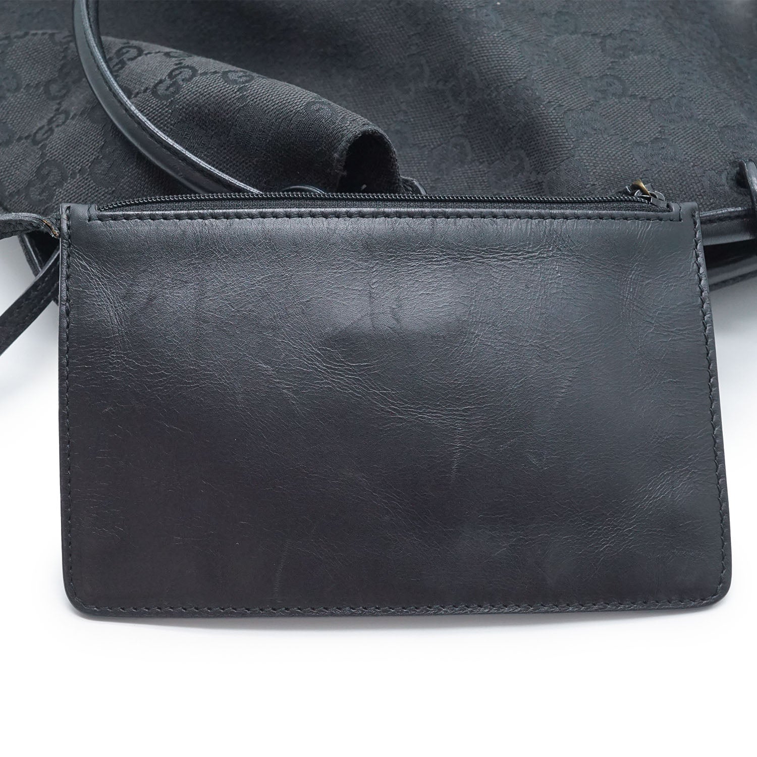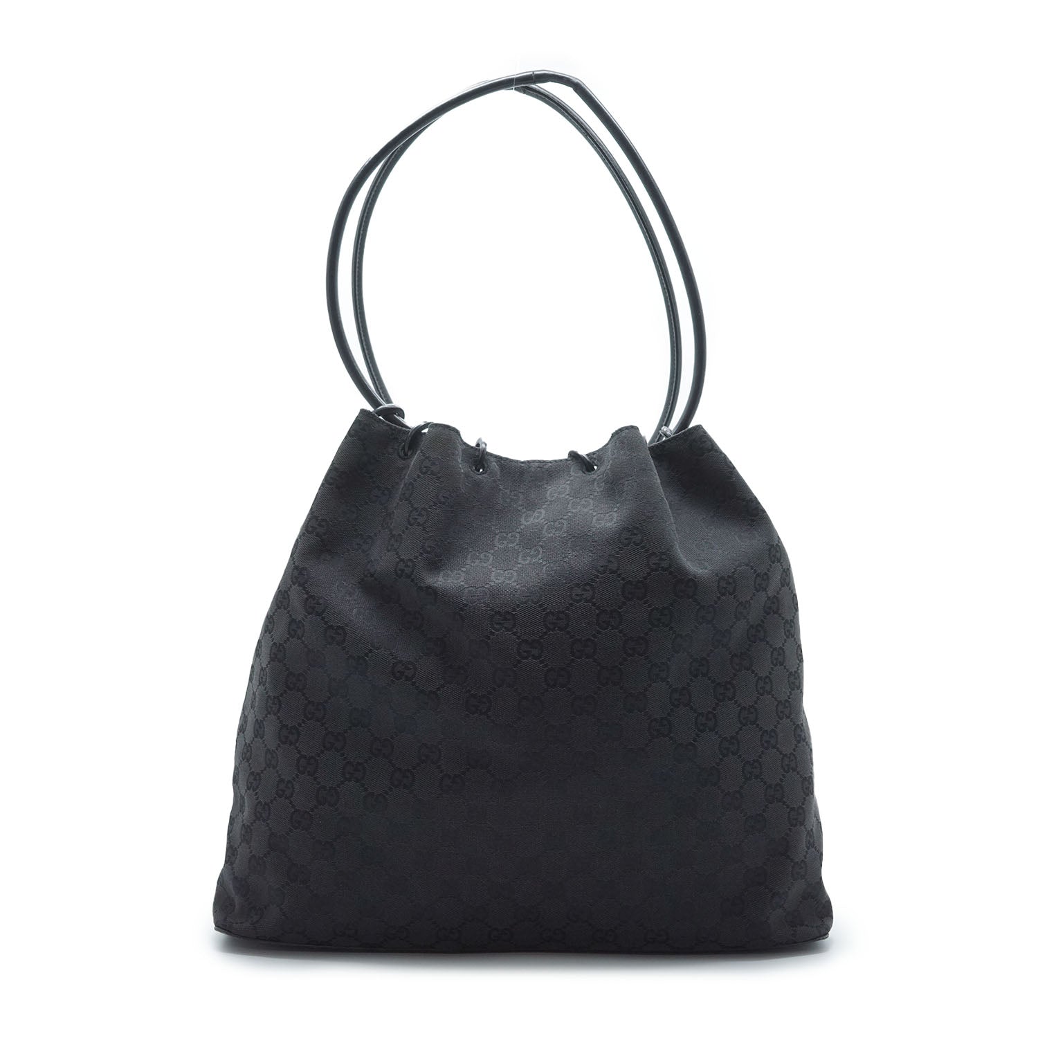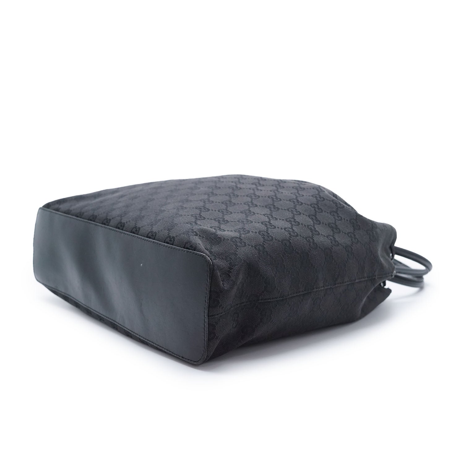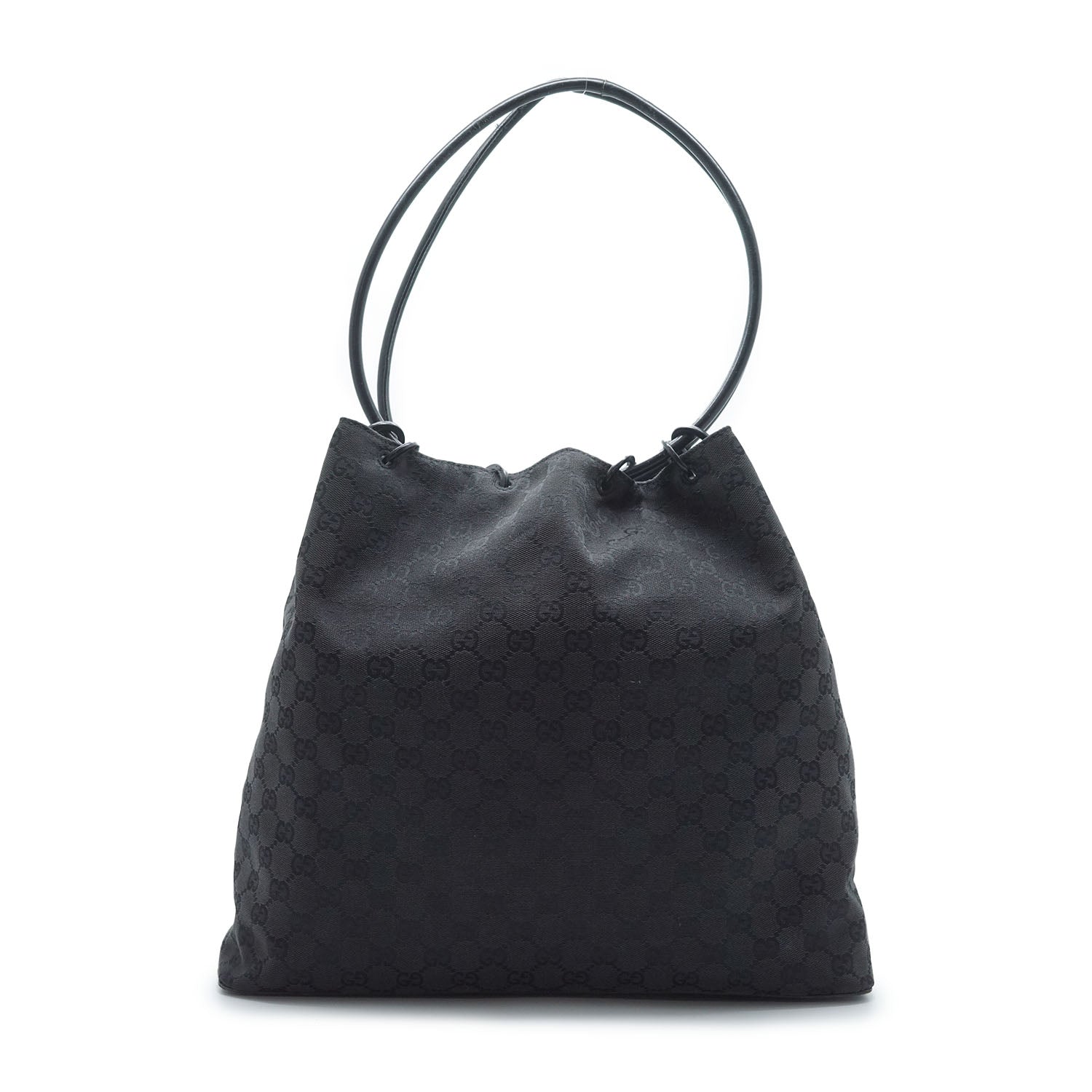 GG Canvas Drawstring Shoulder Tote with Pouch Black Canvas, Leather
