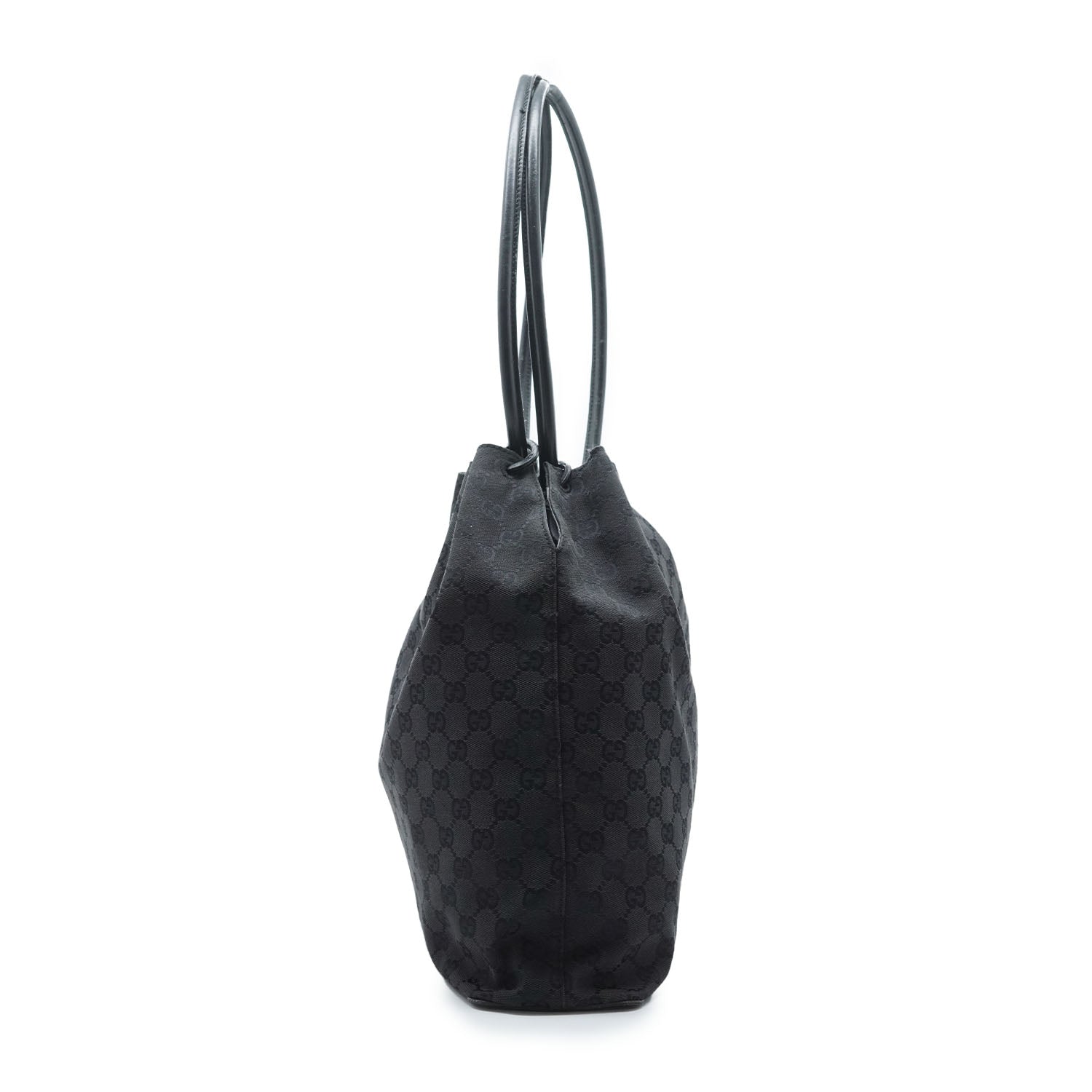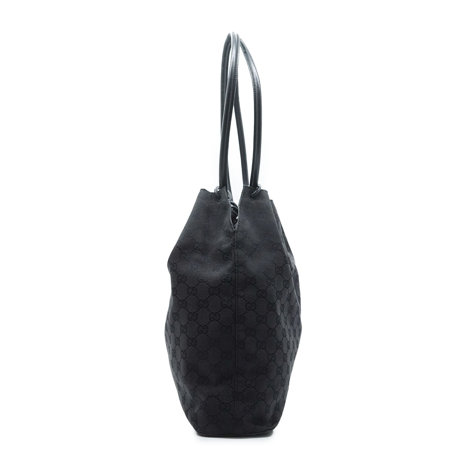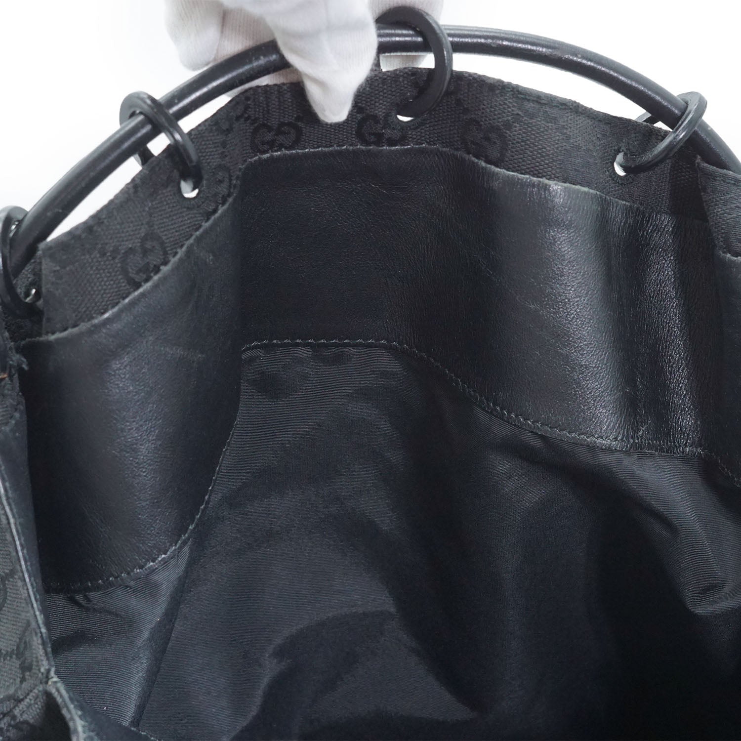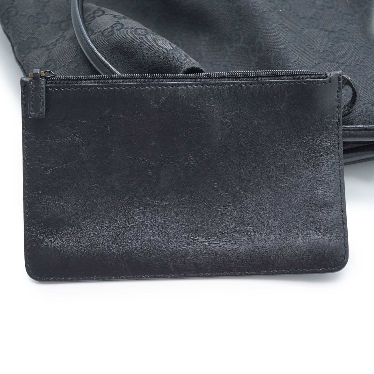 GG Canvas Drawstring Shoulder Tote with Pouch Black Canvas, Leather