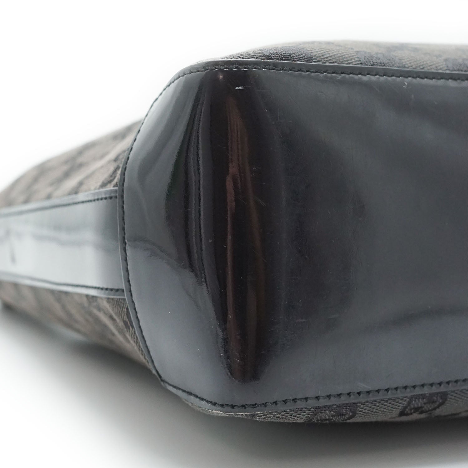 GG Canvas Hobo Bag Gray Canvas, Patent leather, Suede