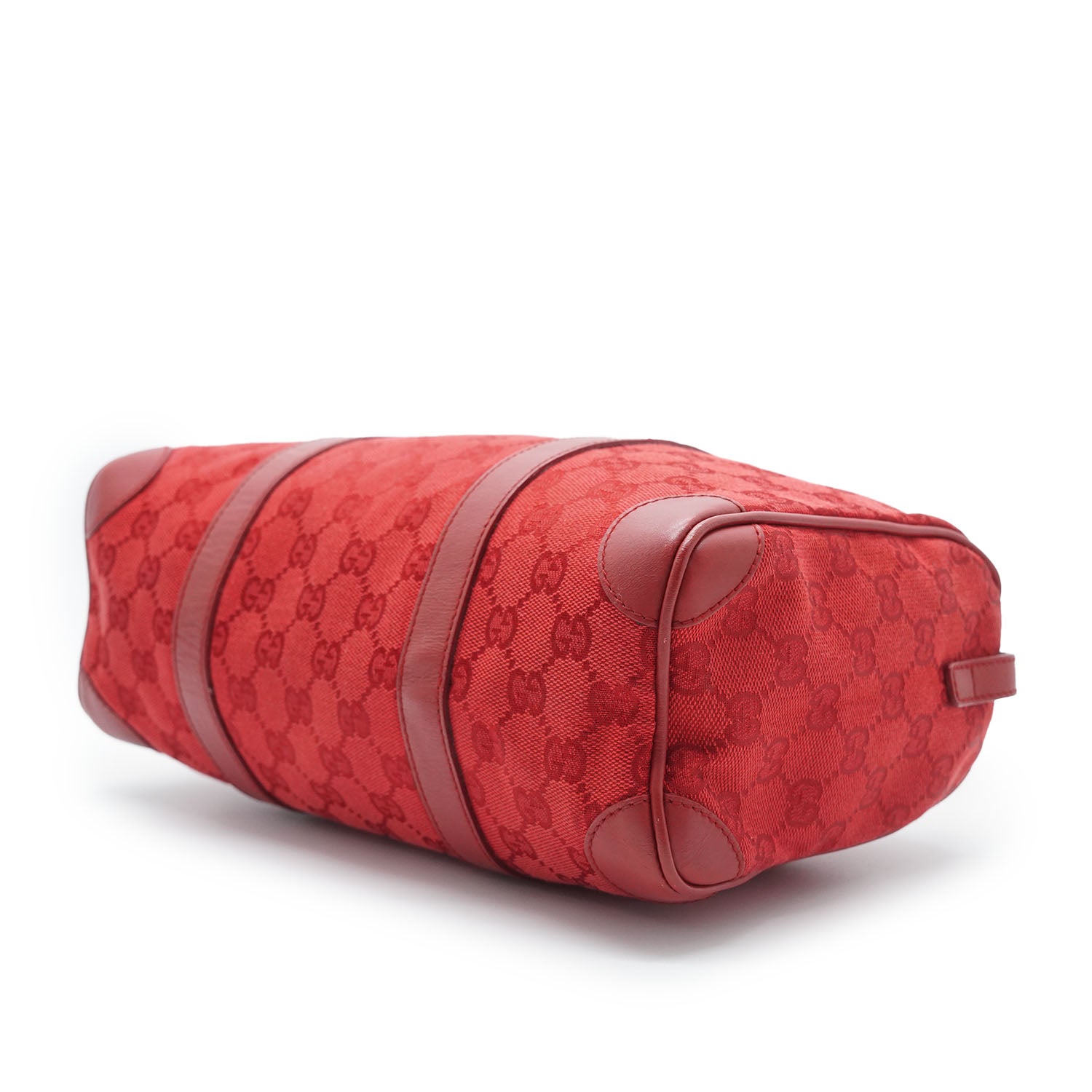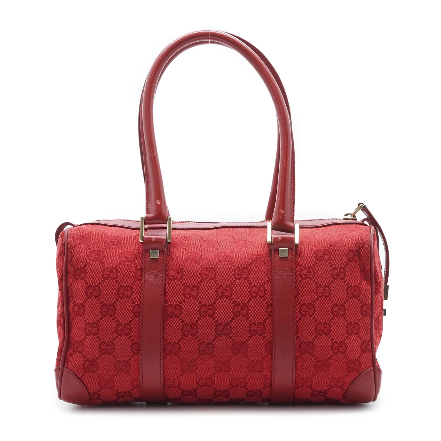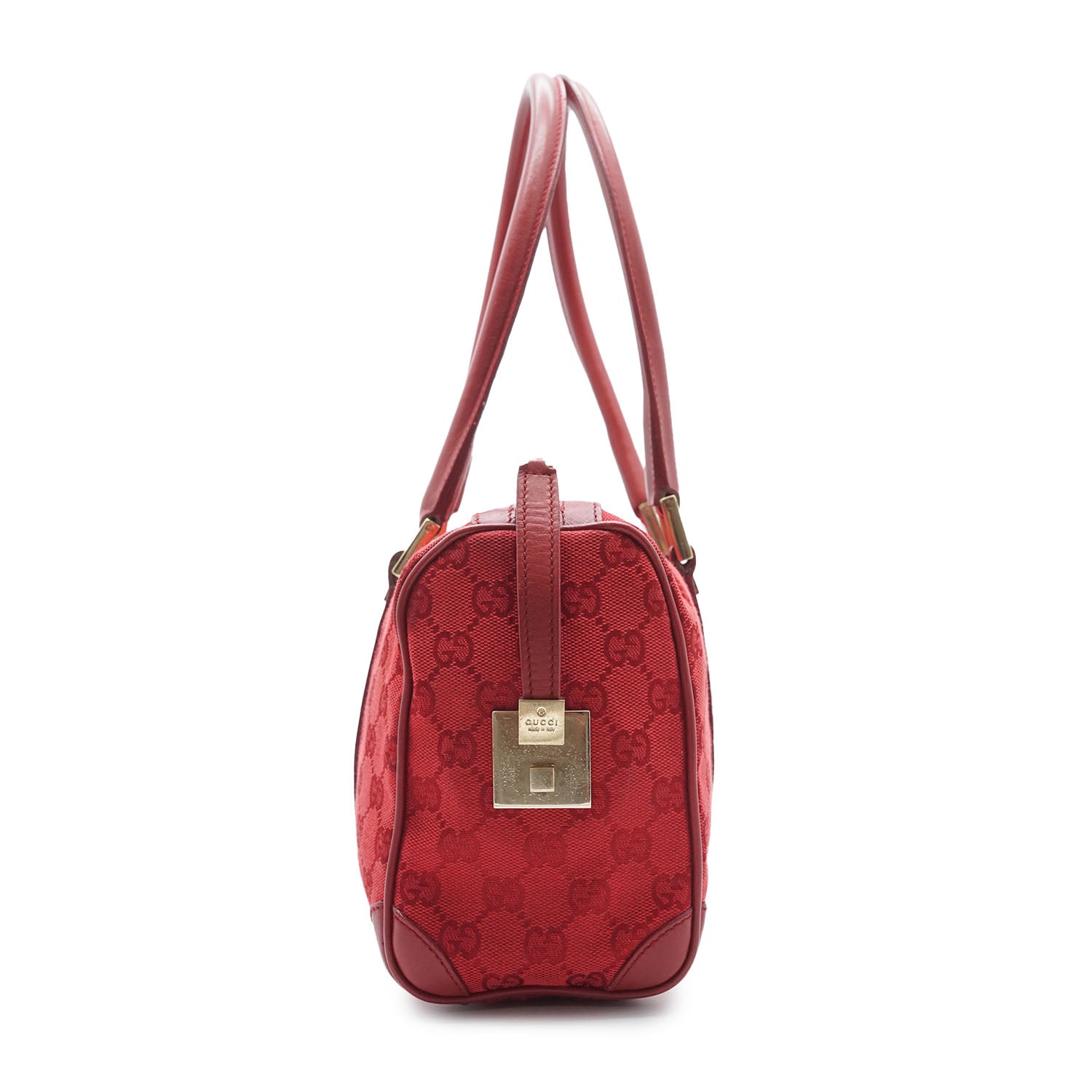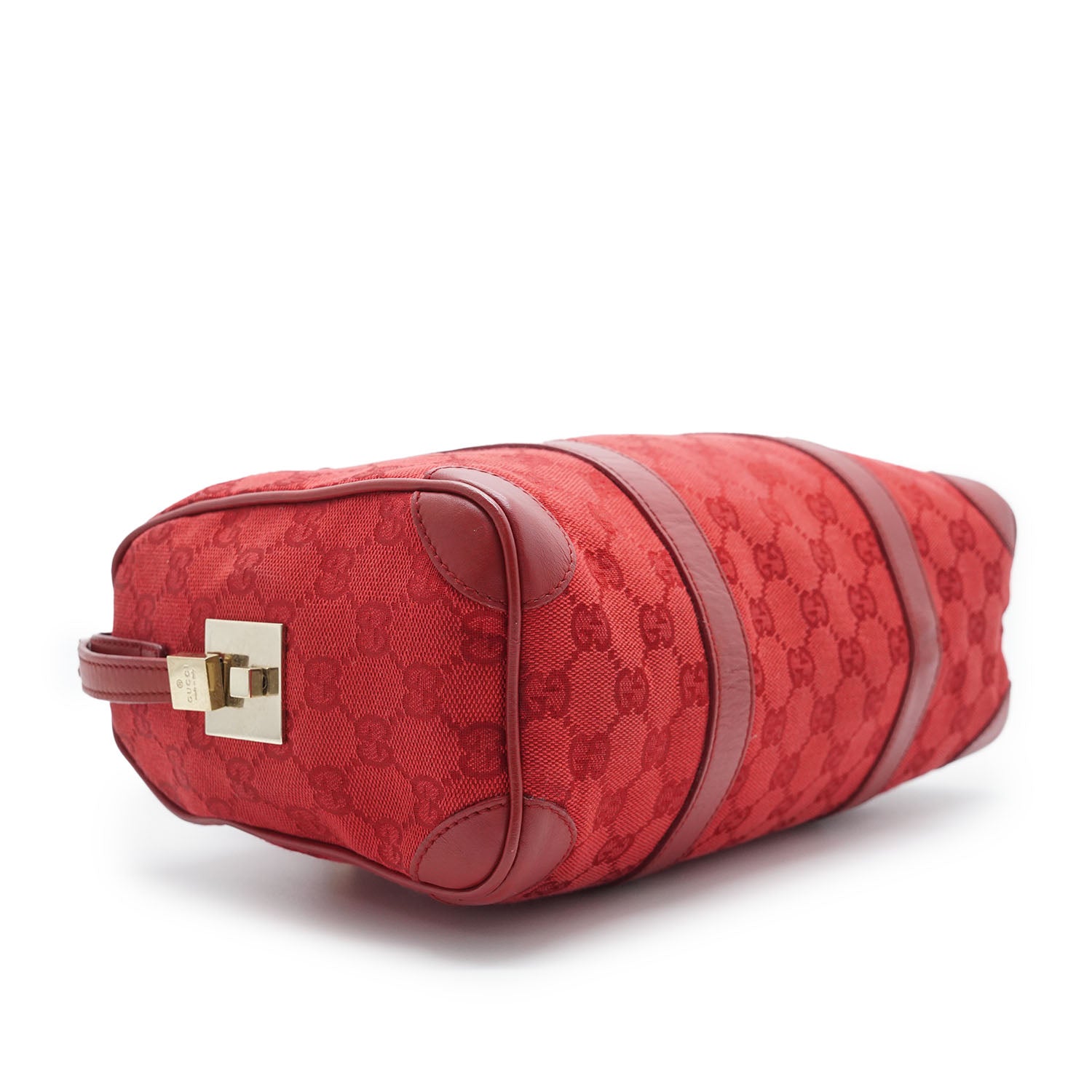 GG Canvas Mini Boston Bag Red Canvas, Leather