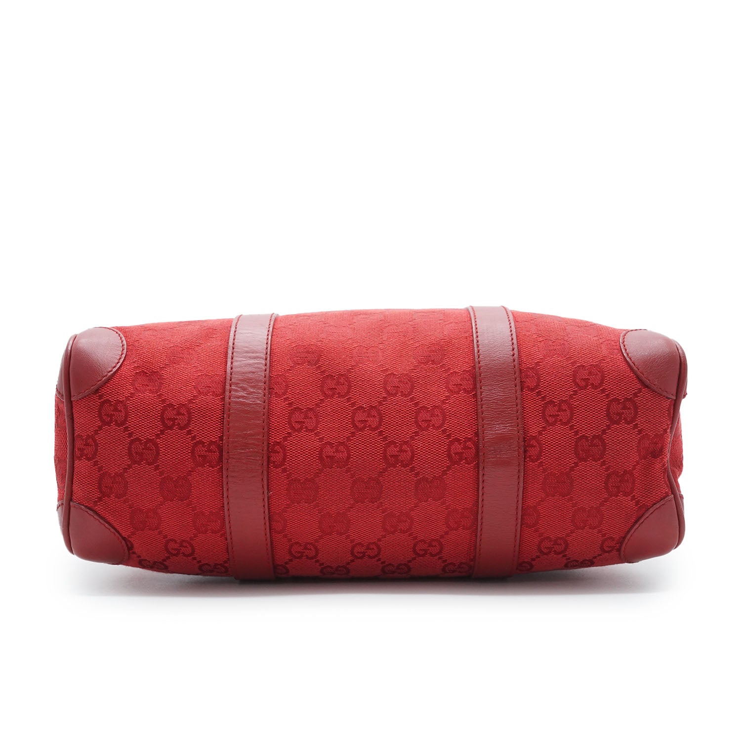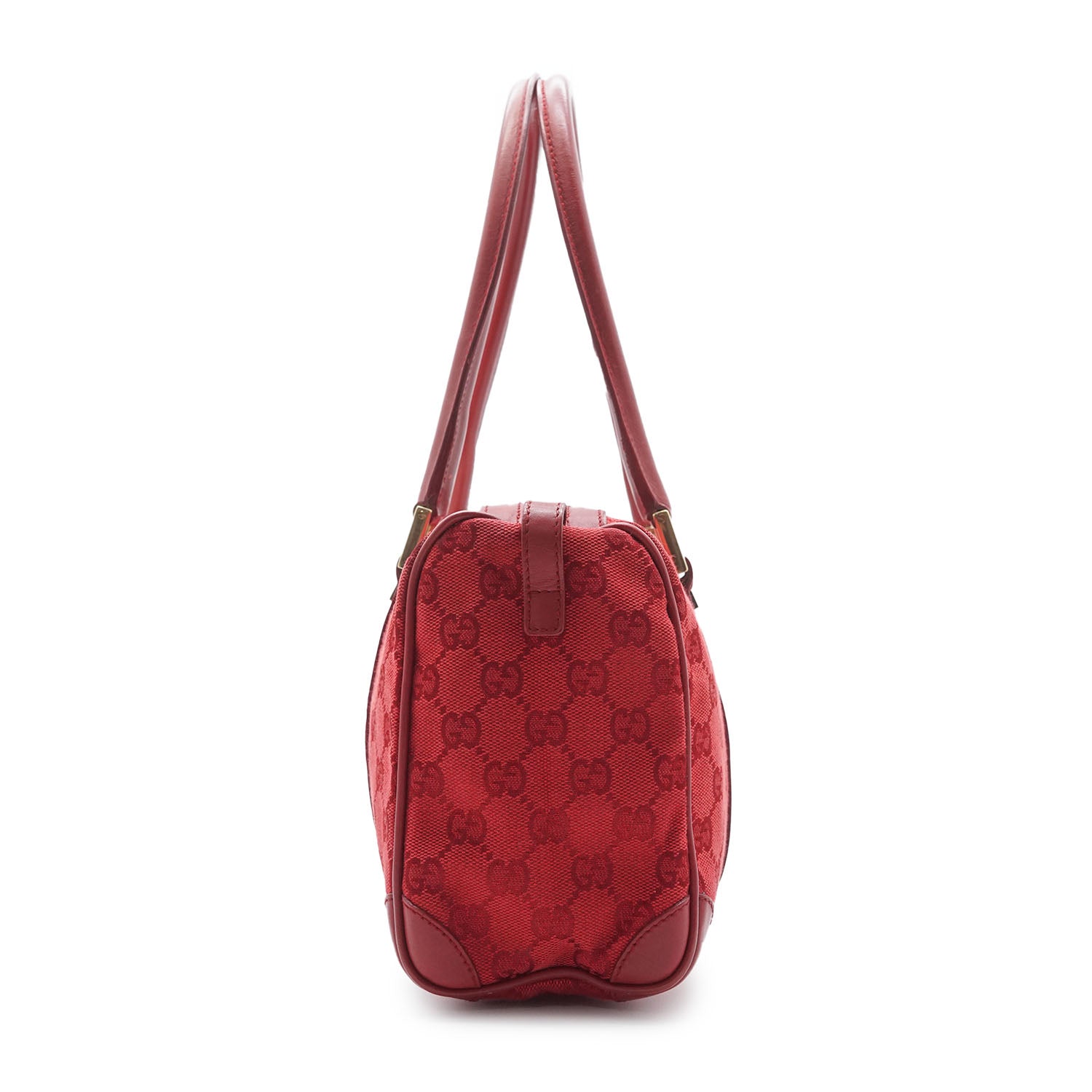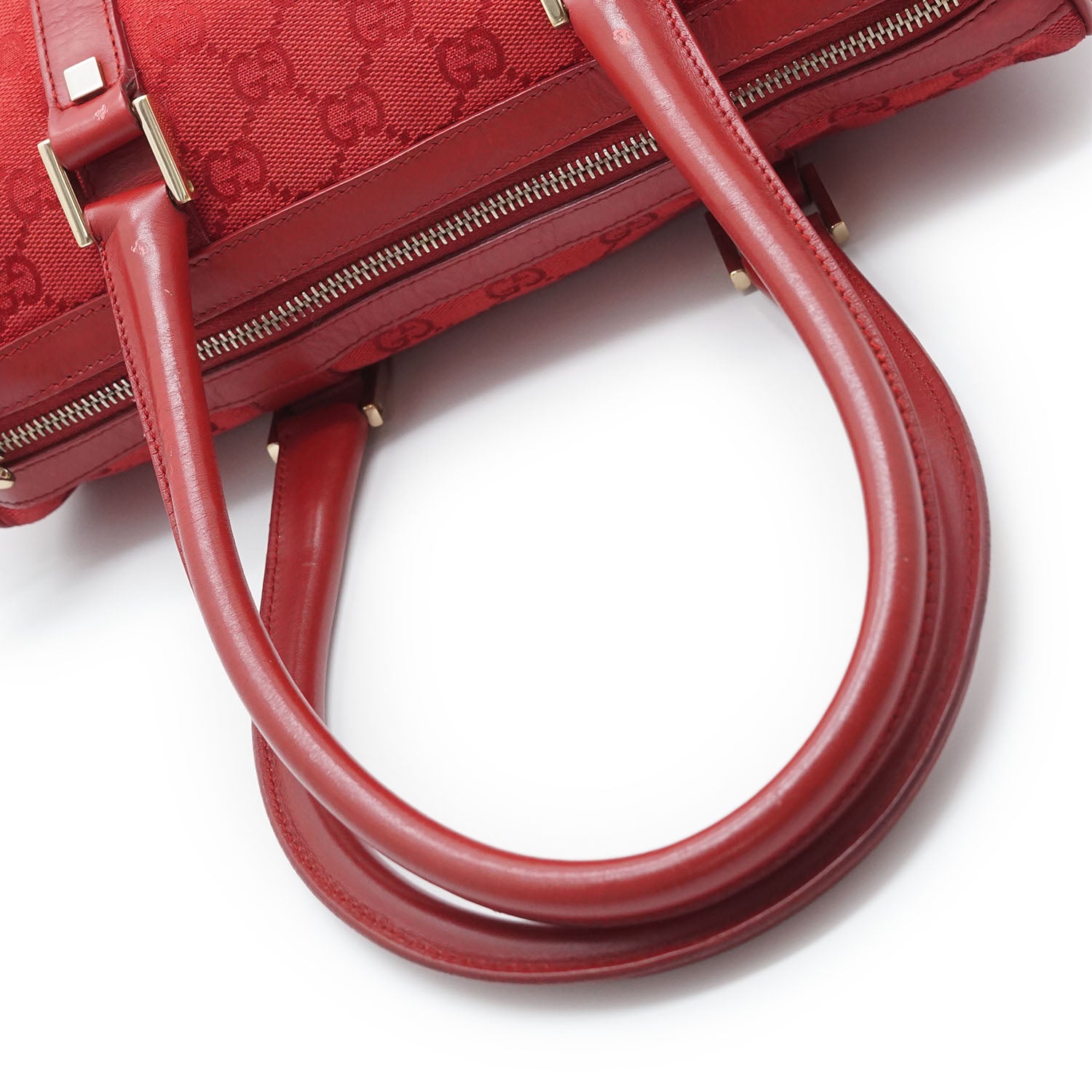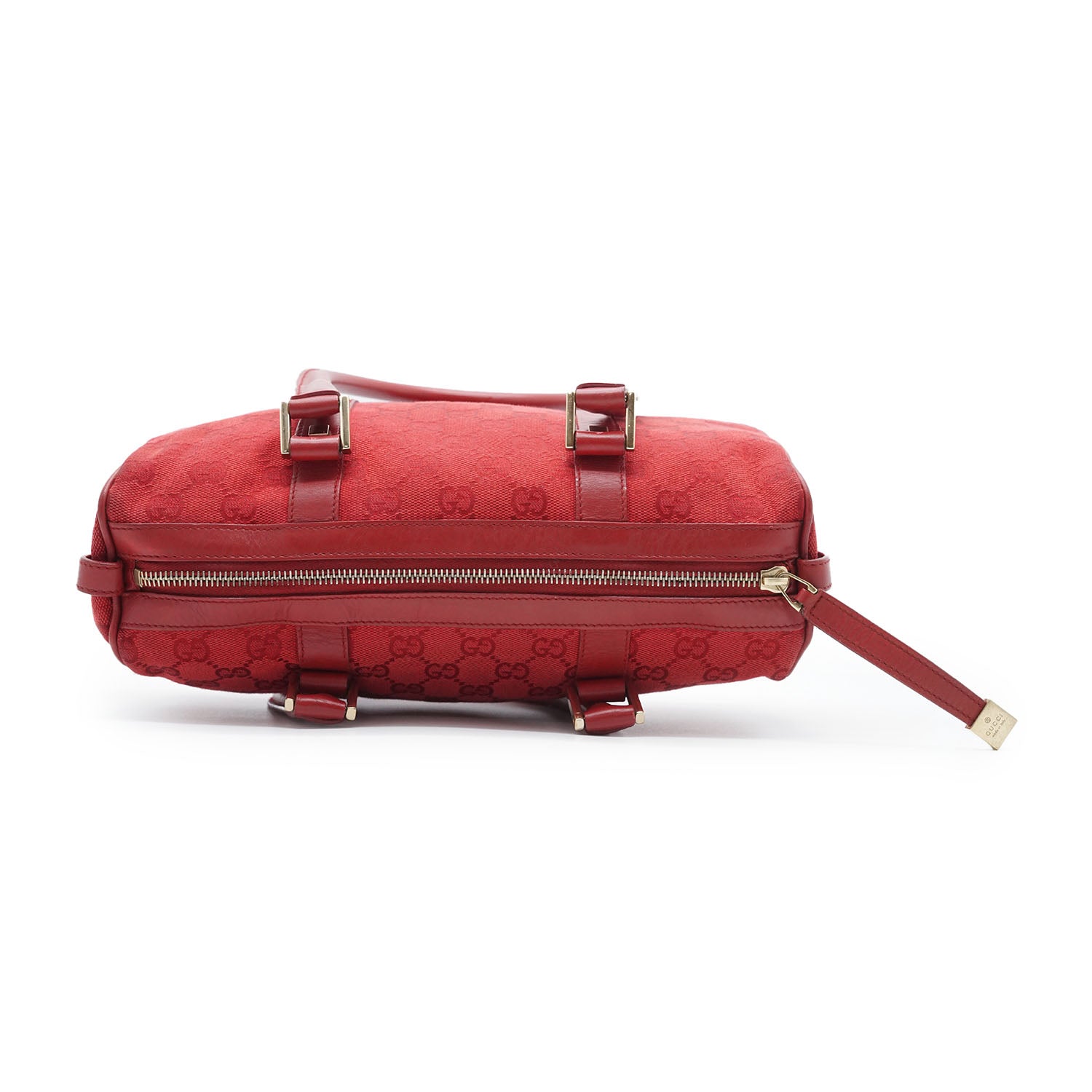 GG Canvas Mini Boston Bag Red Canvas, Leather