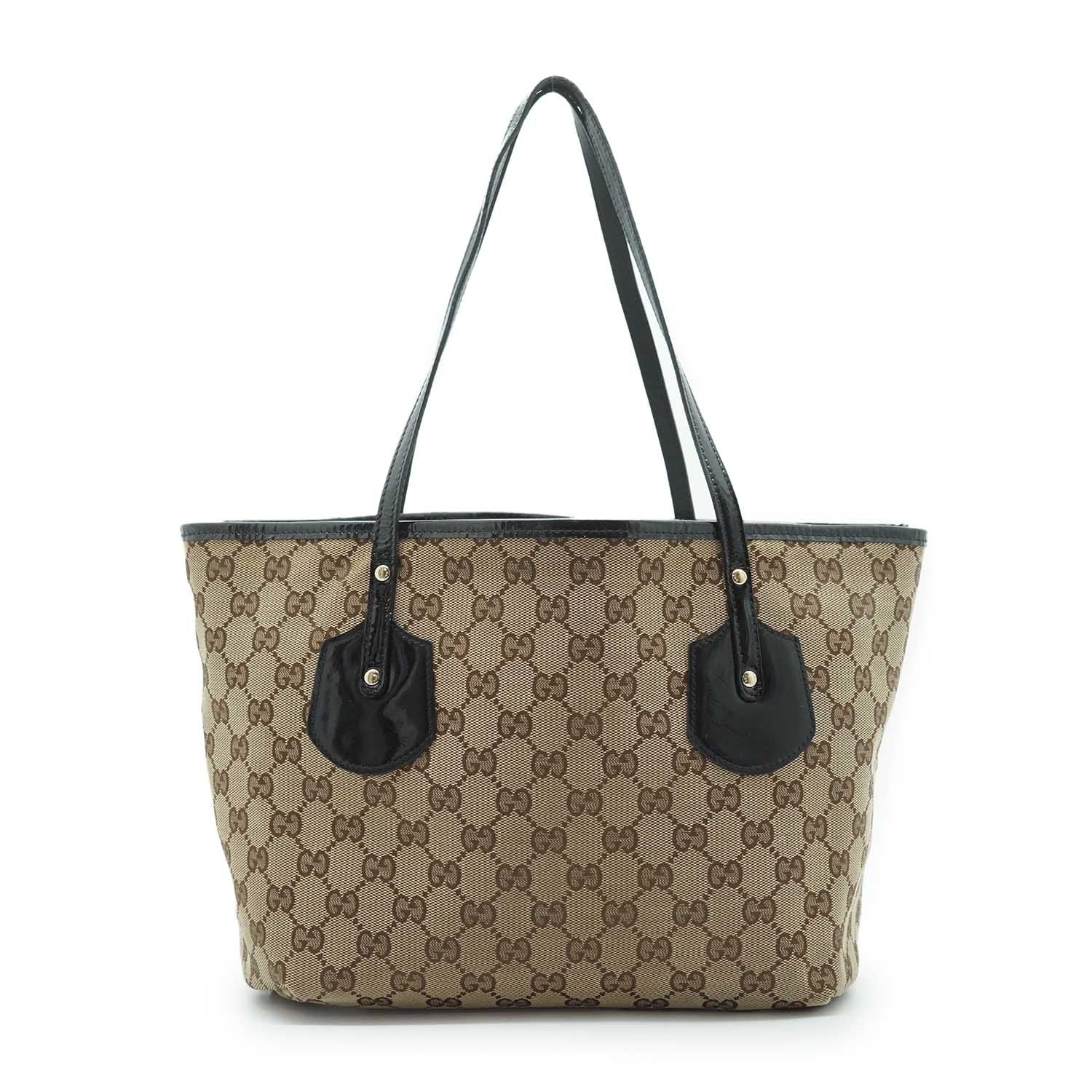 GG Enamel Canvas Charm Tote Brown Canvas, Enamel leather