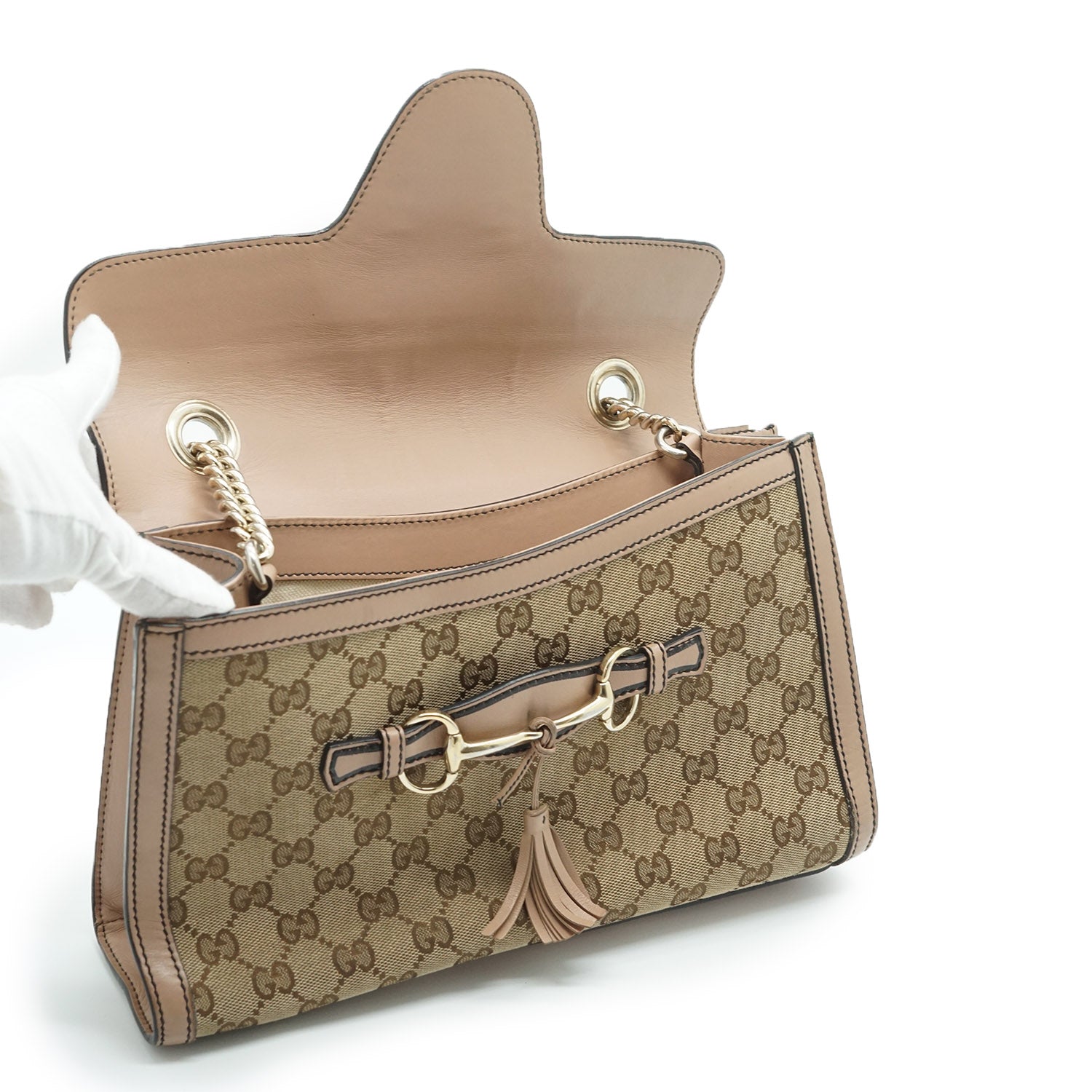 GG Guccissima Emily Chain Shoulder Bag Beige Canvas, Leather