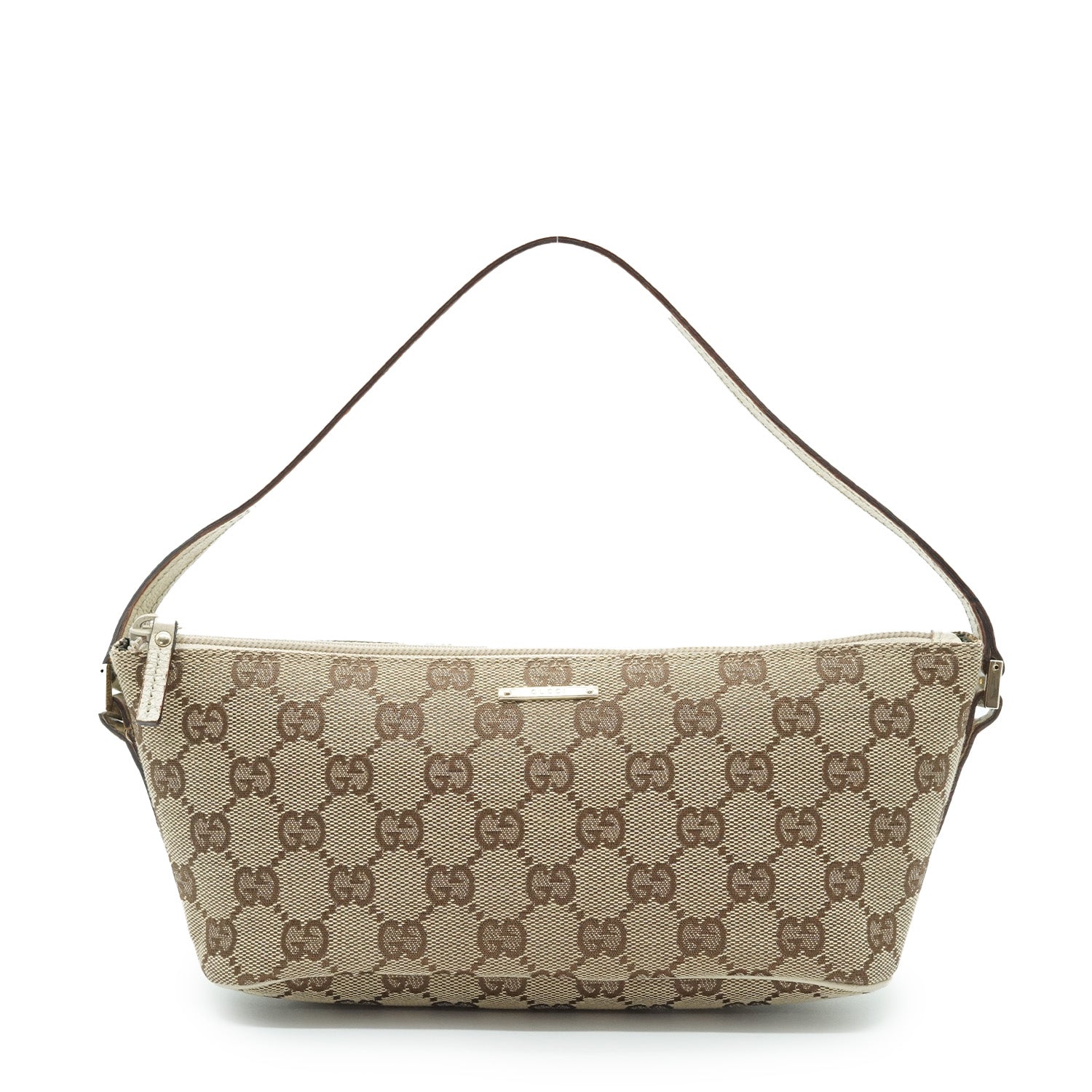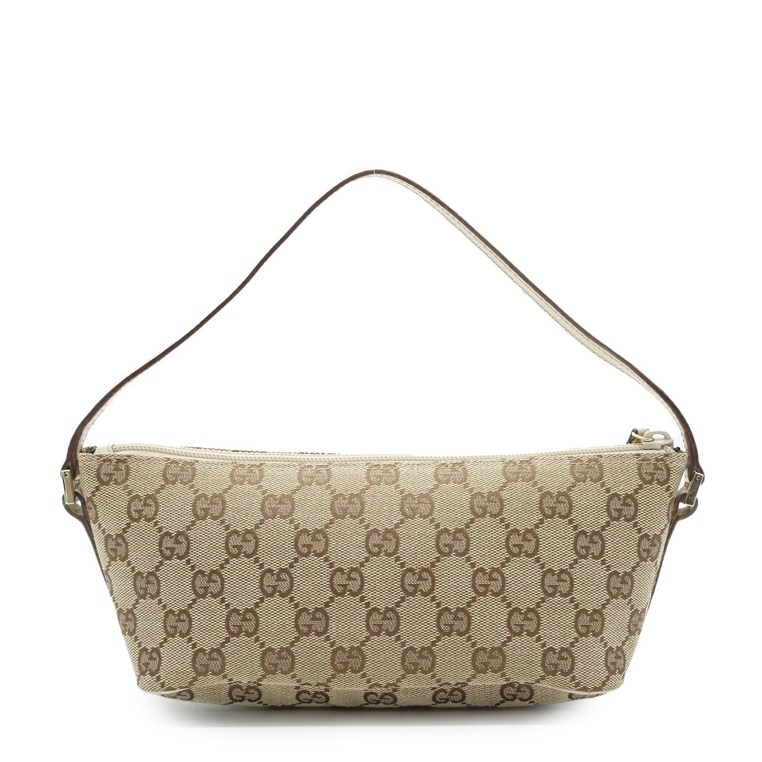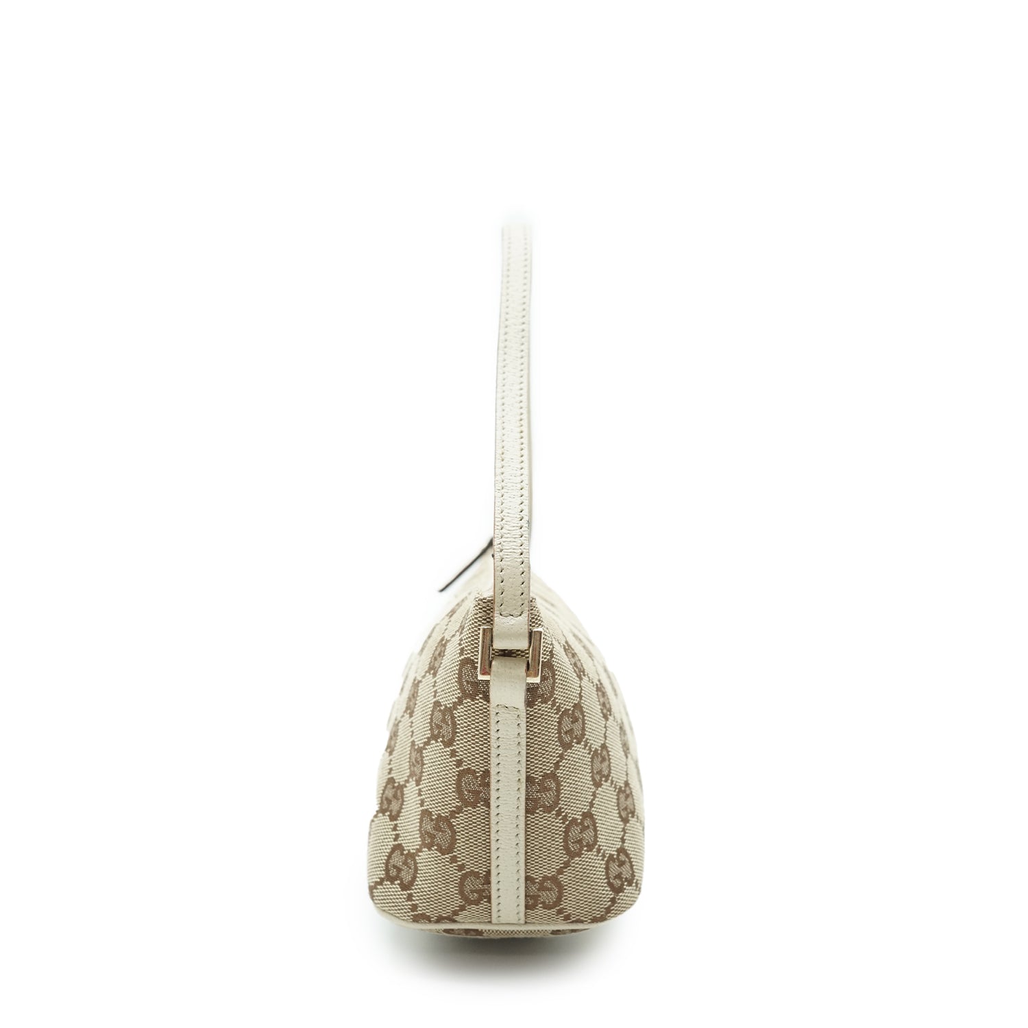 GG Monogram Boat Shoulder Pochette Beige Canvas, Leather