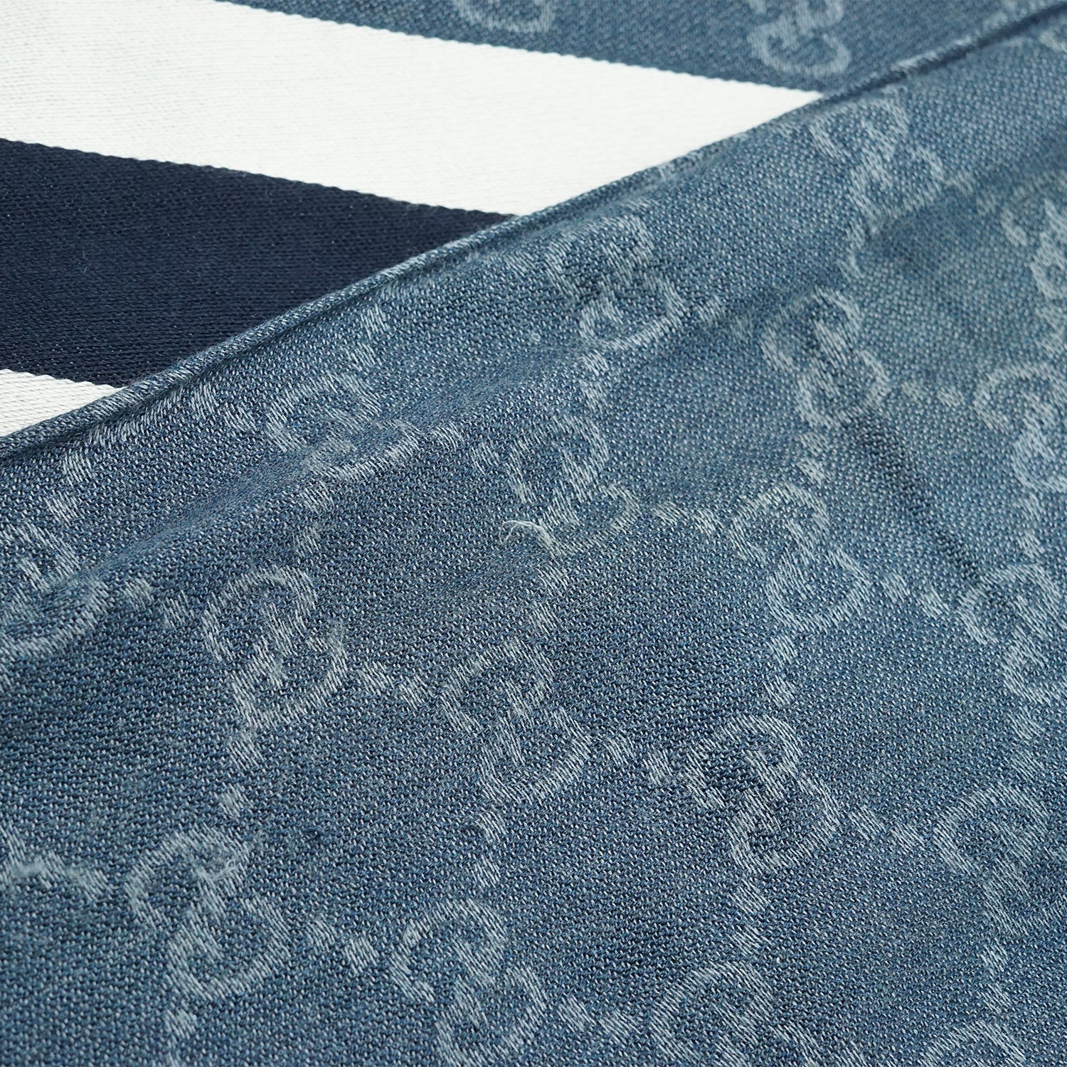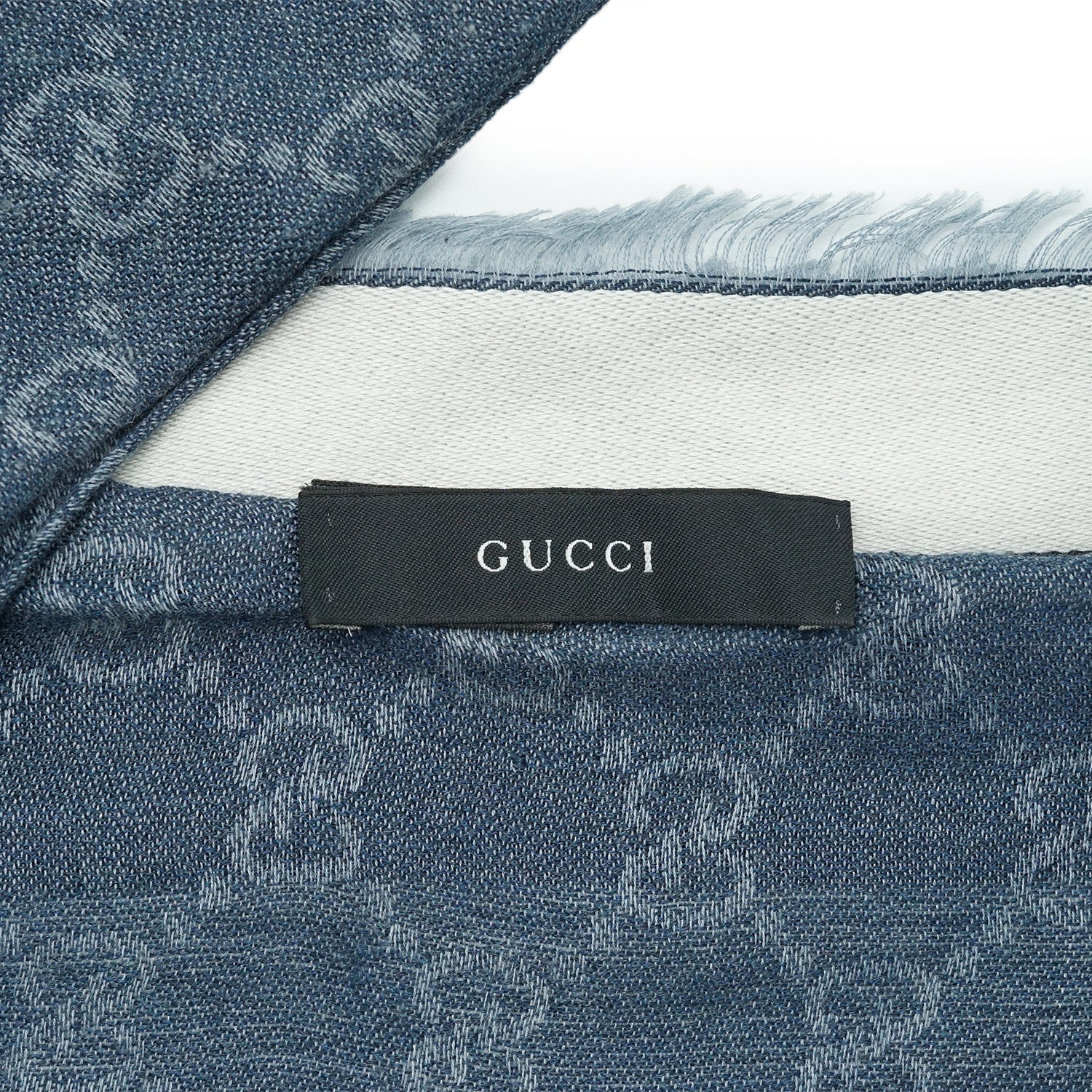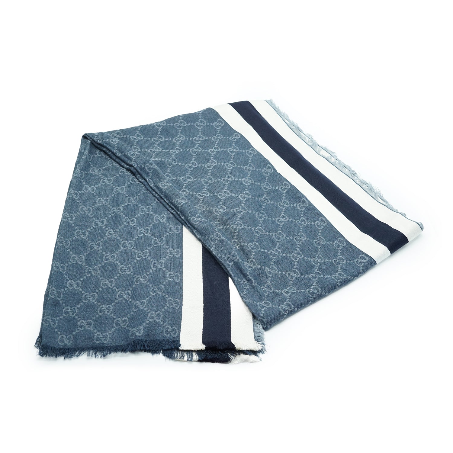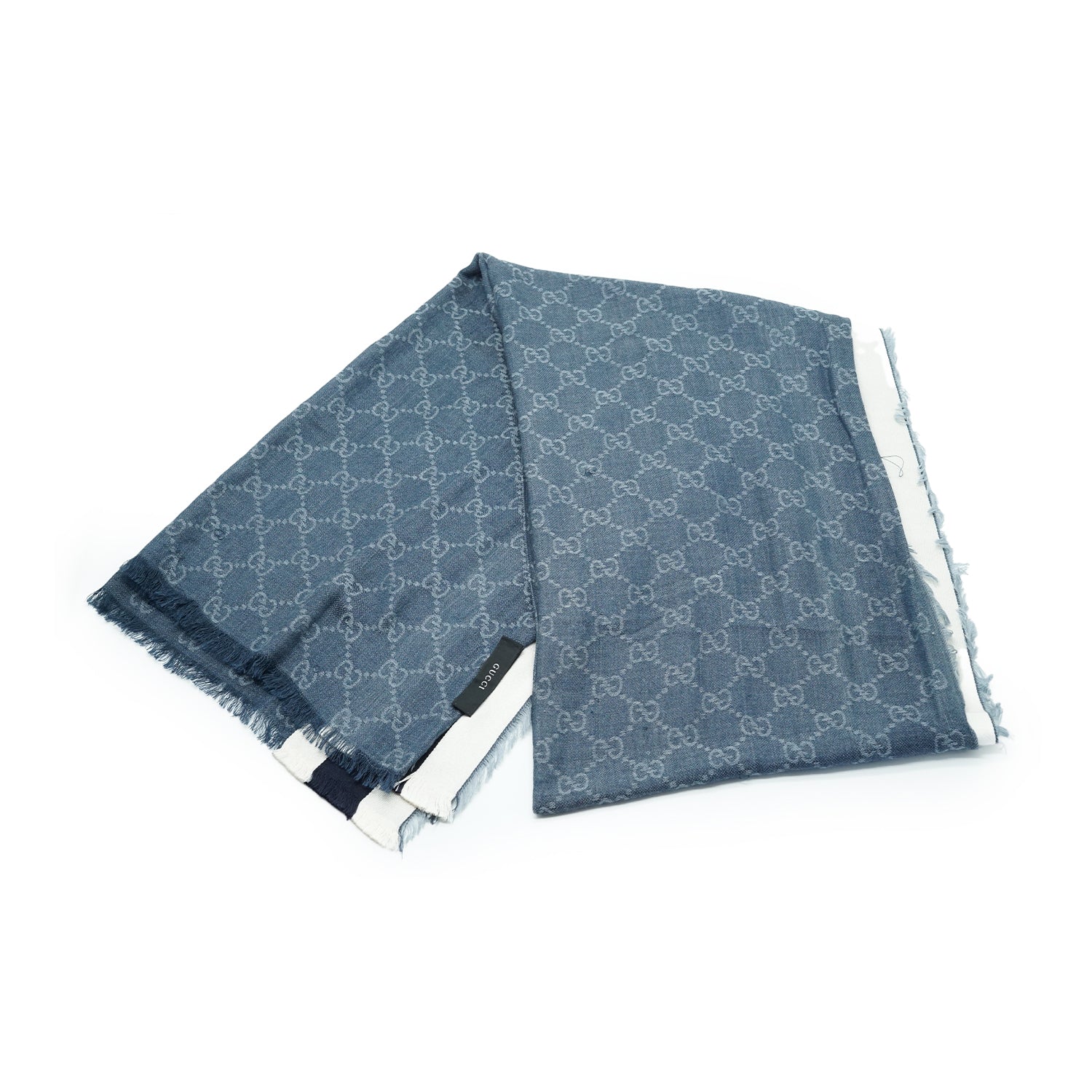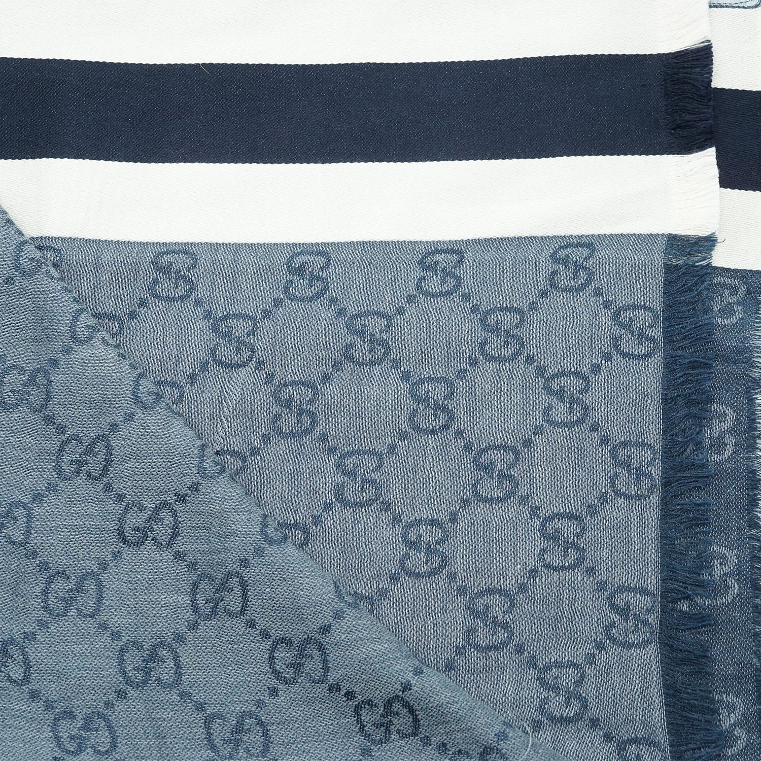 GG Silk Cotton Fringed Stole Blue Silk, Cotton