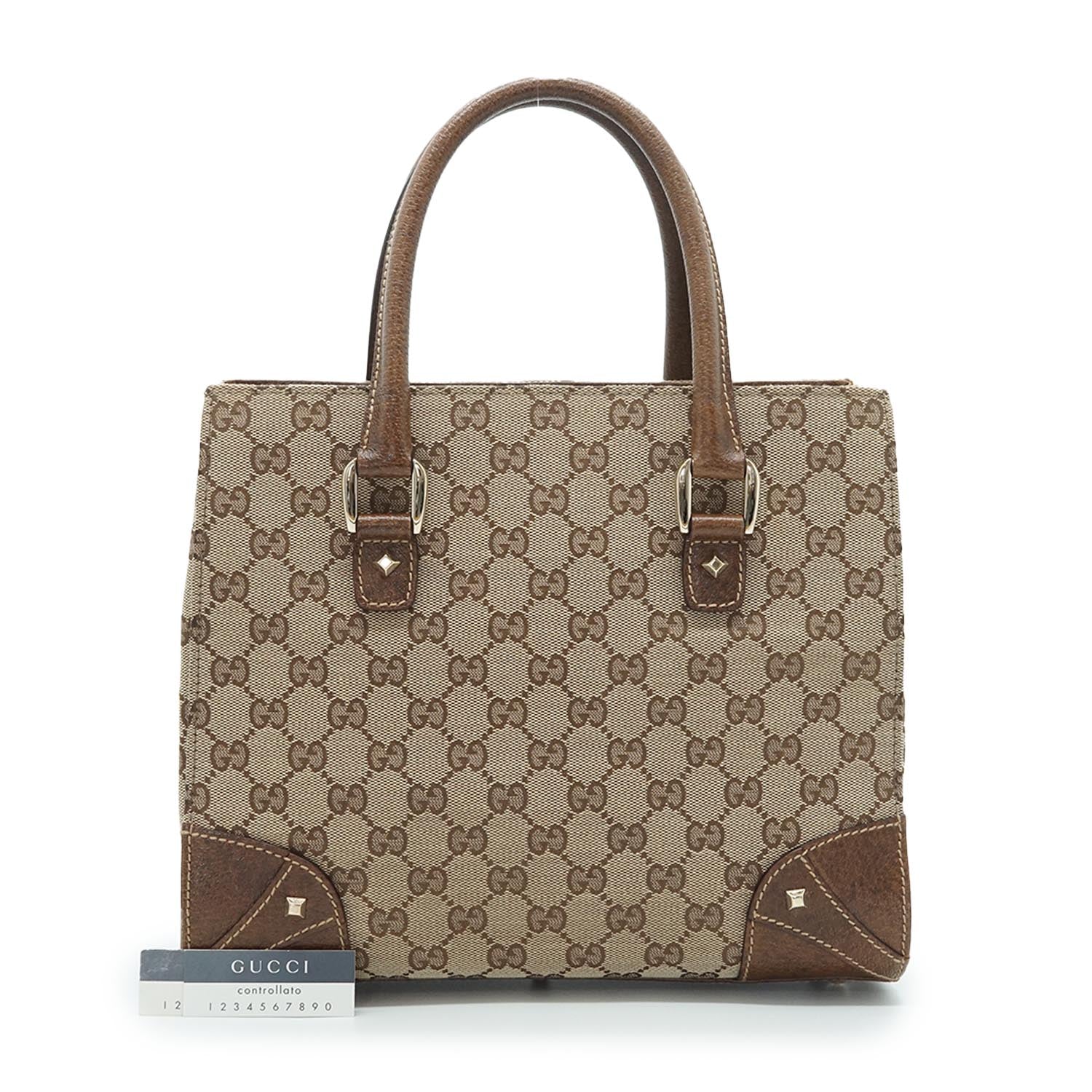 GG Square Canvas and Leather Handbag Brown Canvas, Leather