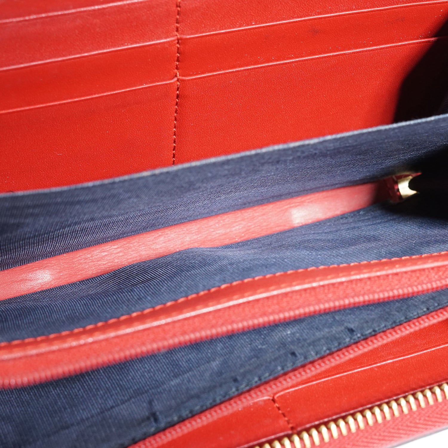 Discoloration: Slight hardware tarnish, some discoloration on the leather parts (outside/inside)