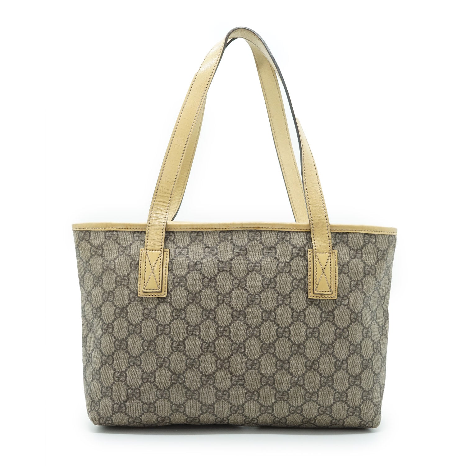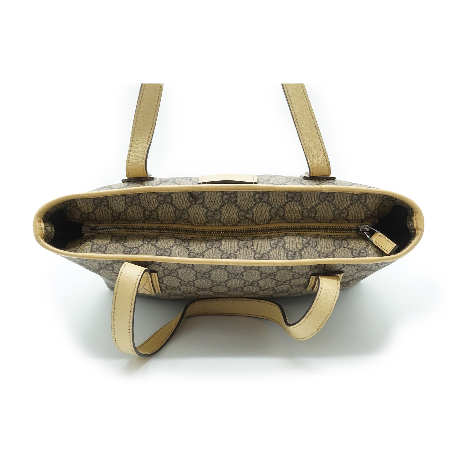 GG Supreme Coated Canvas Tote Beige Canvas, Leather