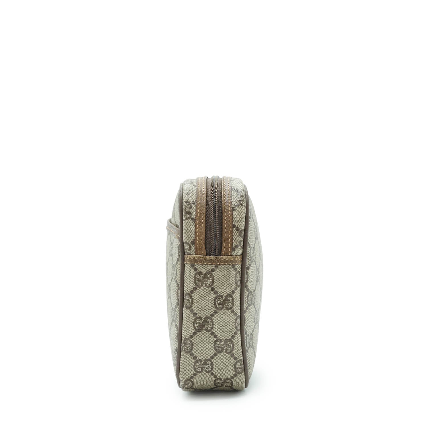 GG Supreme Coated Canvas Vintage Wristlet Pouch Brown Canvas, Leather