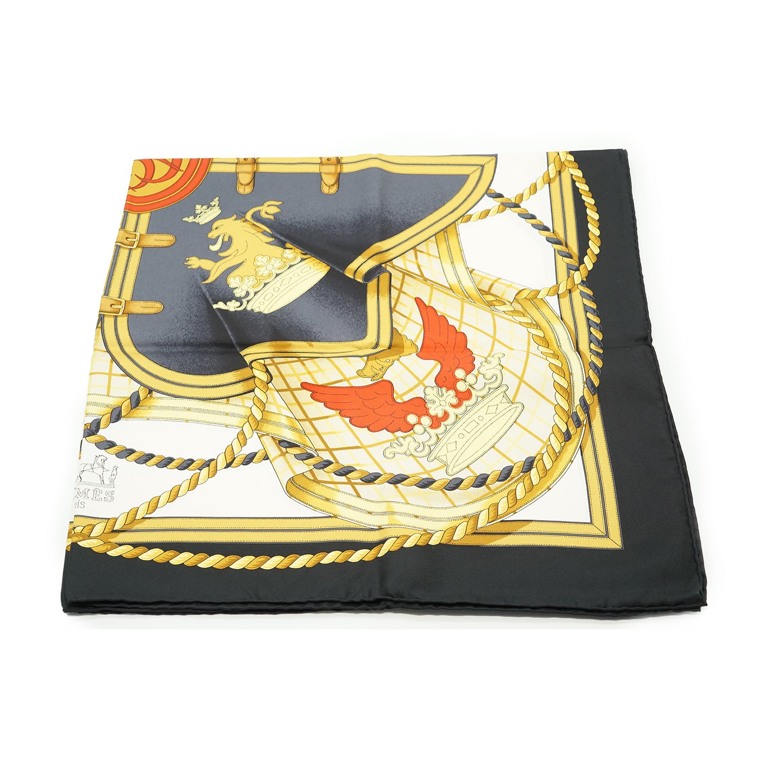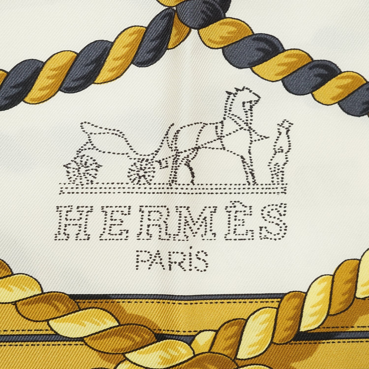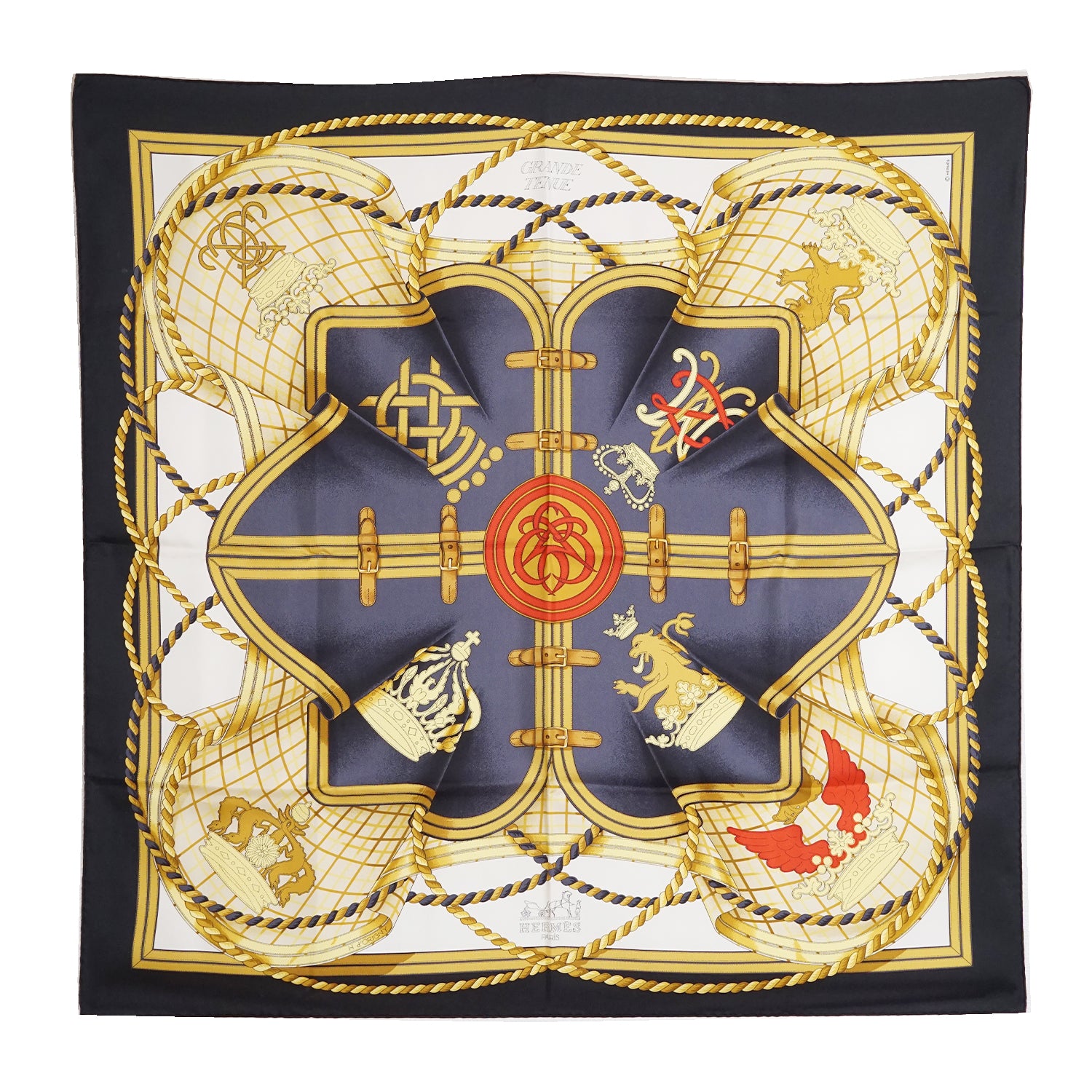 Grande Tenue Silk Carre 90 Navy/Yellow/White Silk