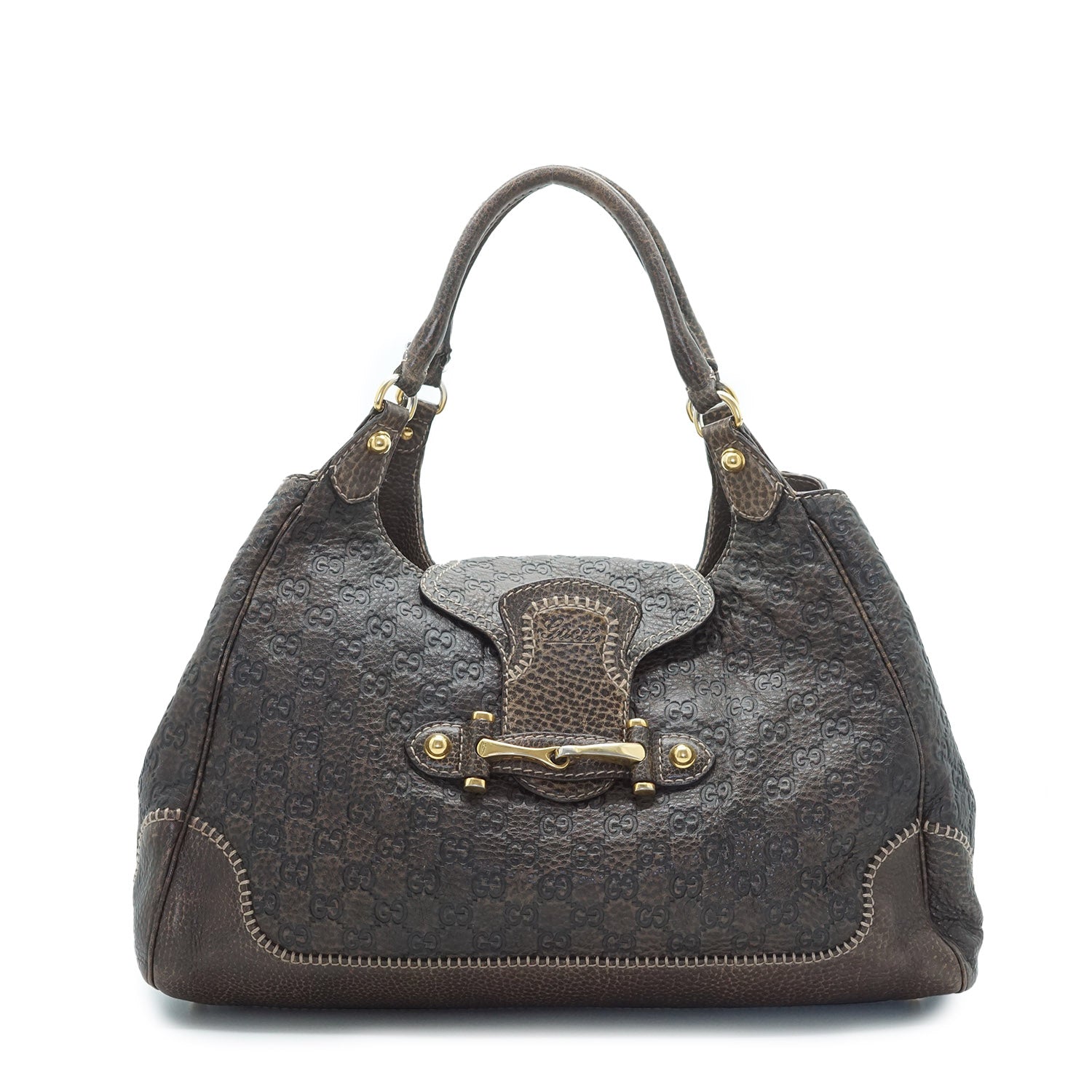 Guccissima Horsebit Large New Pelham Shoulder Tote Brown Leather