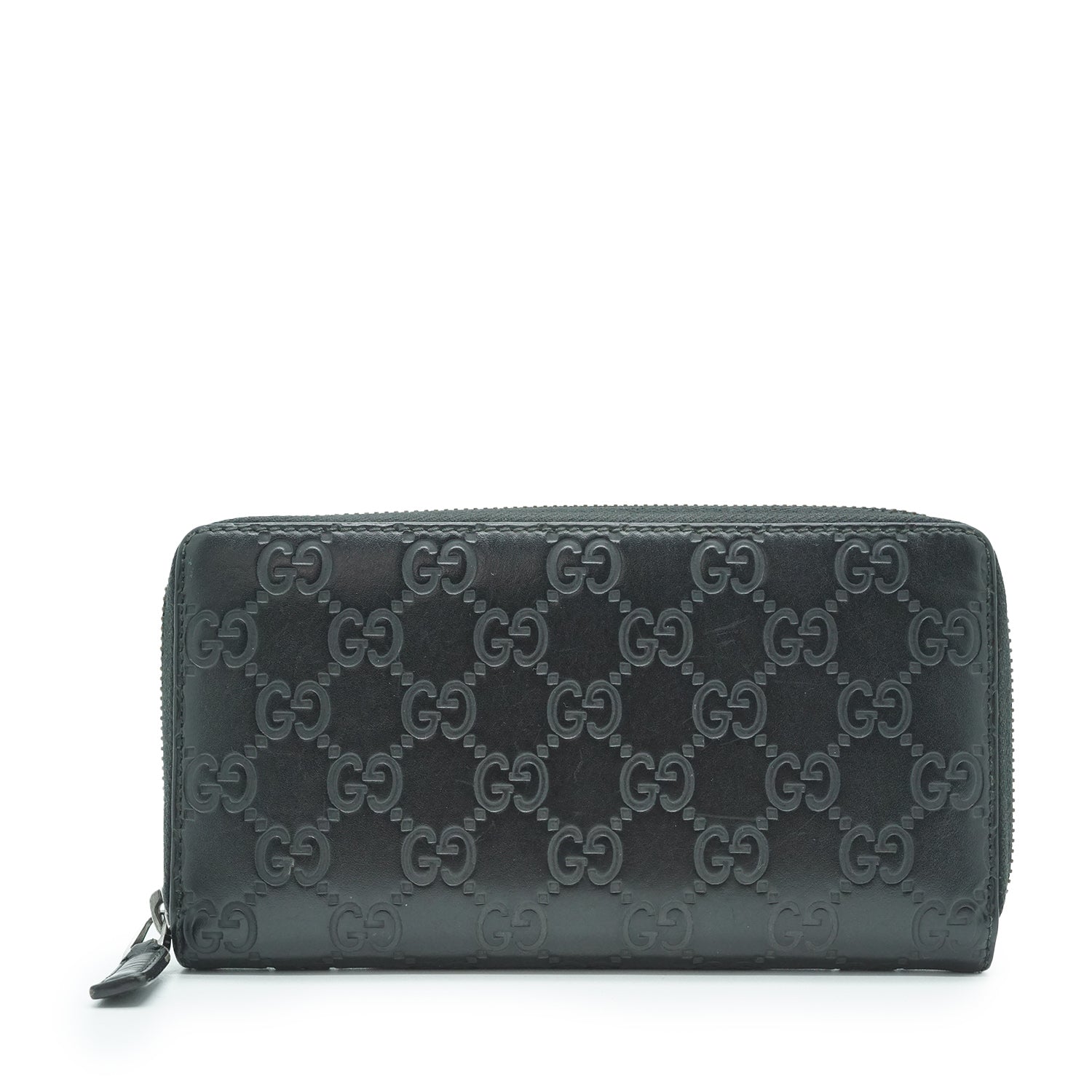 Guccissima Leather Zip Round Long Wallet Black Leather