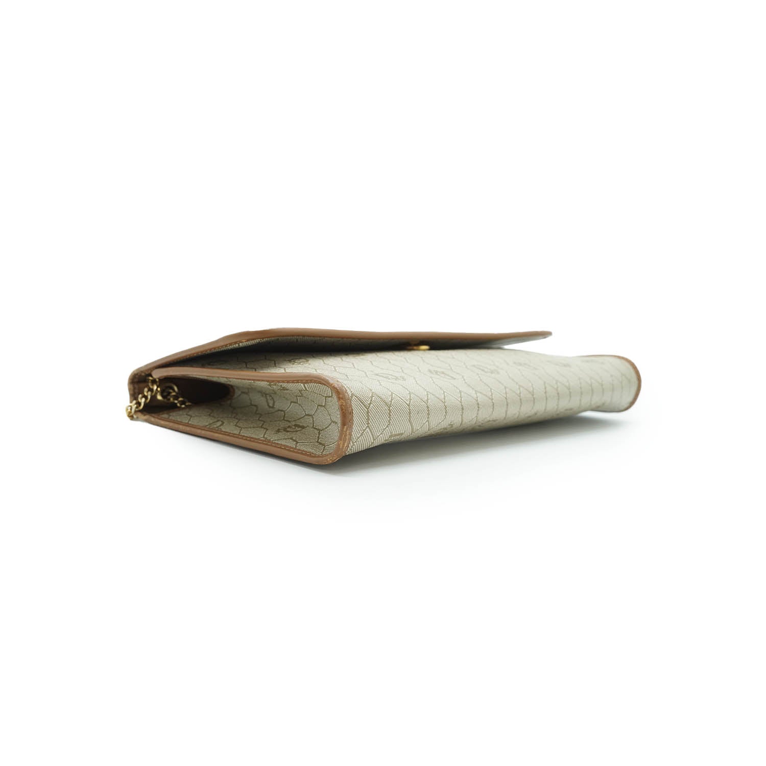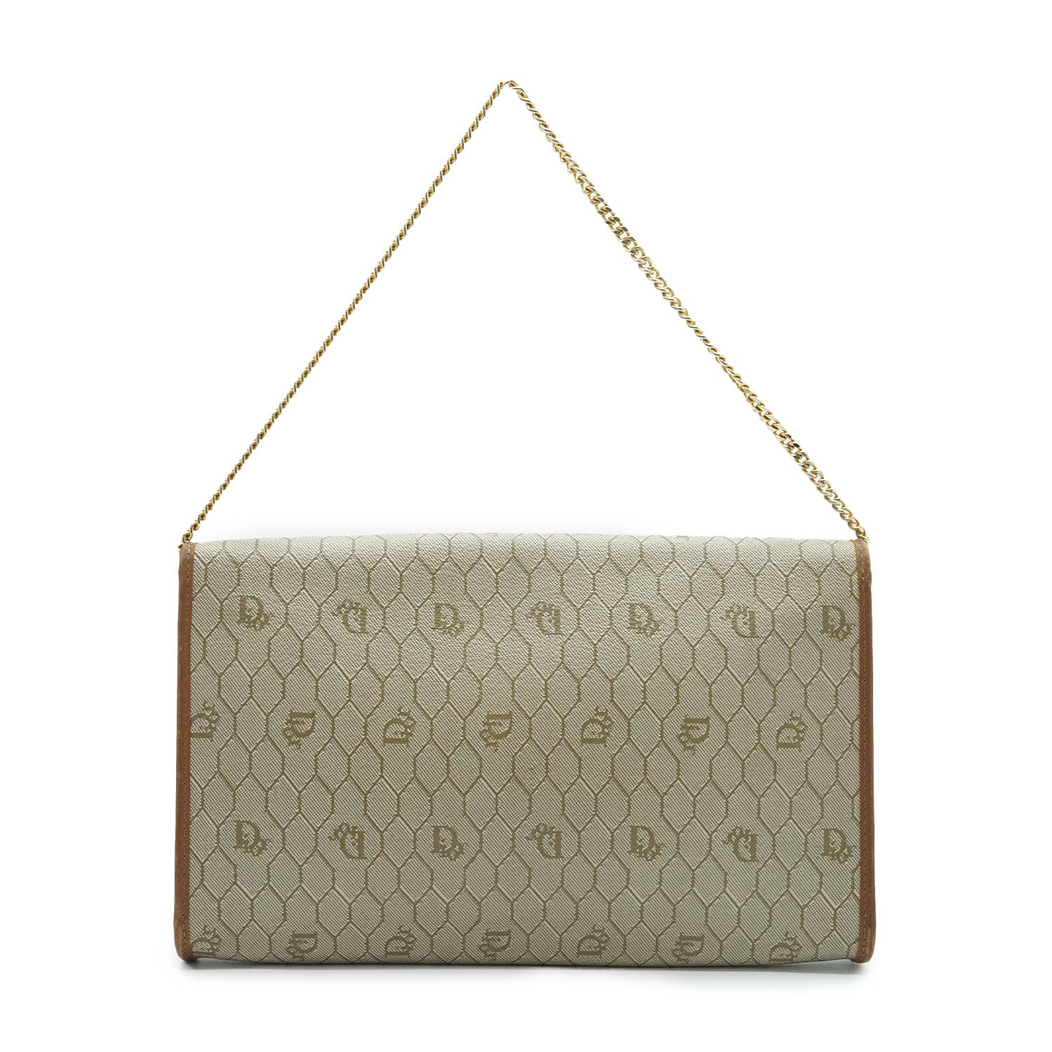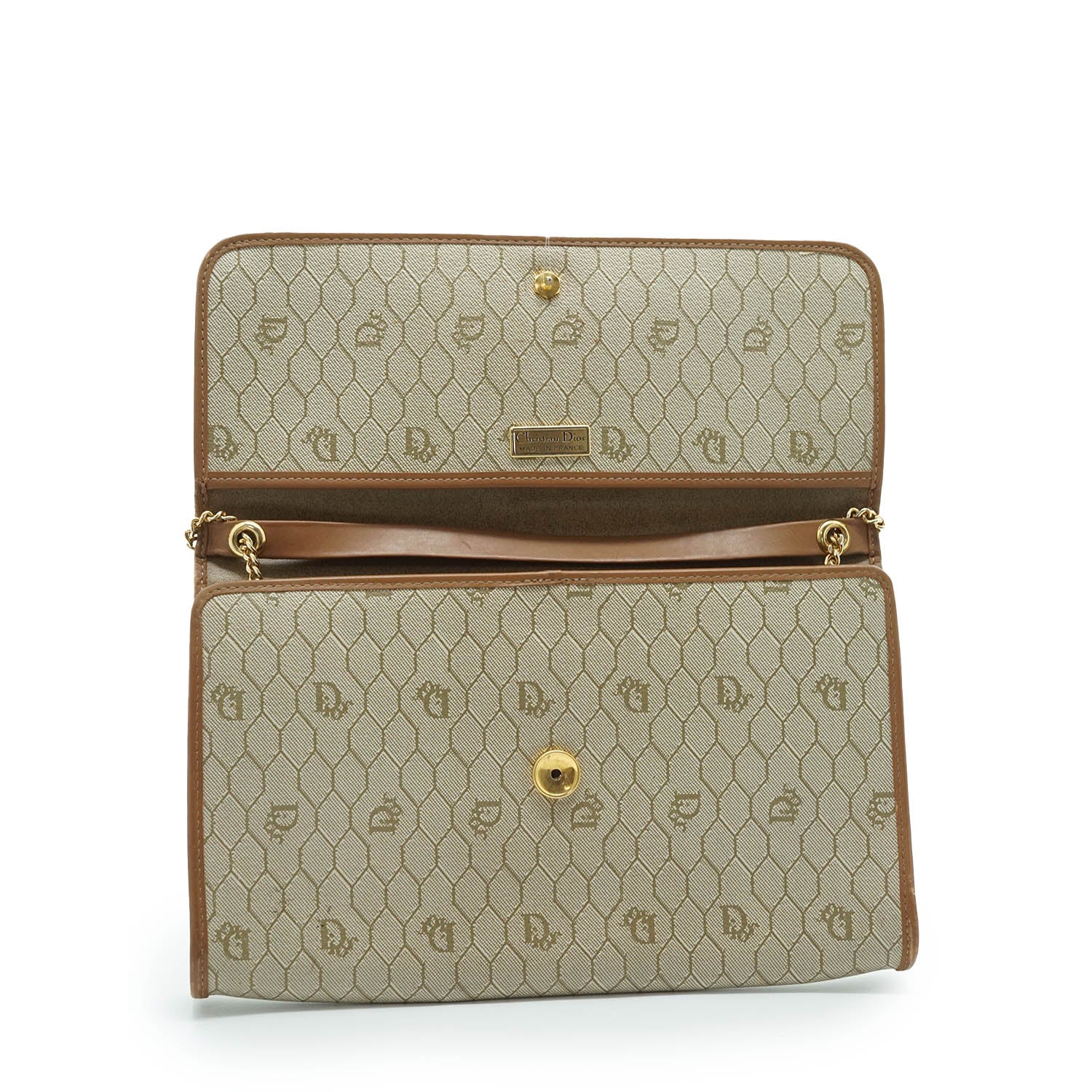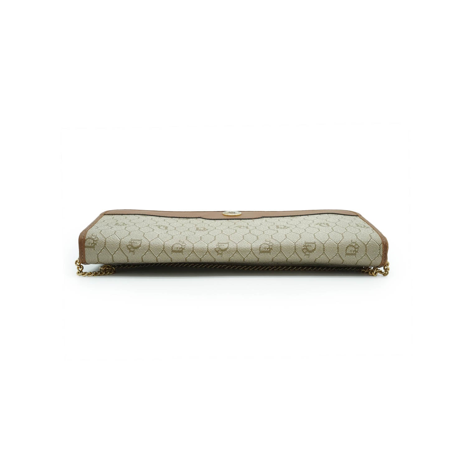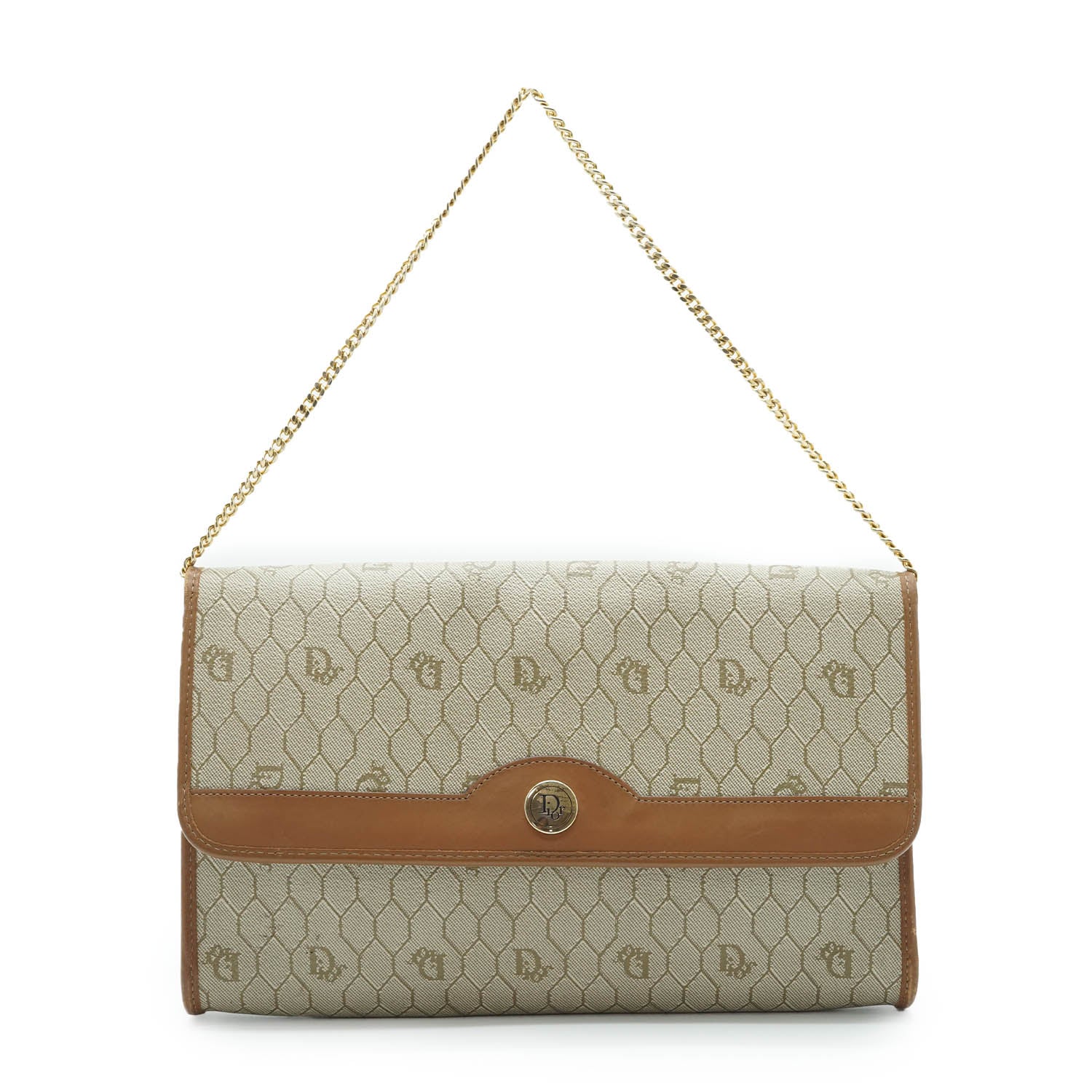 Honeycomb Chain Shoulder Bag Brown Canvas, Leather